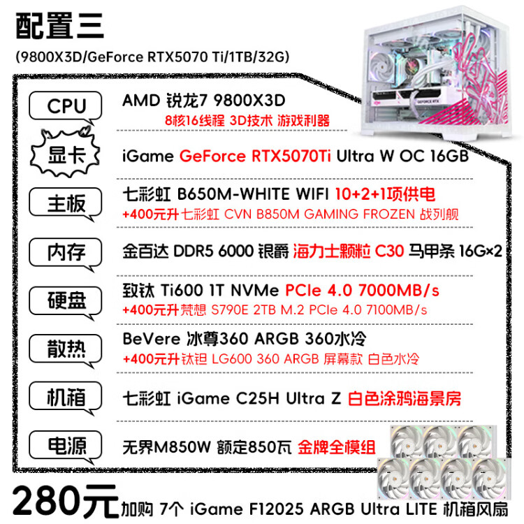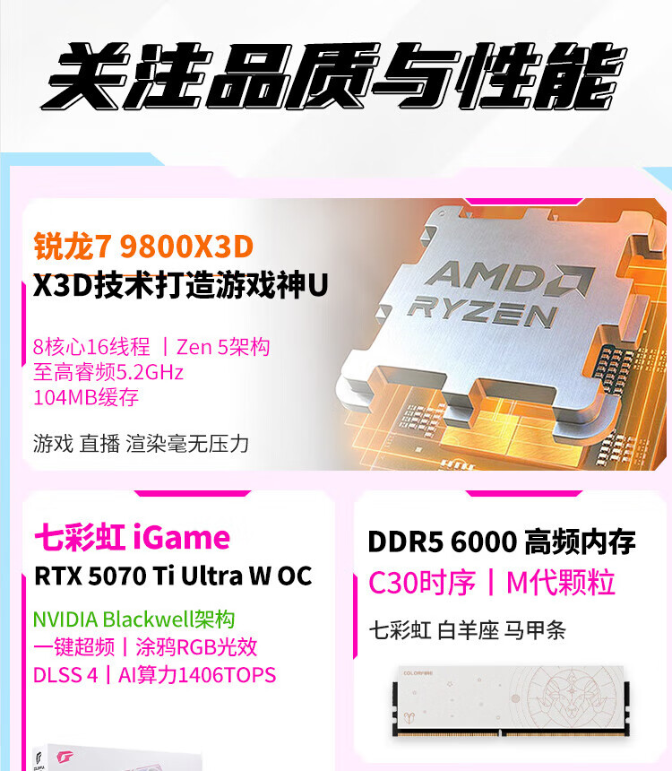 Colorful Ruilong R7 9800X3D RTX5070Ti RTX5080 assembled computer complete machine DIY Delta game console live broadcast design desktop e-sports host configuration four 9800X3D RTX5080 e-sports host