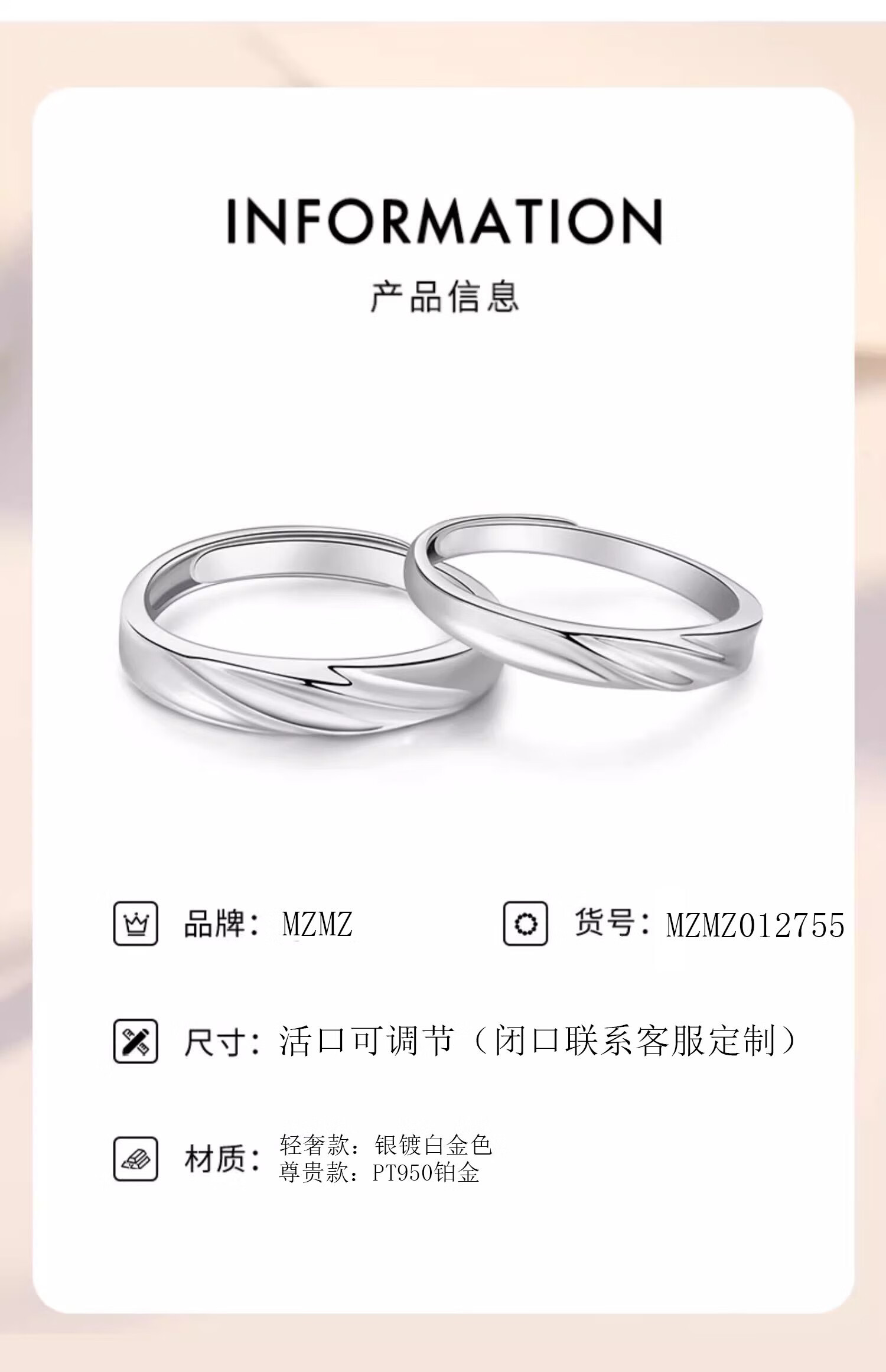MZMZ Platinum Couple Ring PT950 Platinum Pair of Rings Valentine's Day Birthday Gift for Girlfriend and Wife Premium Style - Pair of Rings Customized in 7 working days