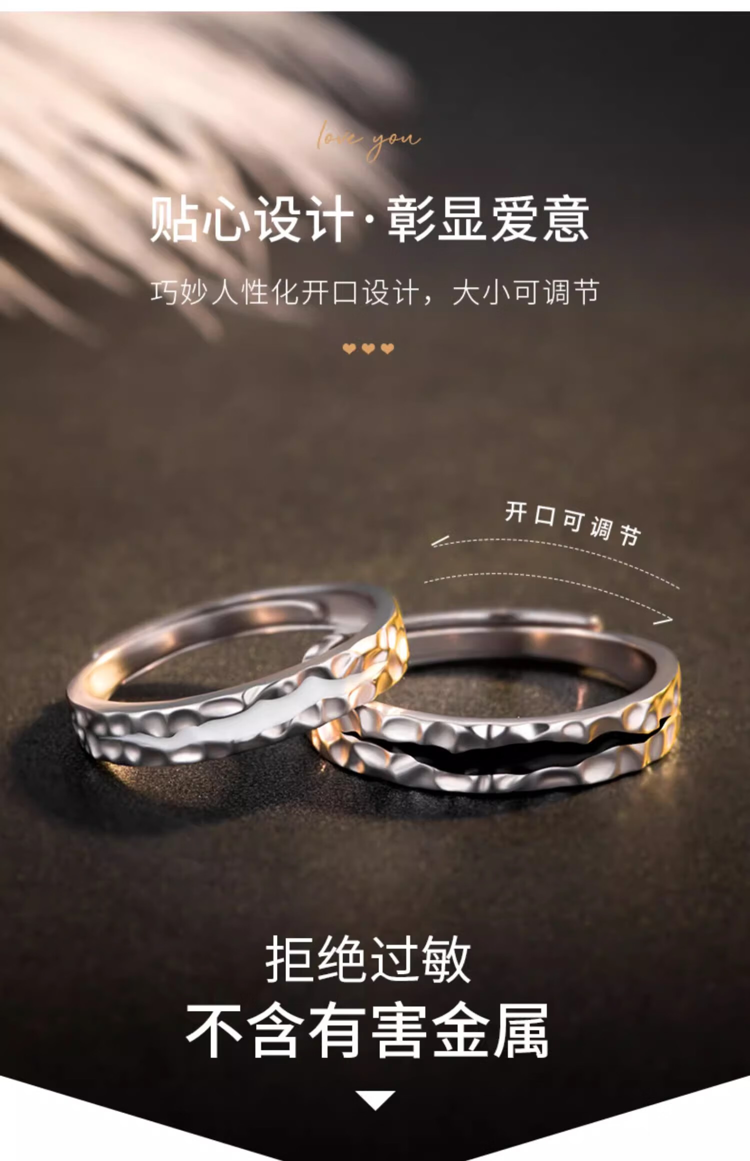 MZMZ Missing You Platinum Couple Ring PT950 Platinum Pair of Rings Valentine's Day Birthday Gift for Girlfriend and Wife Light Luxury - Men's Ring