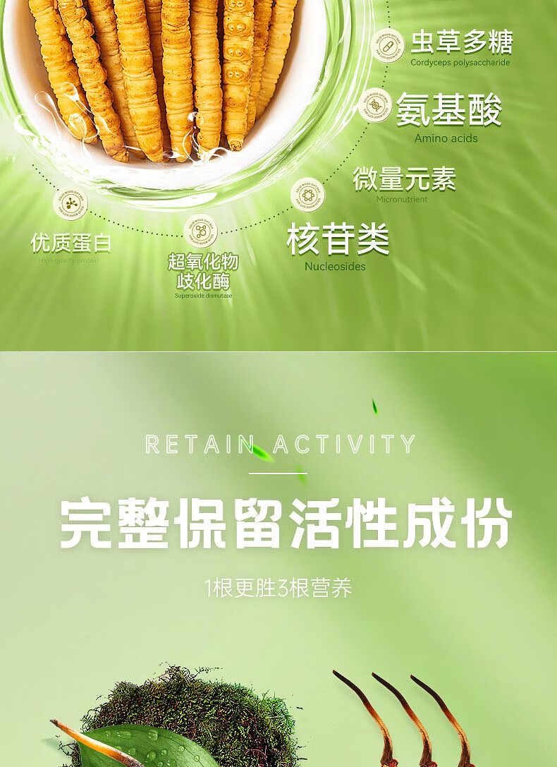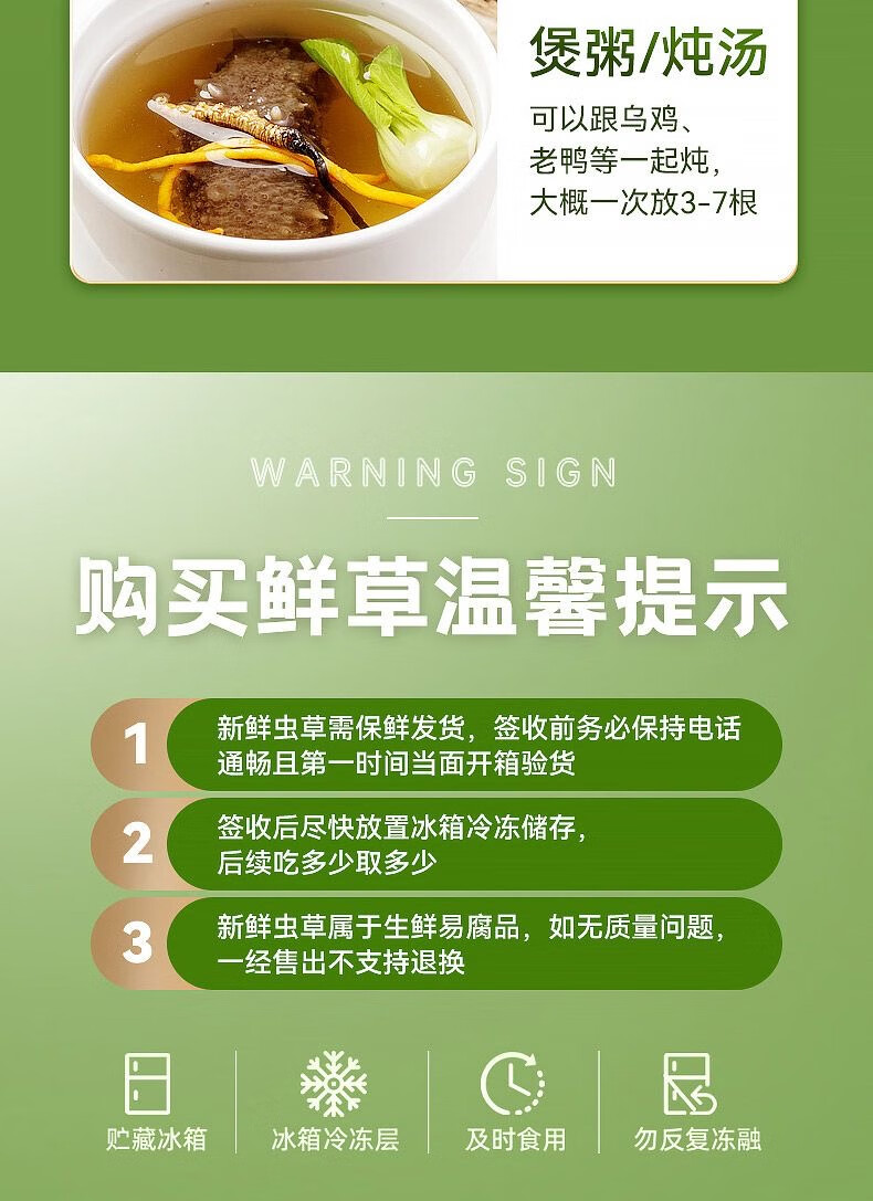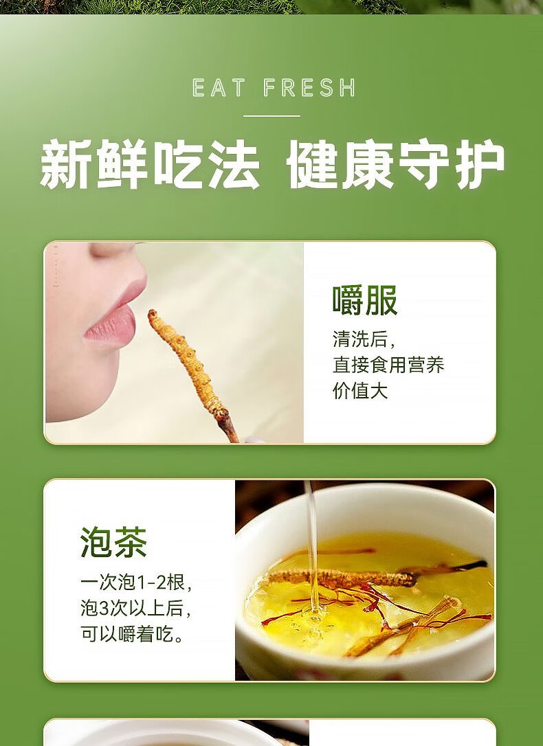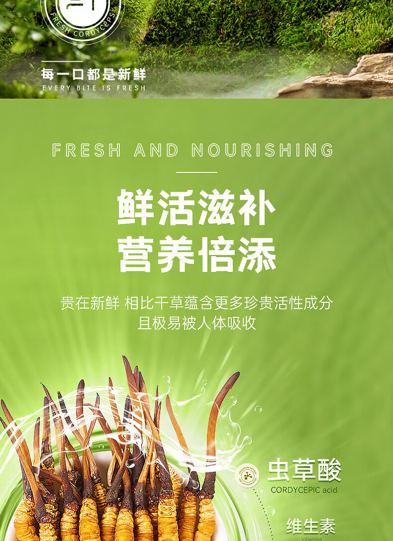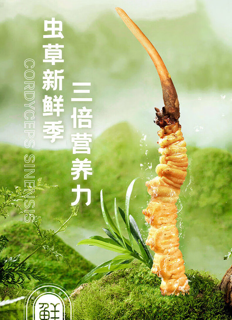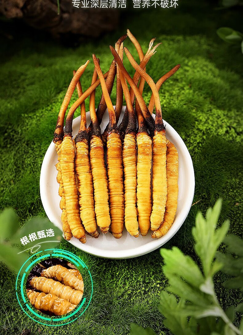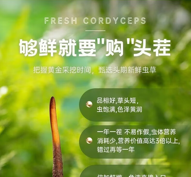 新鲜冬虫夏草2025年头期正品高海拔鲜虫草领导过节送礼送长辈 1.0~1.2克/根-100根鲜虫草