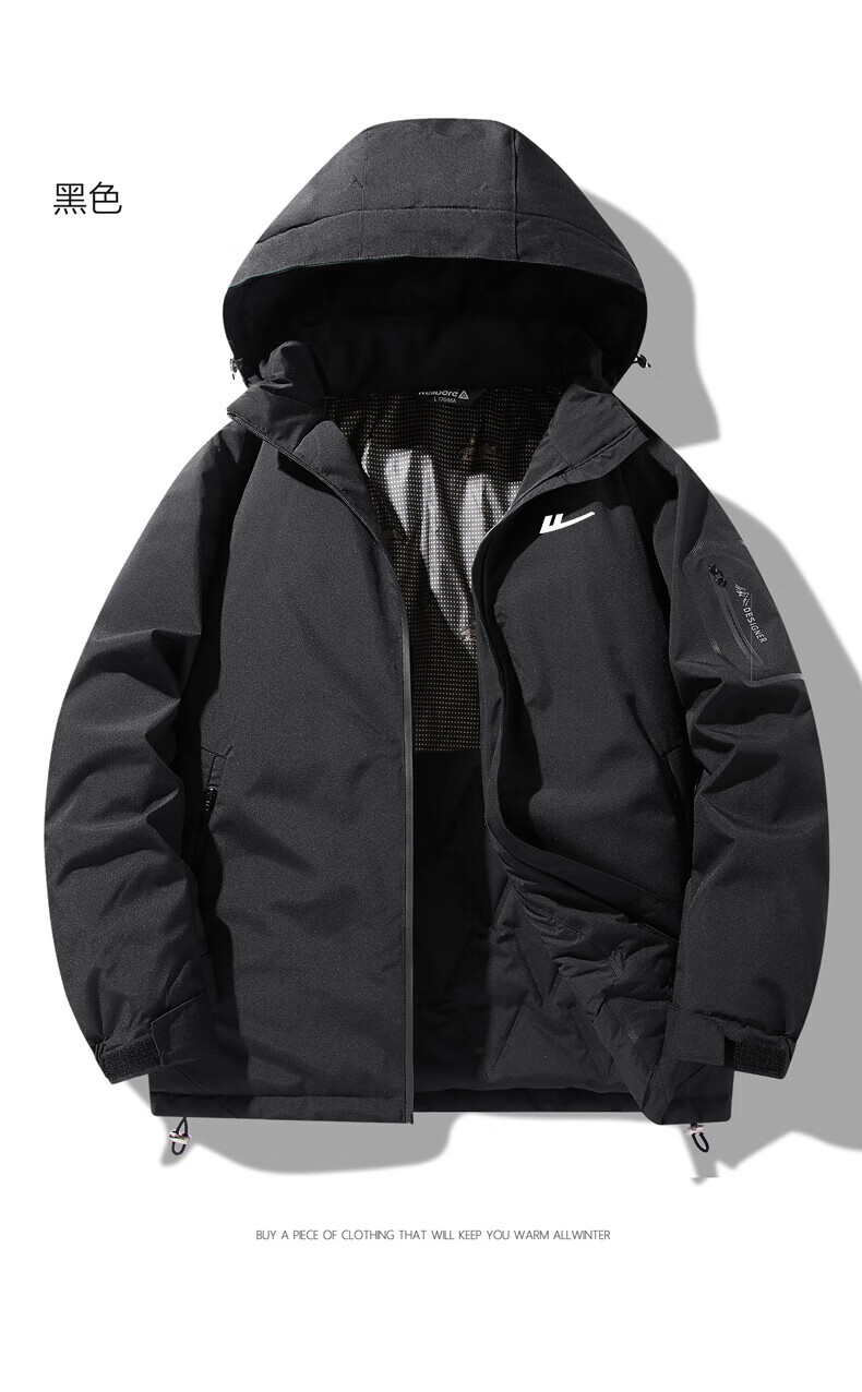 Pull-back cotton jacket, men's assault cotton jacket, men's long-sleeved windproof warm jacket, winter thickened jacket, cotton-padded jacket, loose top, black XL (recommended 115-135 Jin Jin equals 0.5 kg)