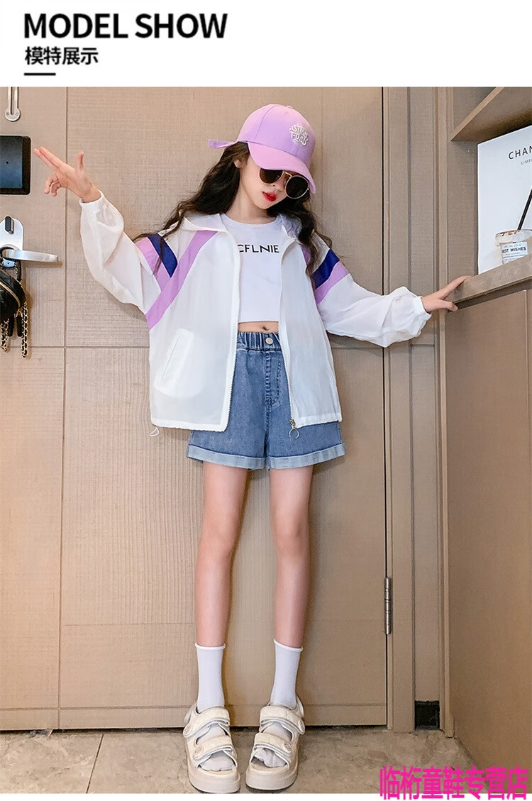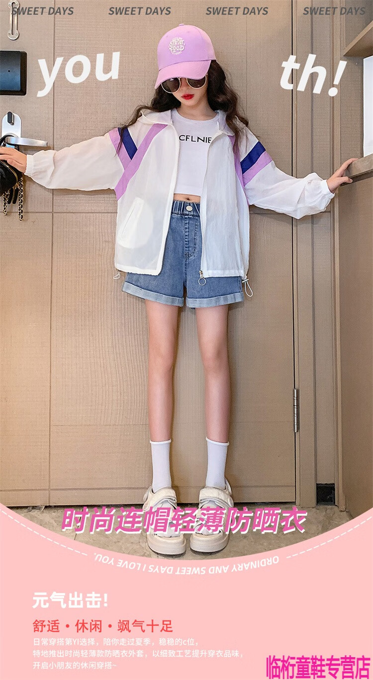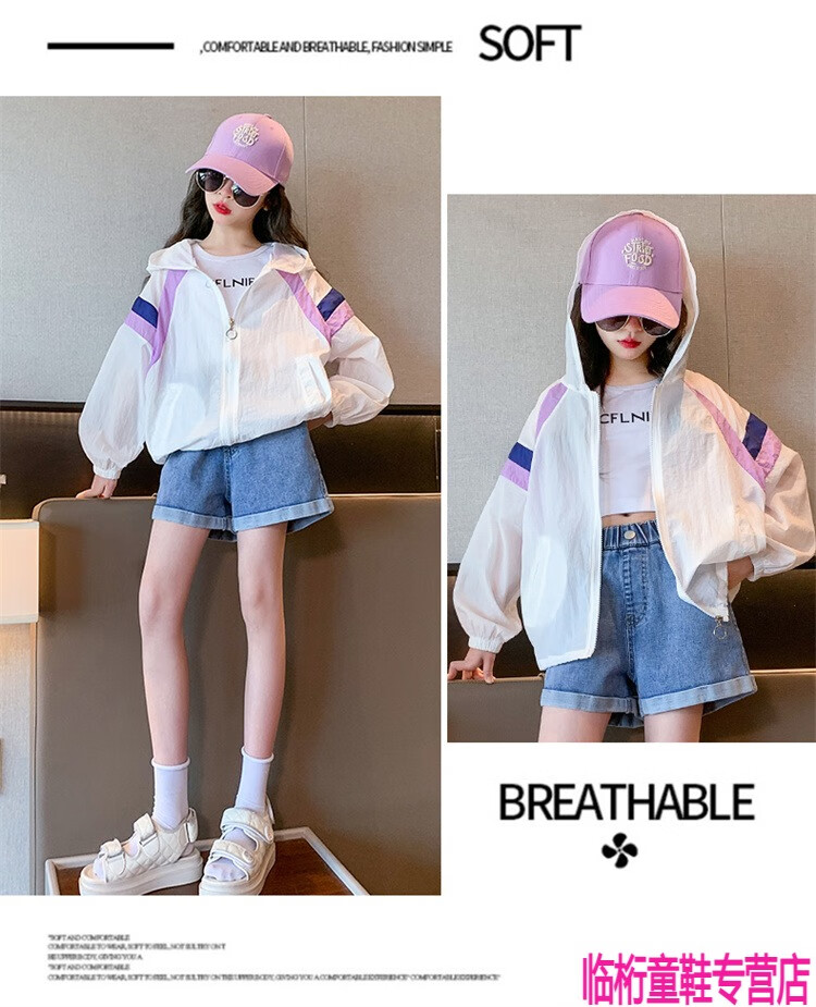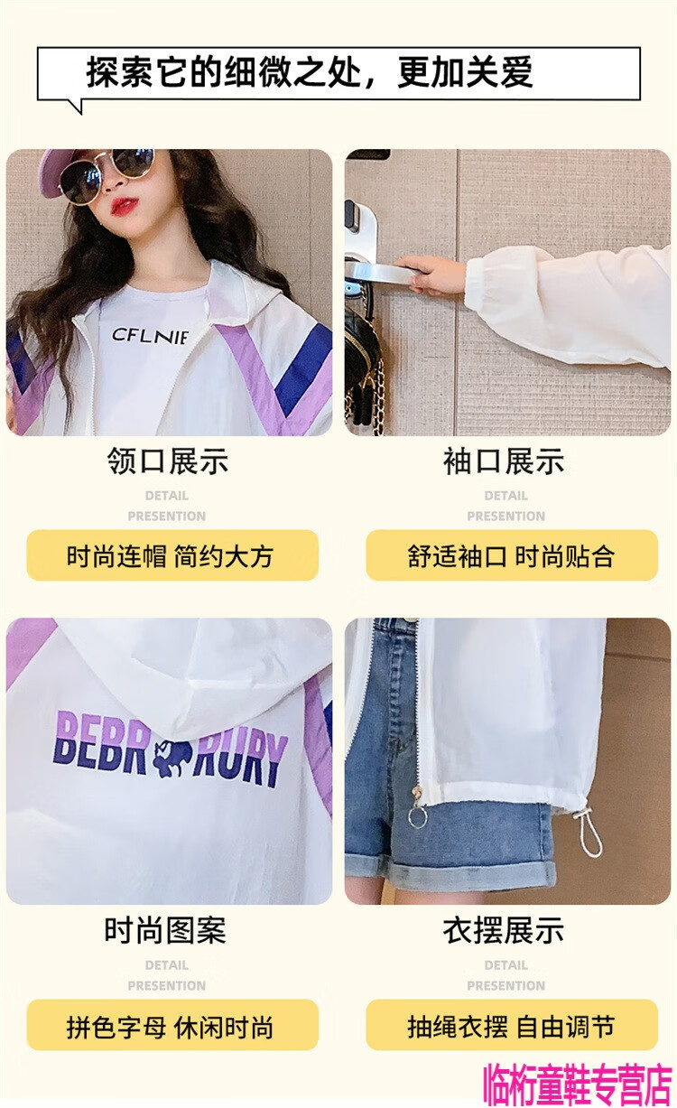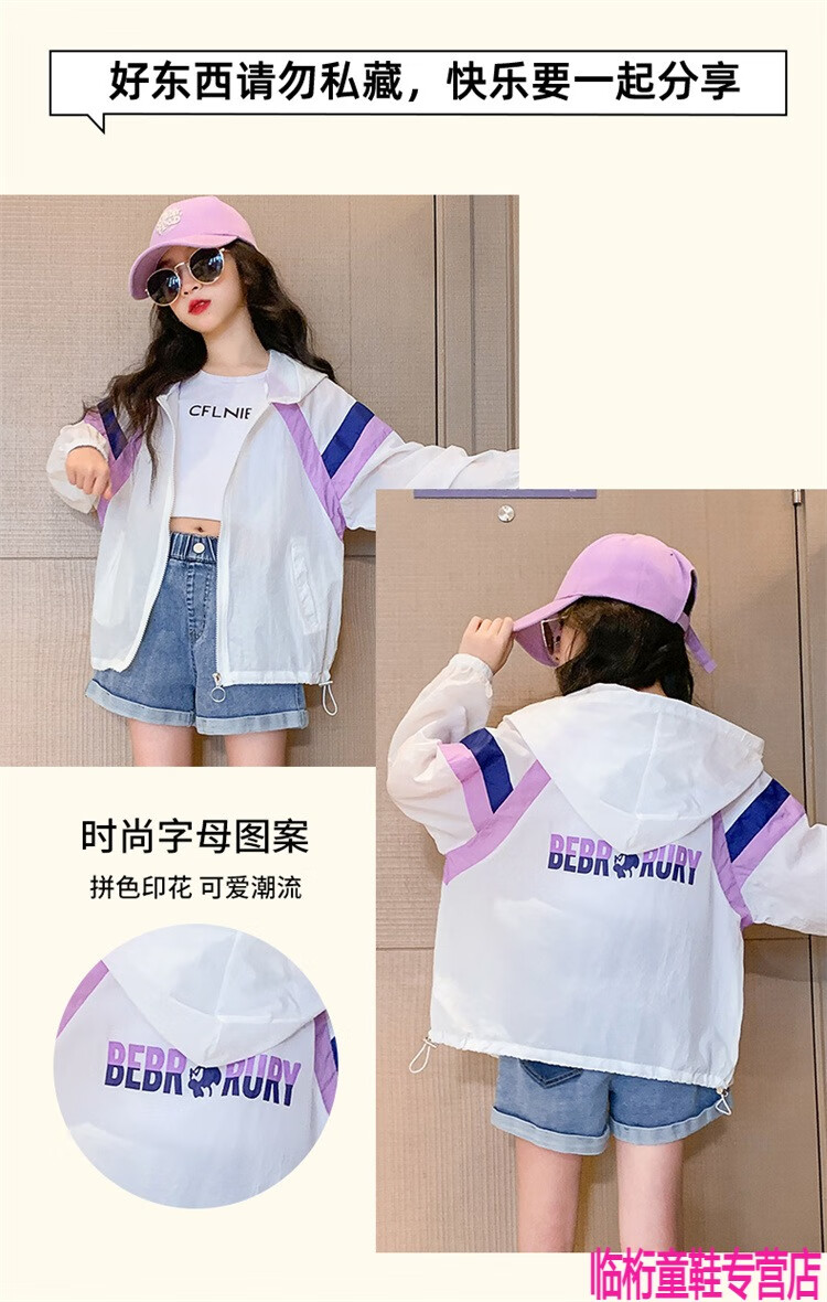 G.duck Little Yellow Duck Girls Sun Protection Clothes Summer Thin Jackets Breathable Air Conditioning Shirt Girls New Medium and Large Children Summer Clothes Light Purple Size 115 120 Recommended height is about CM