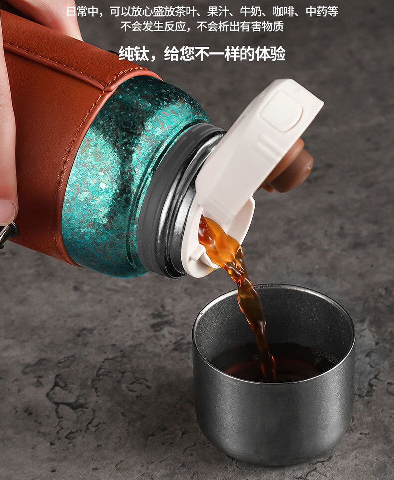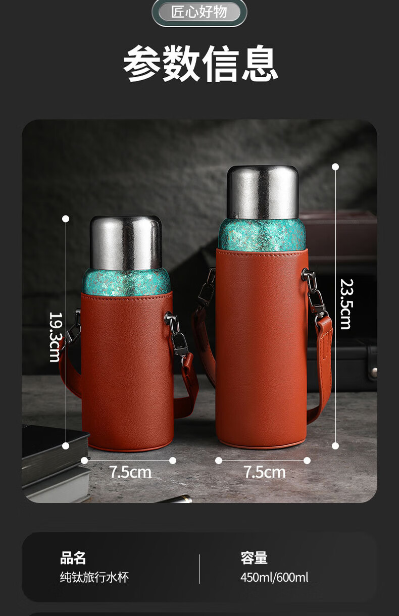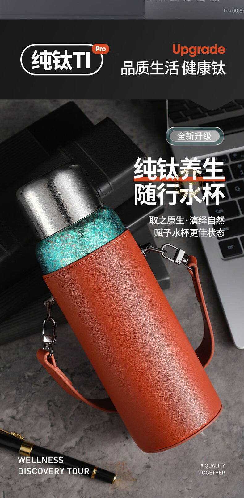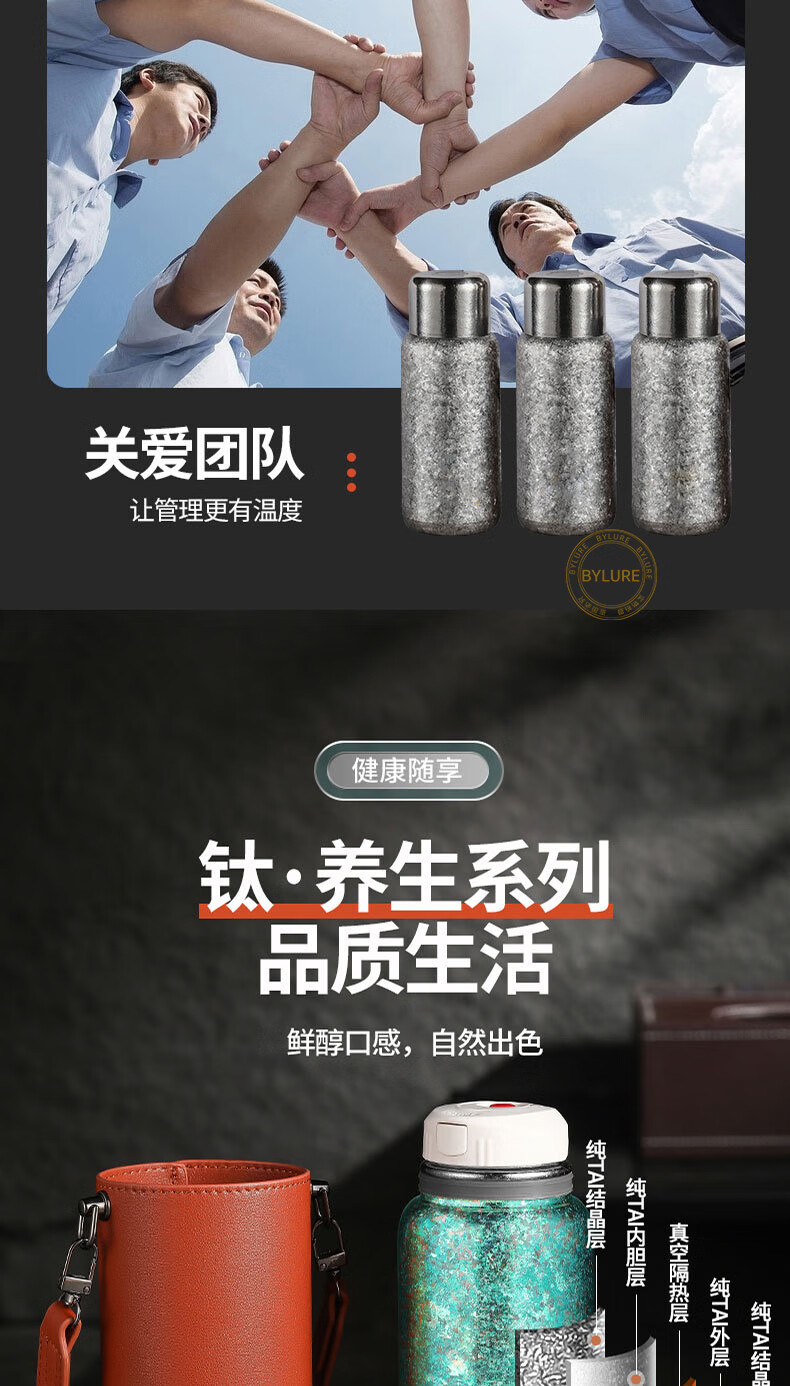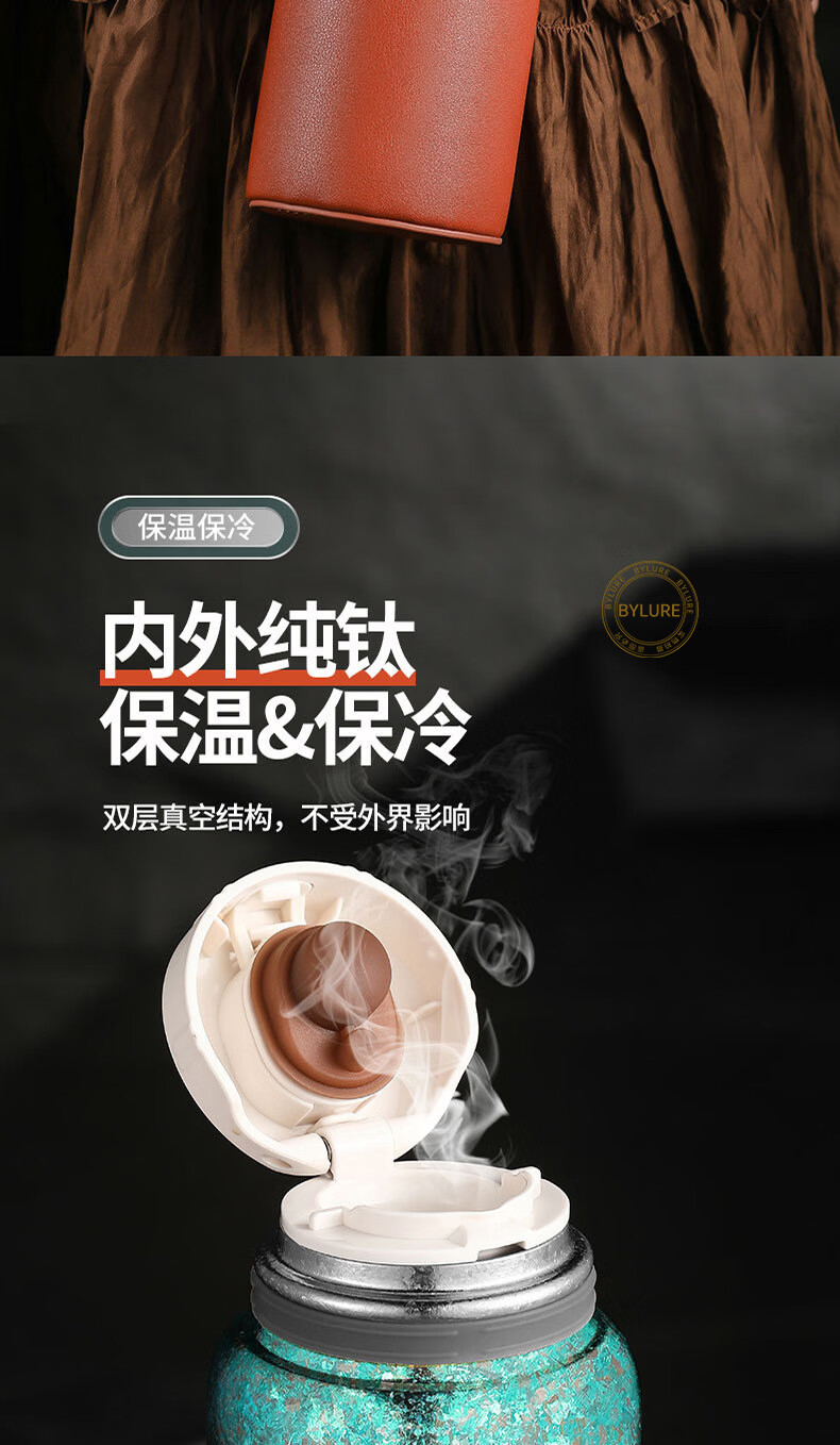 Bylure brand pure titanium thermos cup double-layer car outdoor portable water cup large capacity titanium cup portable high-end stuffy tea cup glacier blue 600ml