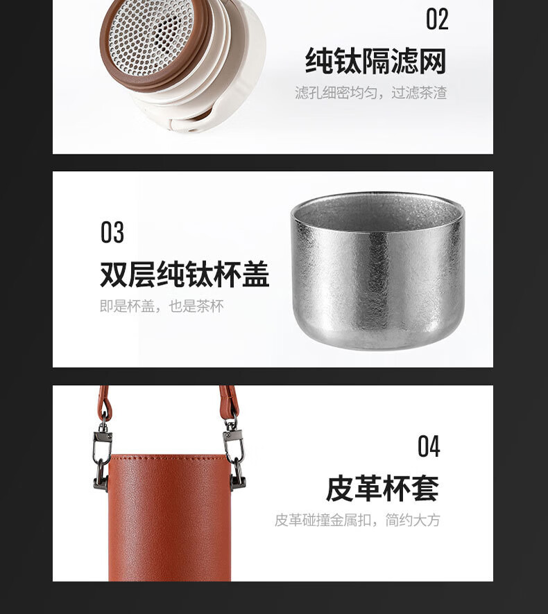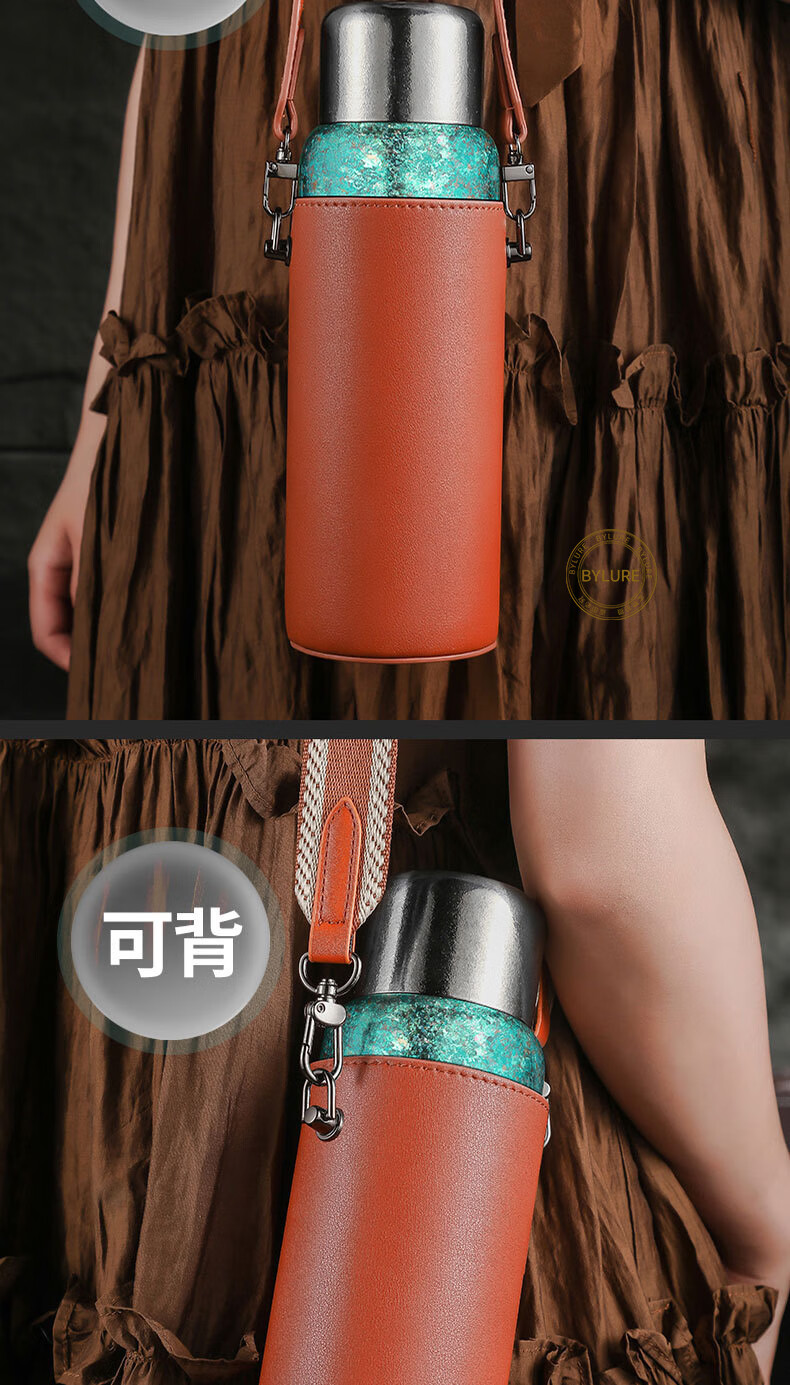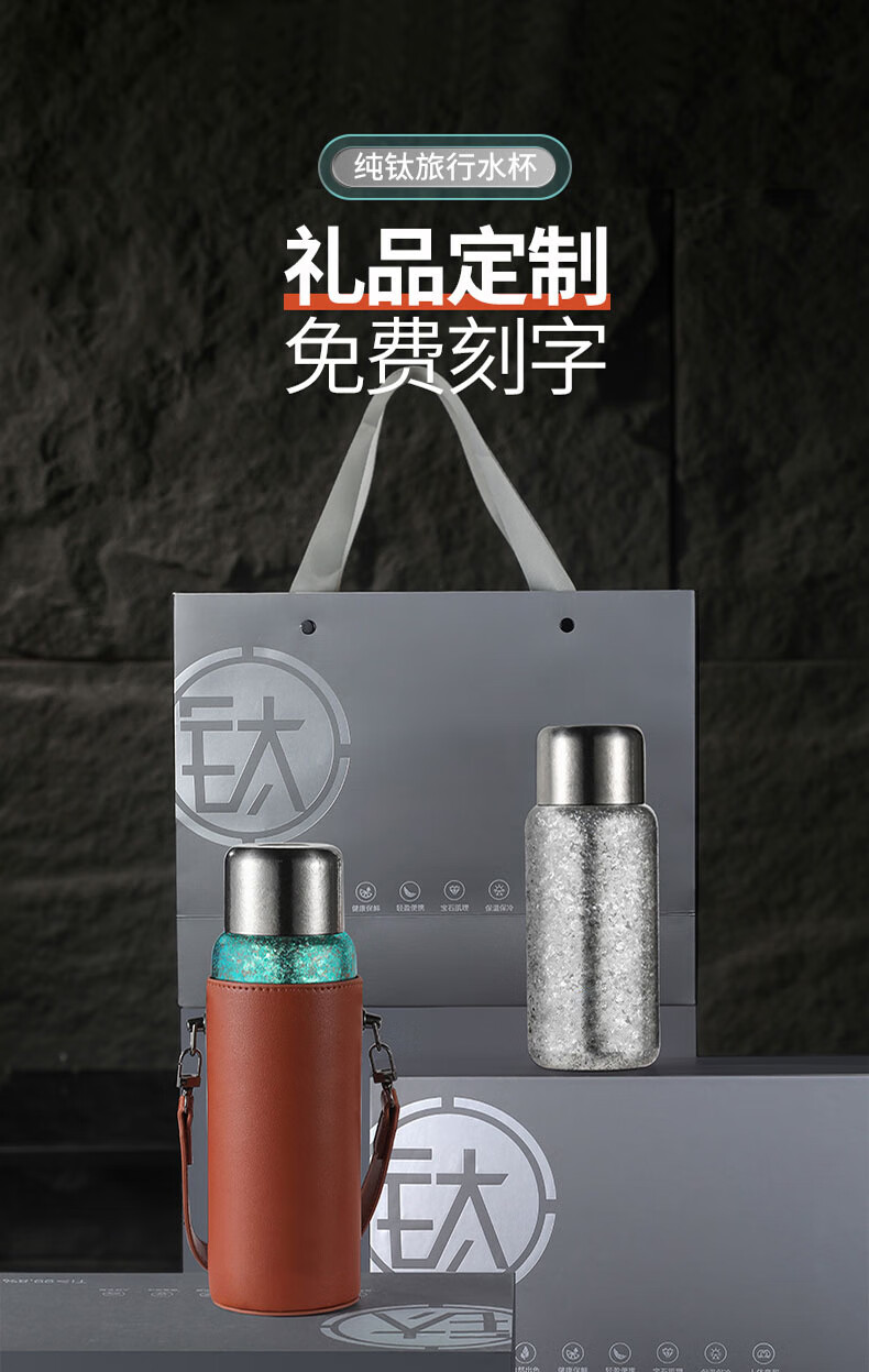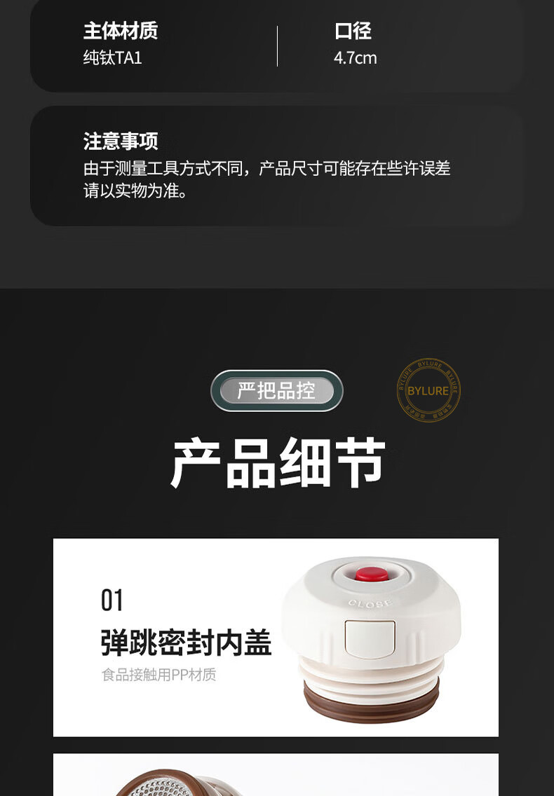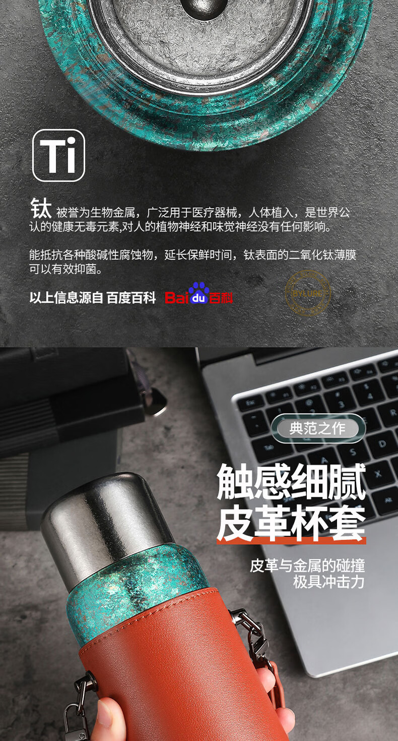 Bylure brand pure titanium thermos cup double-layer car outdoor portable water cup large capacity titanium cup portable high-end stuffy tea cup glacier blue 600ml