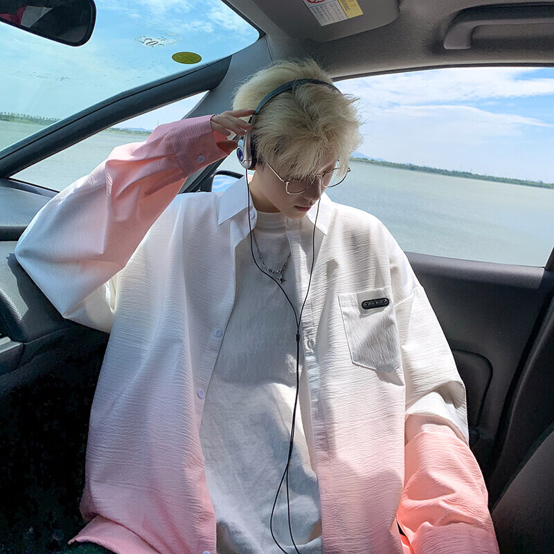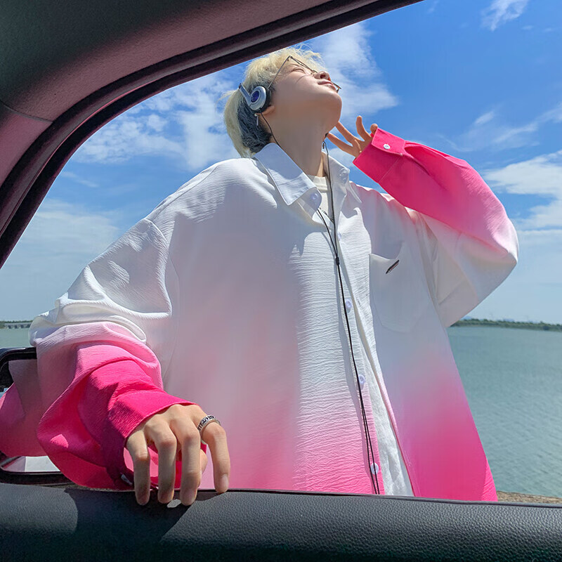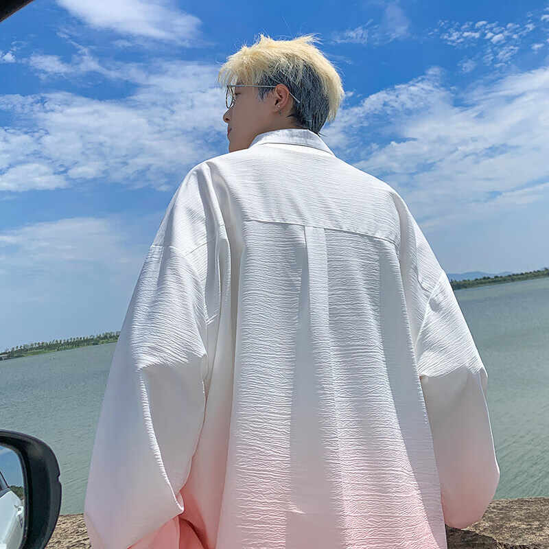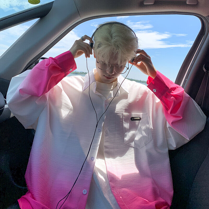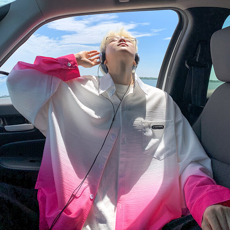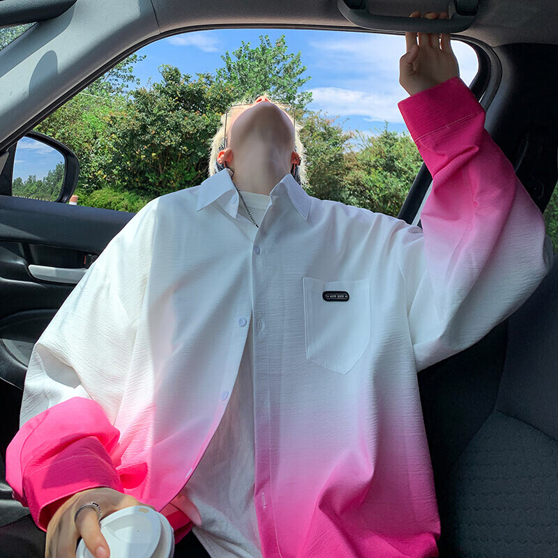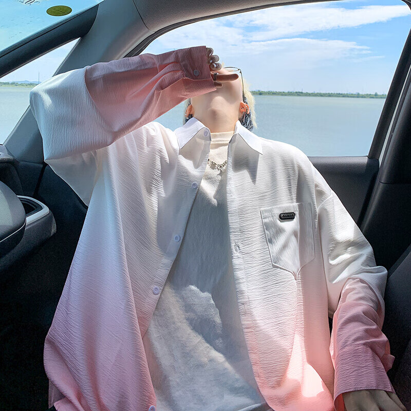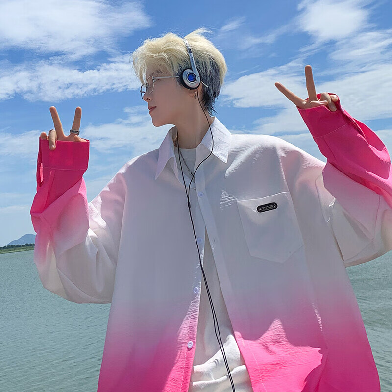 NYING gradient long-sleeved shirt for boys 25 spring and autumn new American trendy brand handsome lapel casual loose shirt jacket gradient pink XL (125-145Jin Jin equals 0.5 kg)
