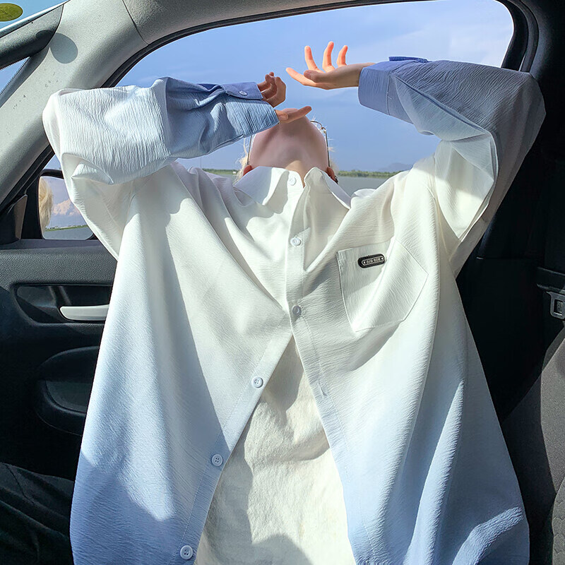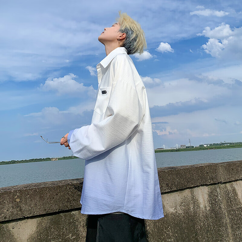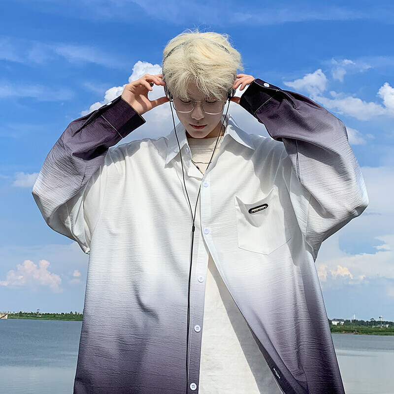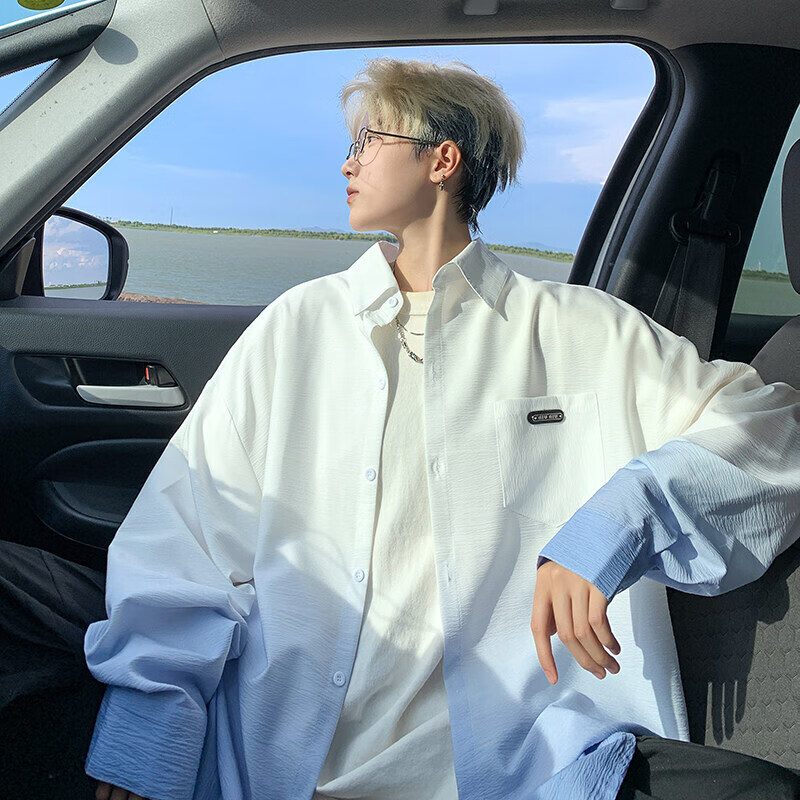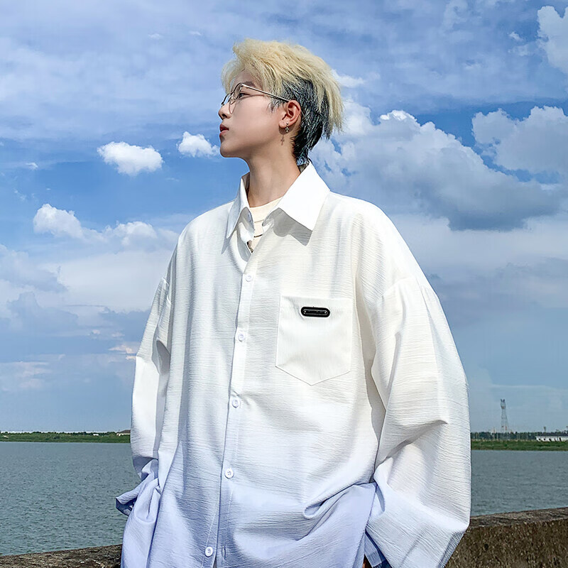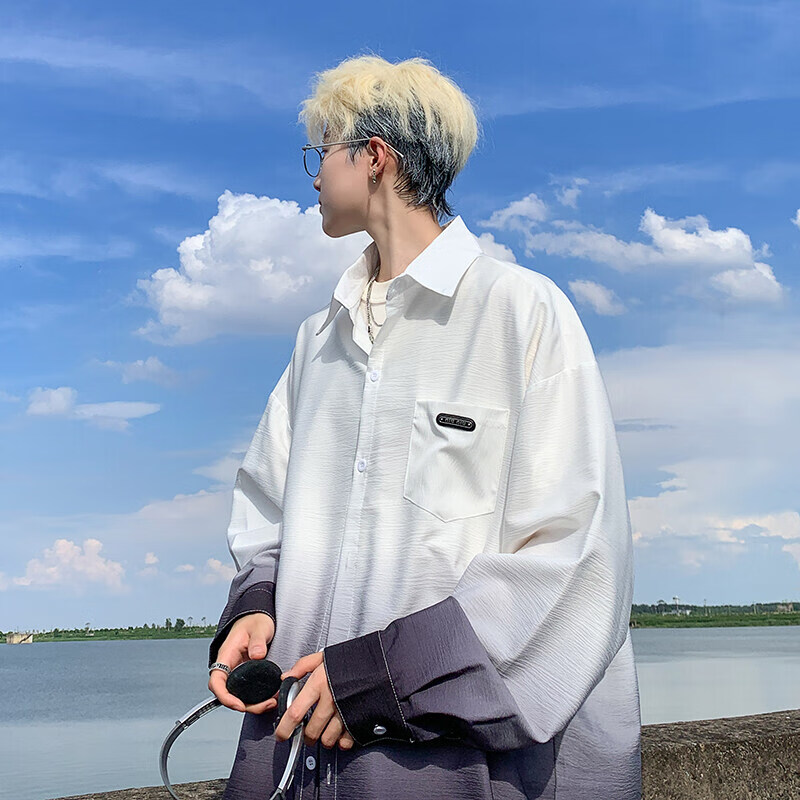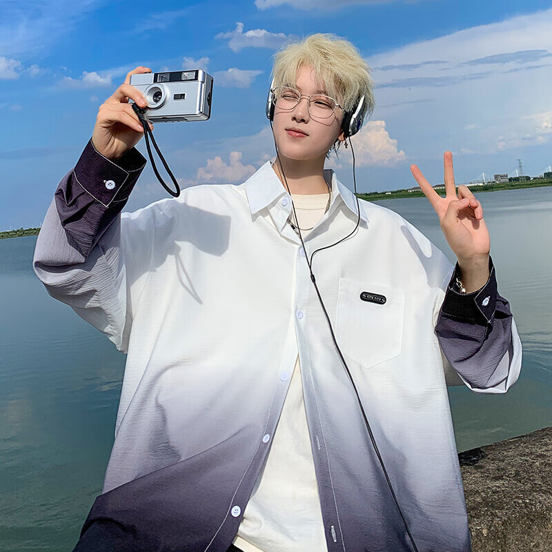NYING gradient long-sleeved shirt for boys 25 spring and autumn new American trendy brand handsome lapel casual loose shirt jacket gradient pink XL (125-145Jin Jin equals 0.5 kg)