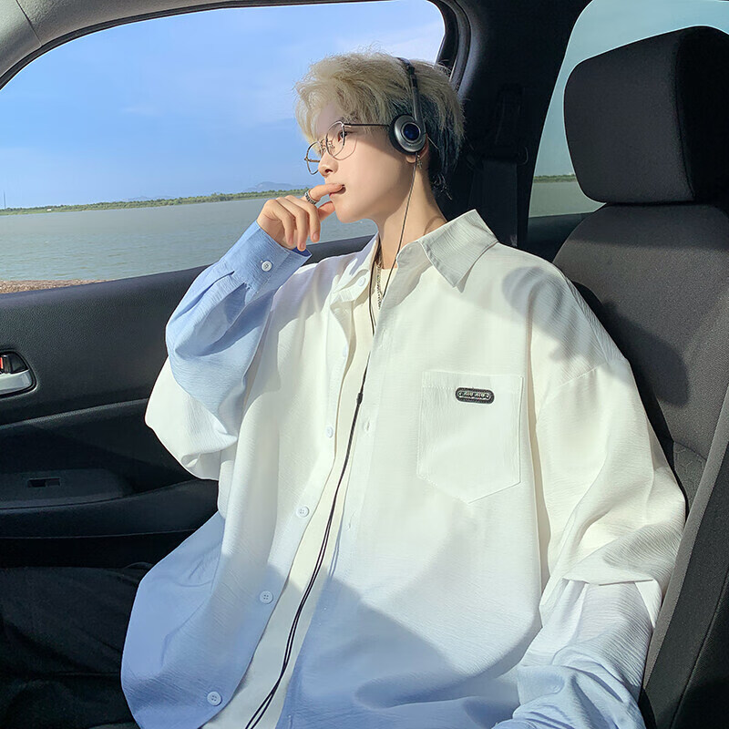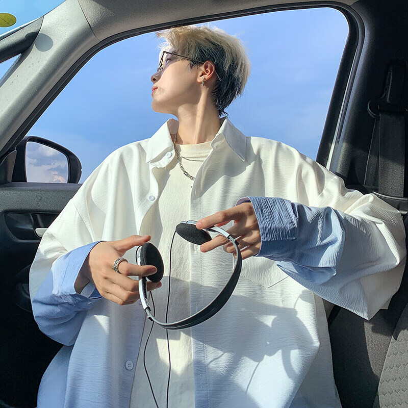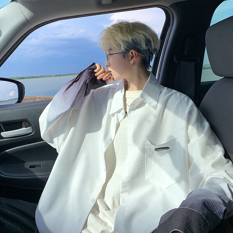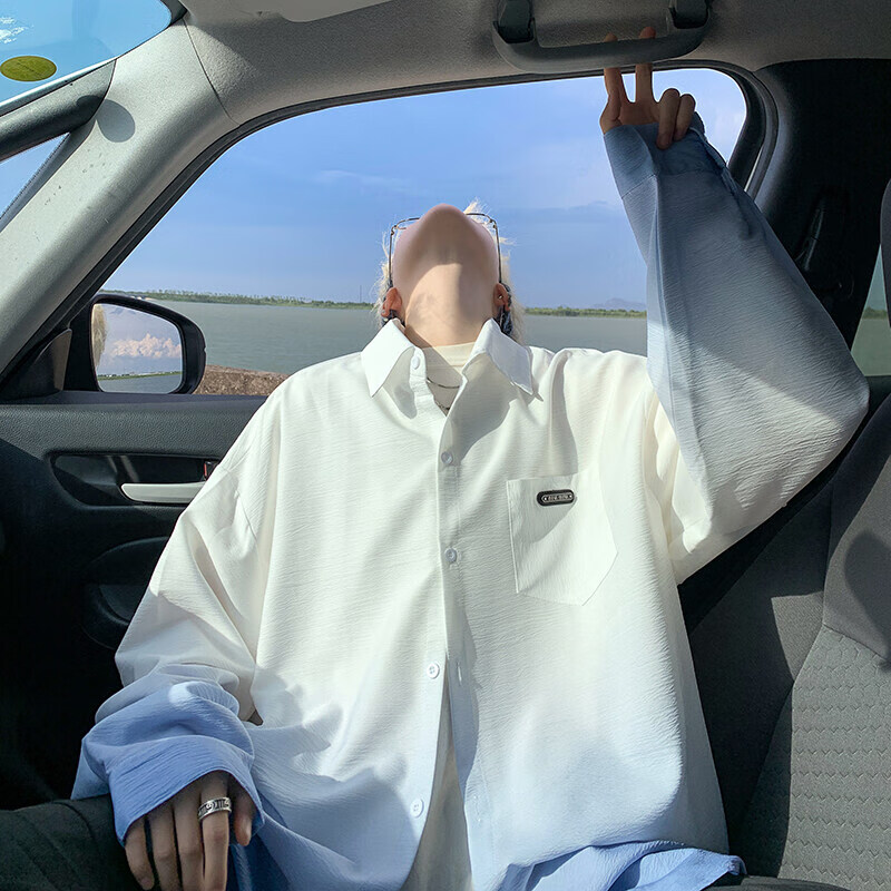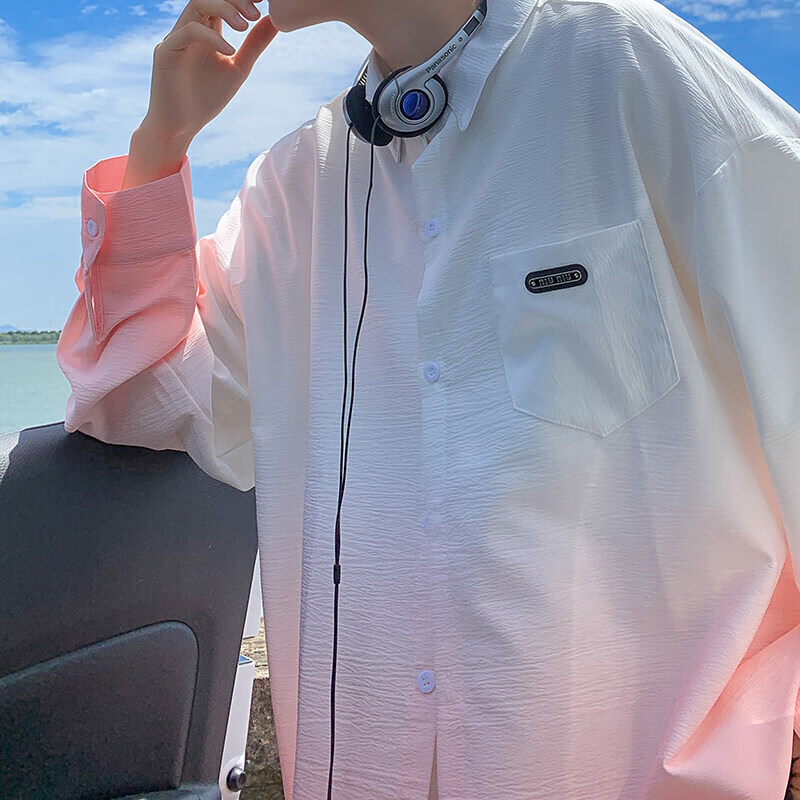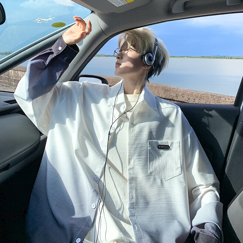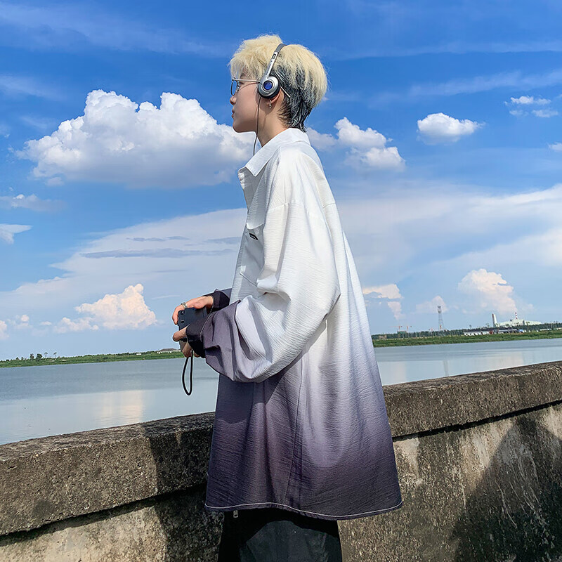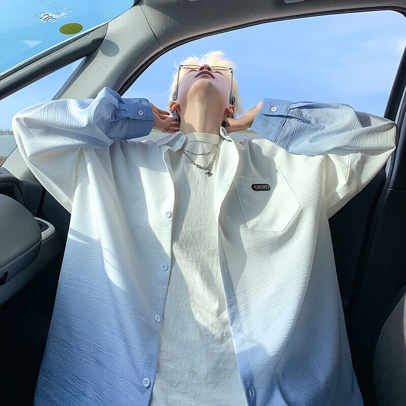 NYING gradient long-sleeved shirt for boys 25 spring and autumn new American trendy brand handsome lapel casual loose shirt jacket gradient pink XL (125-145Jin Jin equals 0.5 kg)