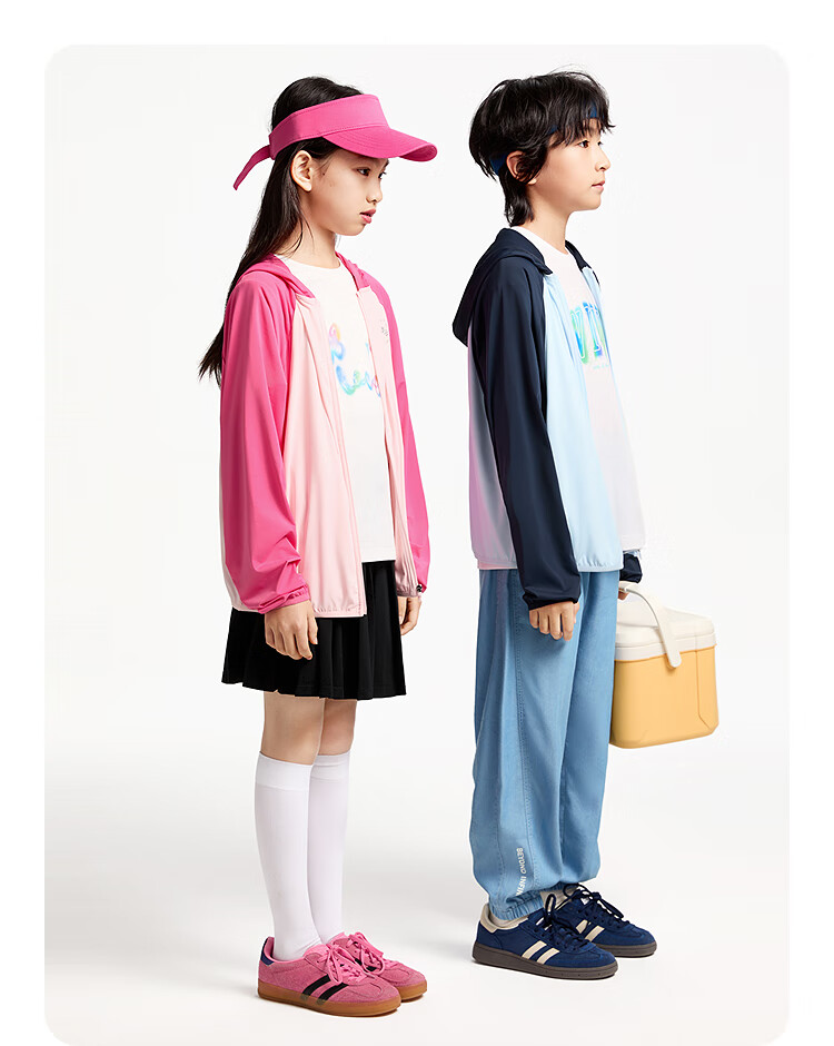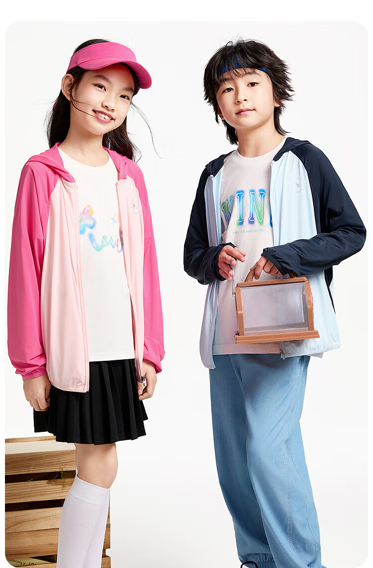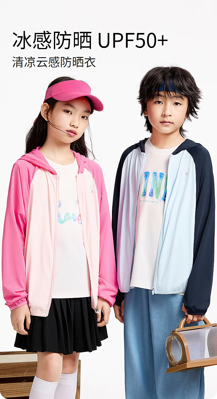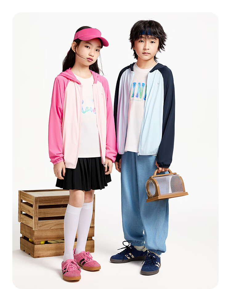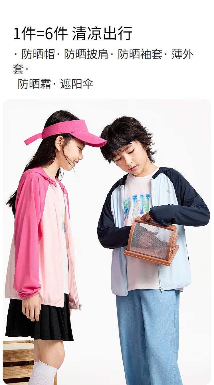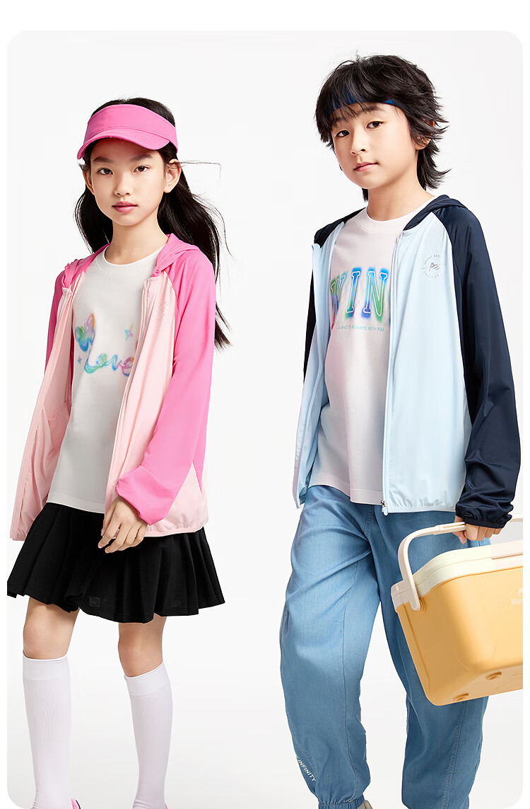 Anael boys and girls hooded knitted jacket 2025 summer new ice sun protection clothing casual sports tops Heather Purple 160
