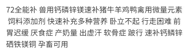 Calcium scale 72 supplement for veterinary calcium phosphorus zinc magnesium quick supplement trace element feed additive for pigs, cattle, sheep, chickens, ducks and poultry Calcium scale 72 supplement 10 bags