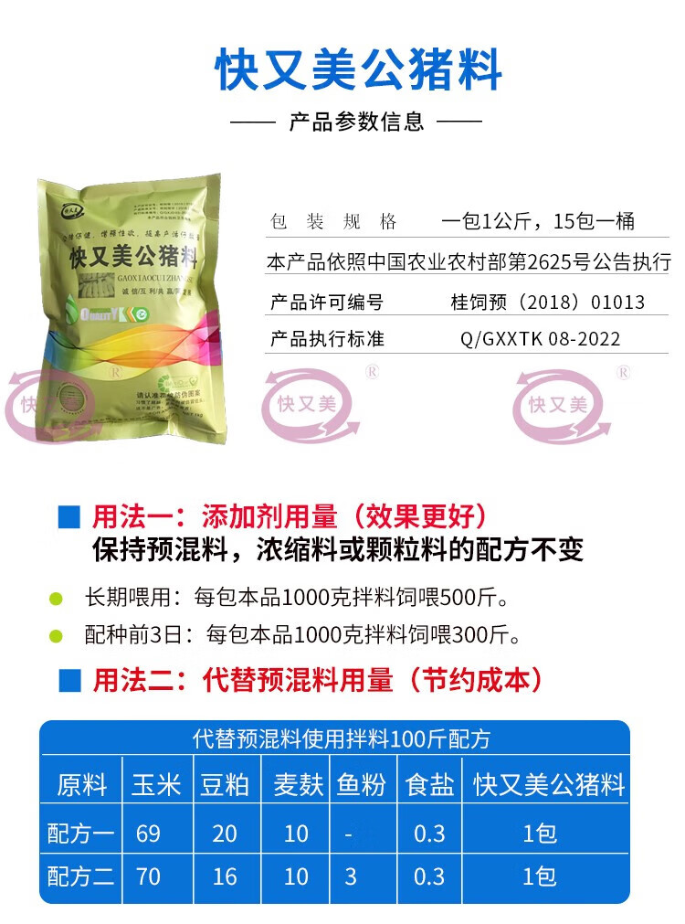 Boar feed additive, premix for pigs, multiple litter induction, breeding, semen collection, growth promotion for breeding pigs, boar nutritional supplement 2Jin Jin equal to 0.5kg/pack