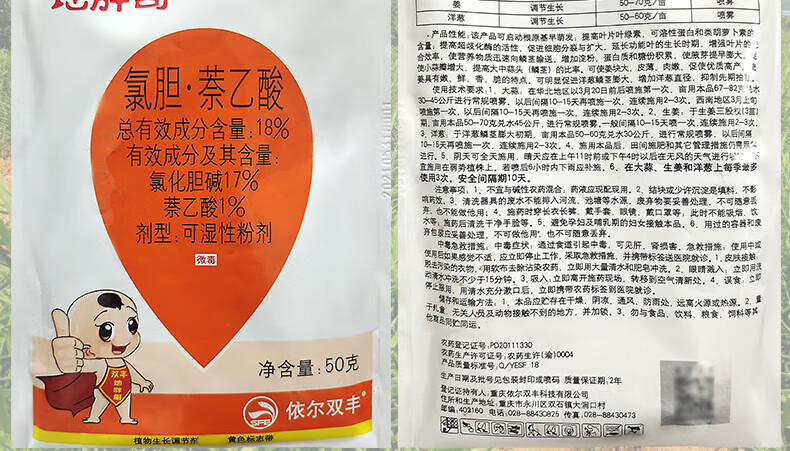 Di Pang Ge 18% Choline Chloride Naphthalene Acetic Acid Ginger Underground Rhizome Special Garlic Potato Expanding Agent Growth Regulator 50g (Full Box of 200 Bags)