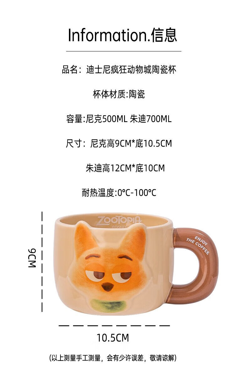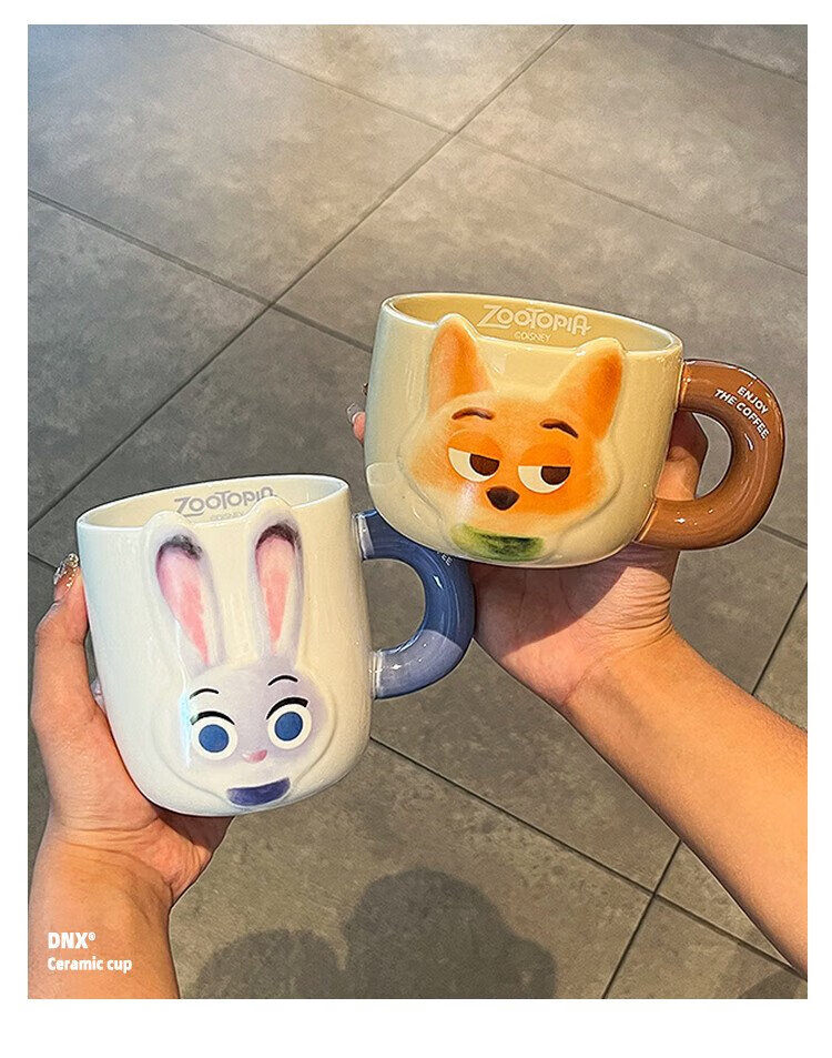 Wangbaifu Disney Zootopia Mug Couple Water Cup Home Ceramic Coffee Cup Girl Birthday Christmas Gift Nick 500ml Jingcang Quick Delivery