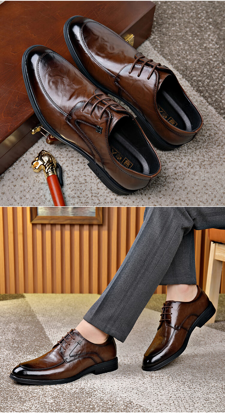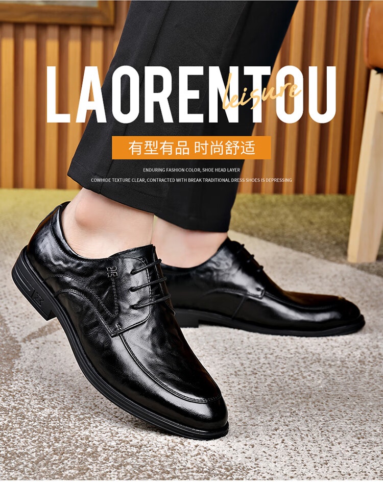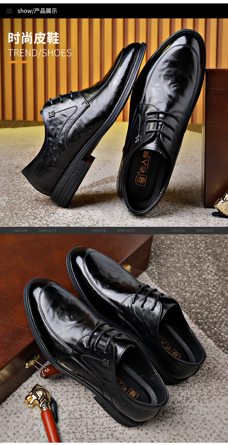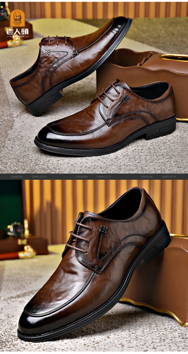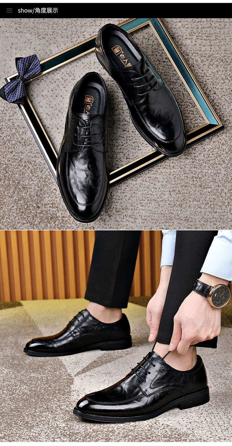 Elderly scalp shoes men's 2025 spring new genuine leather formal shoes business casual shoes comfortable workplace lace-up wedding leather shoes black 41