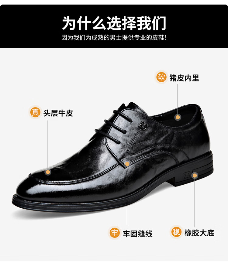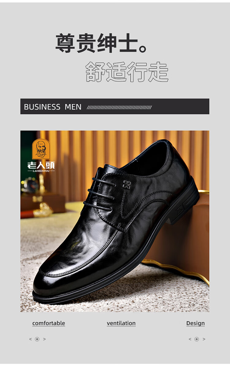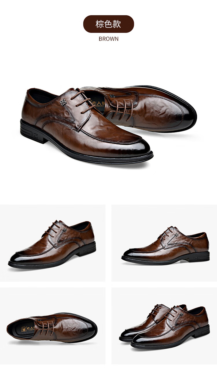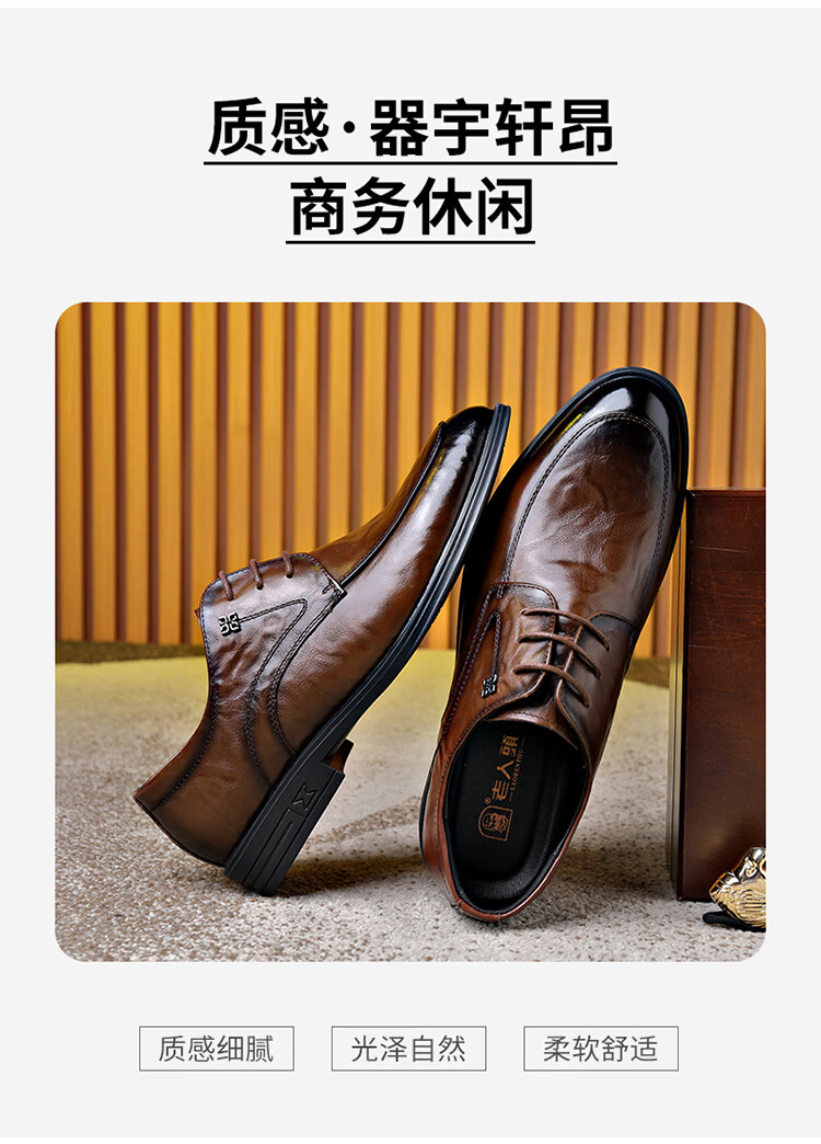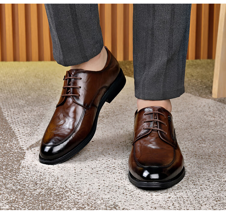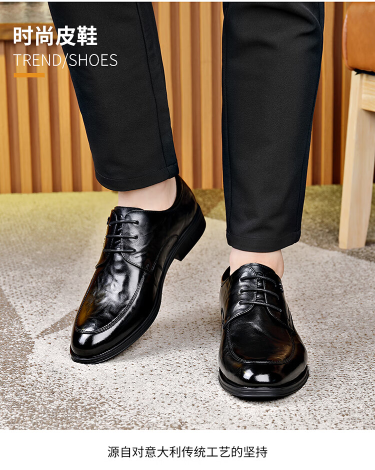 Elderly scalp shoes men's 2025 spring new genuine leather formal shoes business casual shoes comfortable workplace lace-up wedding leather shoes black 41