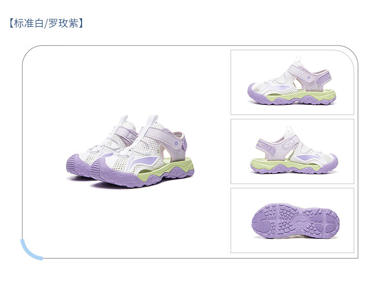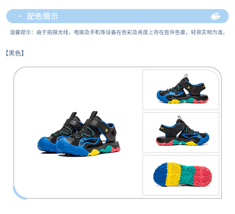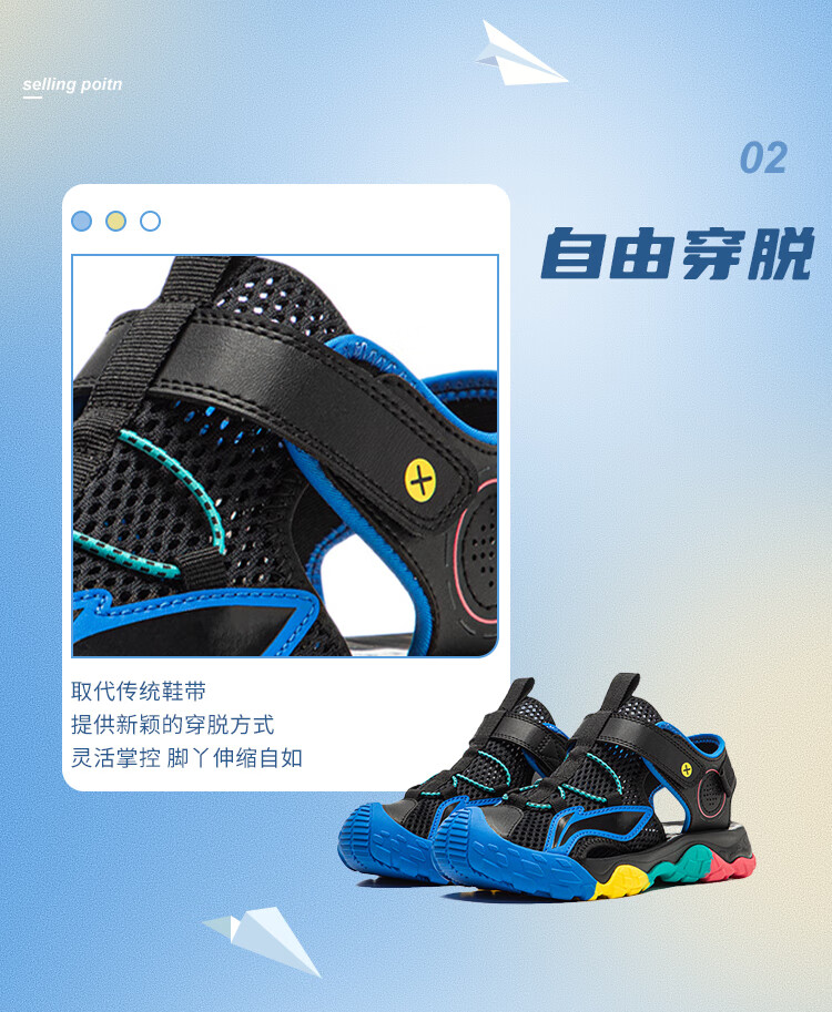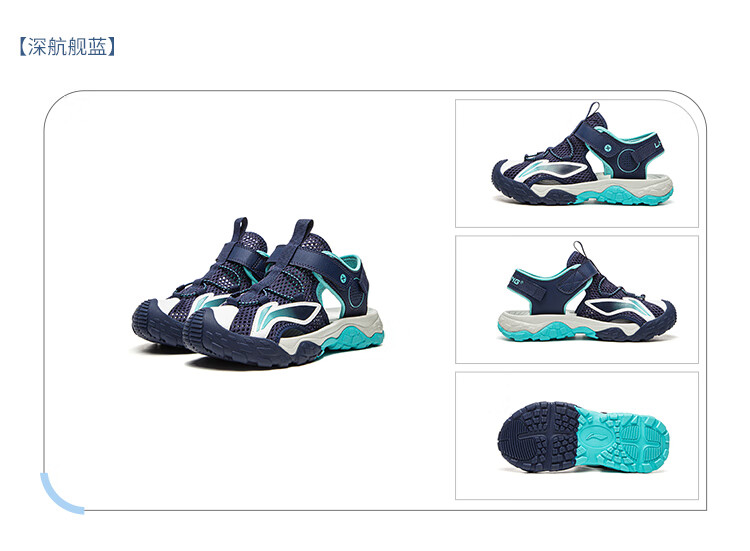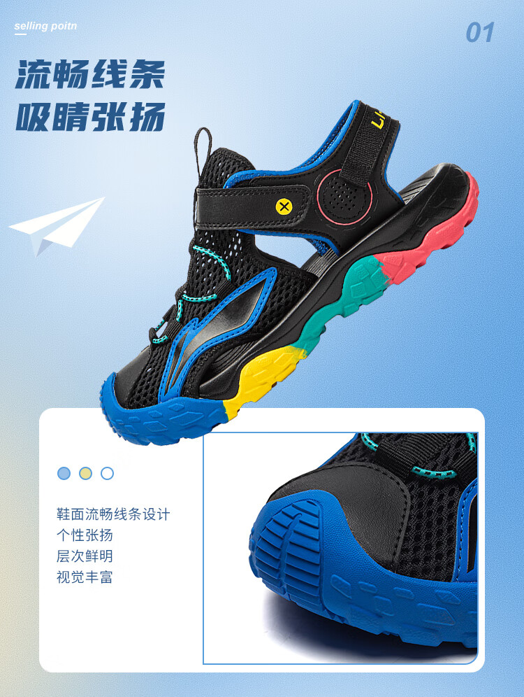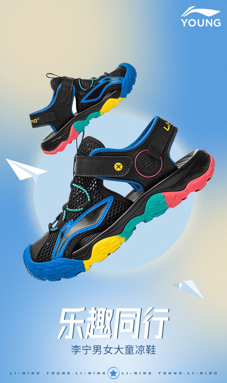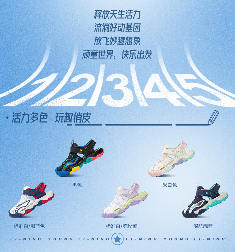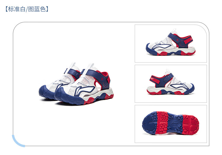 Li Ning children's shoes, children's sandals, boys and older children's summer new style Baotou soft bottom mesh breathable beach sandals standard white/picture blue 44-3 36
