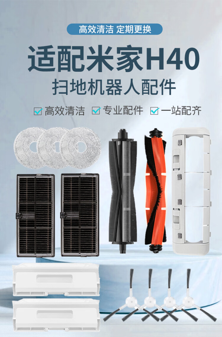 Levenger adapts to Xiaomi Mijia sweeping robot H40/D101CN accessories Mijia dust bag mop rag side roller brush cleaning fluid consumables 2 side brushes + 2 filter elements + 4 rags