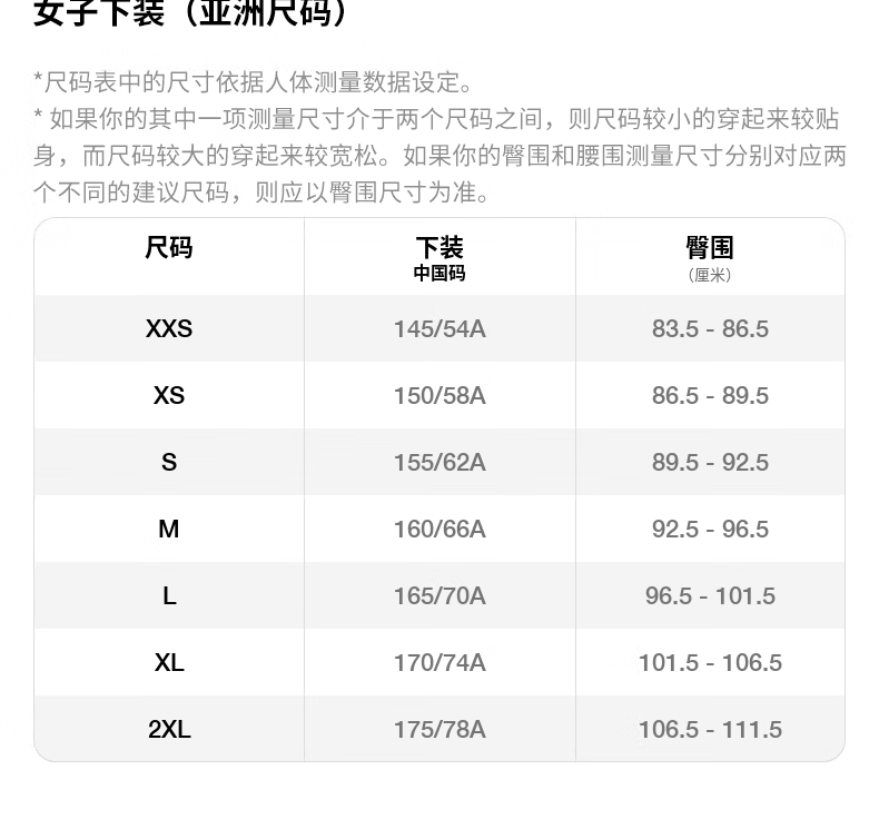 China (cm) 160-165/84-86 165-170 / 88-90 167-172 / 92-96 168-173 / 98-102 170-176 / 106-110