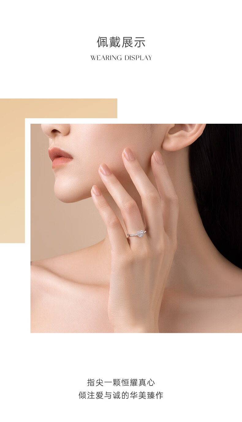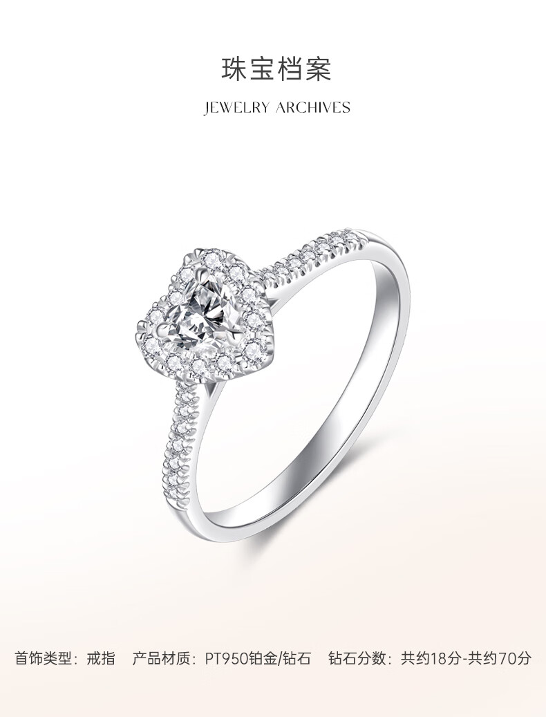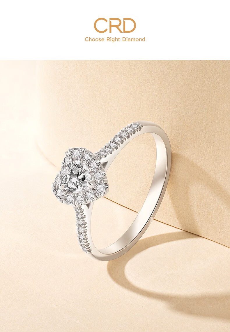 CRD Ke Laidi spot sparkling romantic platinum diamond ring group-set diamond ring proposal heart-shaped diamond ring PT950 total about 70 points main stone 50 points F-G color VS
