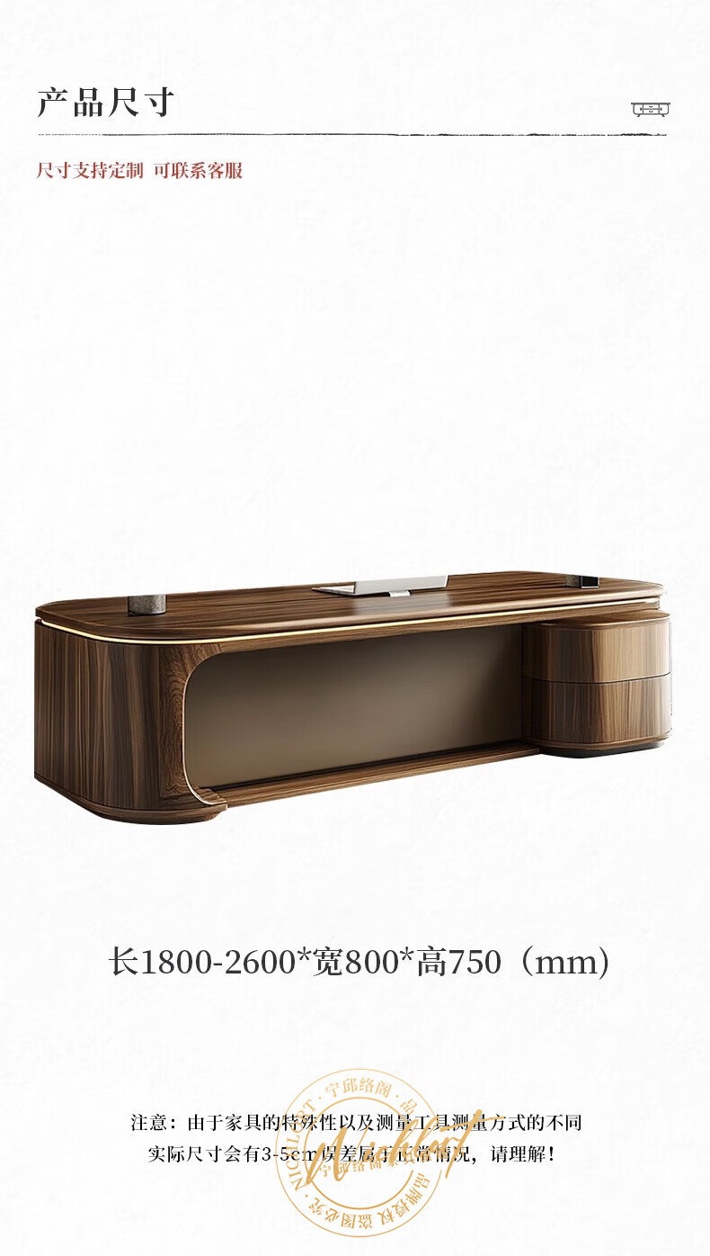 Ningqiu Luoge (NICHLORT) new Chinese style solid wood boss desk simple modern paint desk chairman's office black walnut executive desk 2.6 meters boss desk ash wood