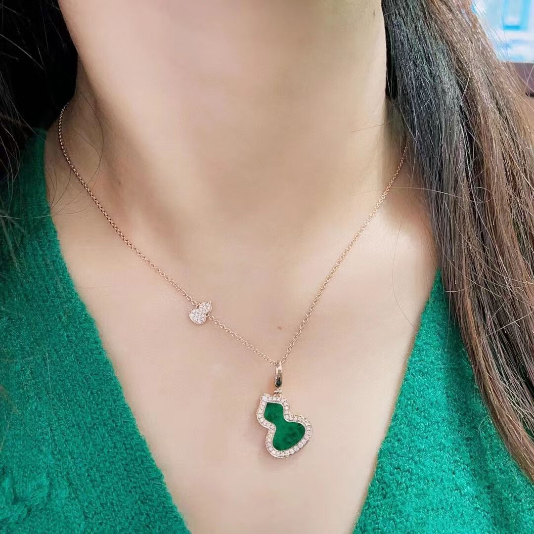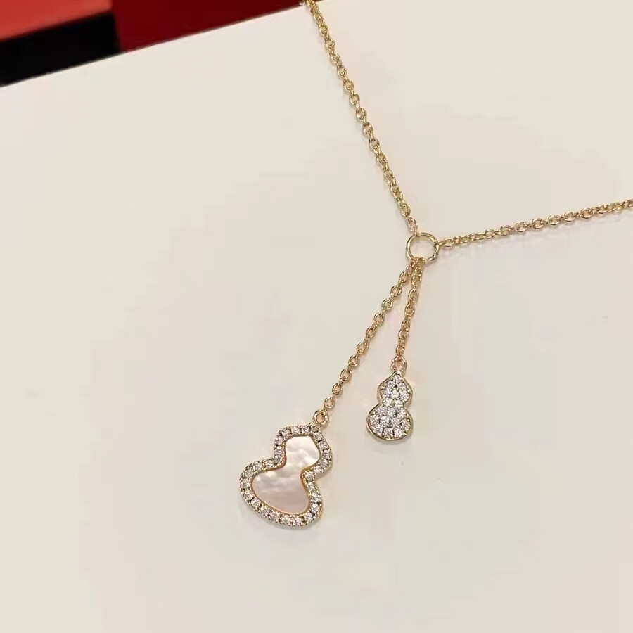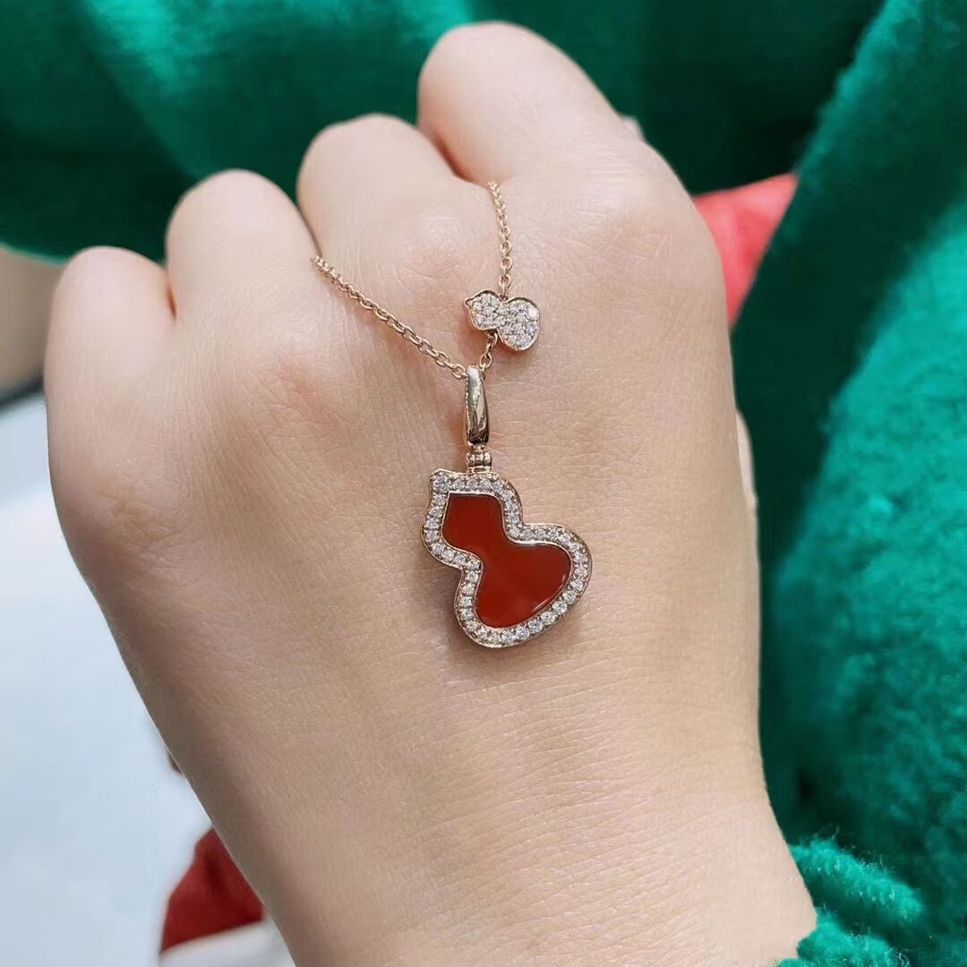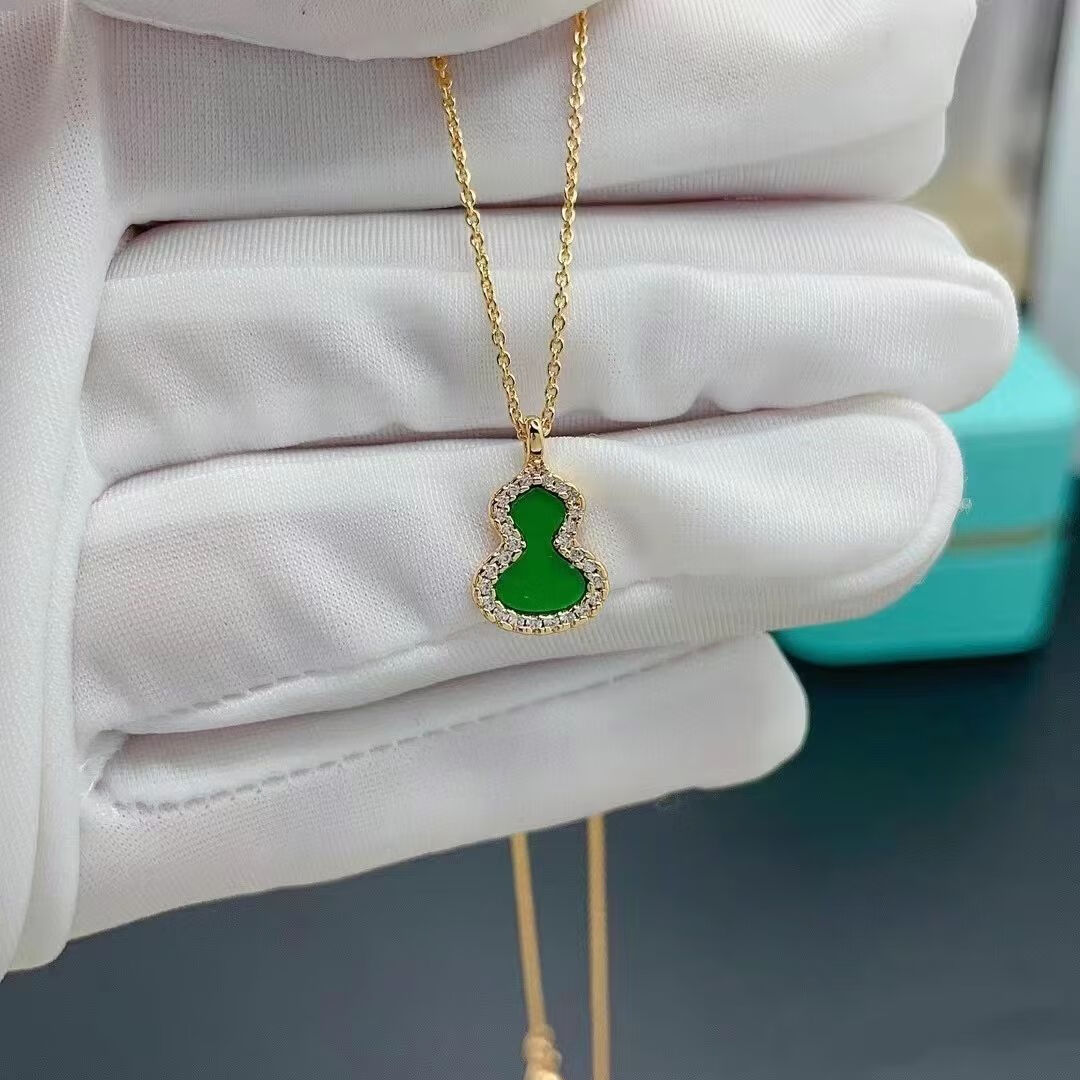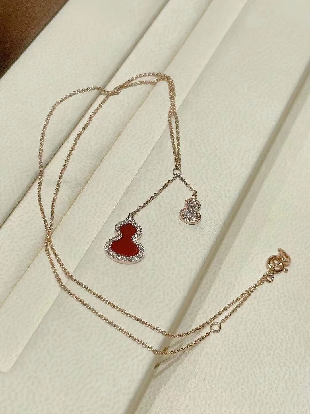 Slightly gifted high version of the Kirin double gourd necklace for women sterling silver plated 18k gold red agate green emerald Fulu gourd pendant necklace red agate