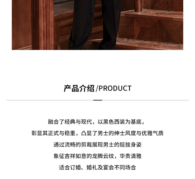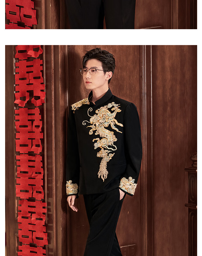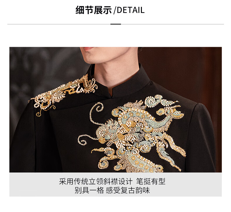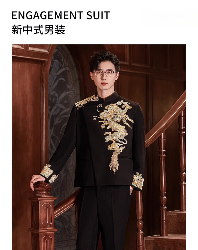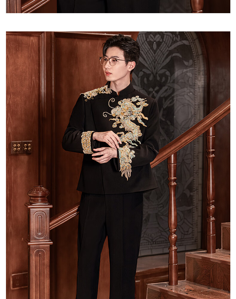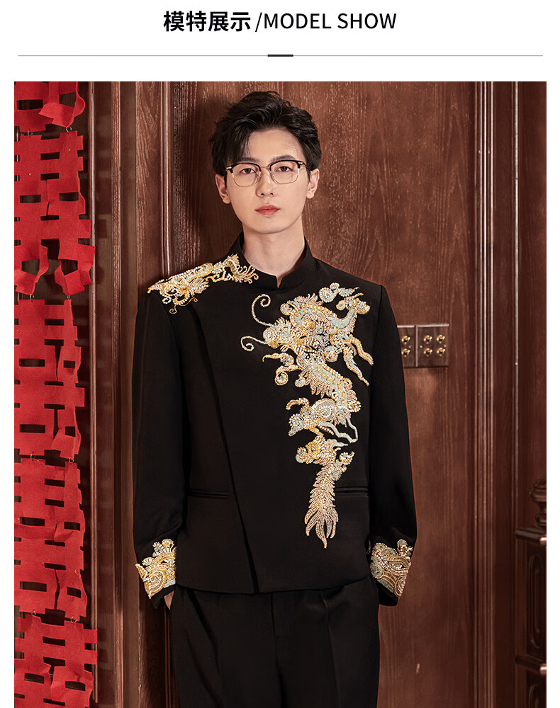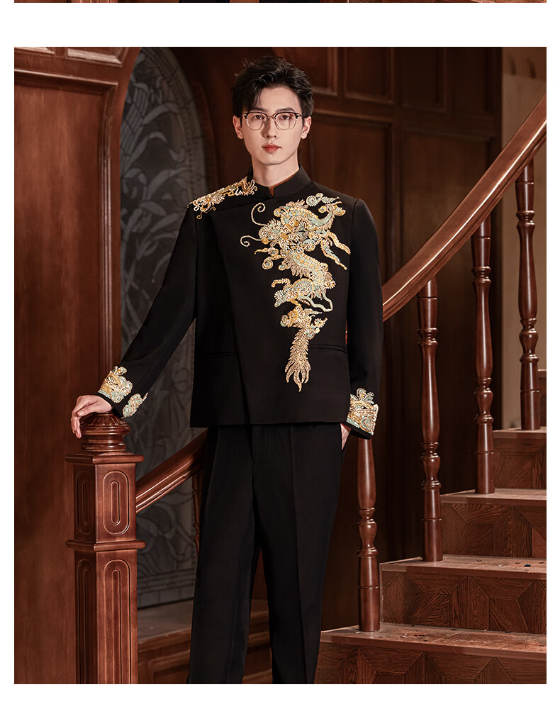TOME BORNEK American Tommy New Chinese tunic men's wedding suit suit Chinese style groom wedding dress dragon pattern embroidery Yunqi suit jacket + pants M