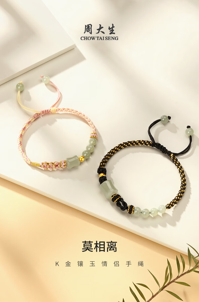 Zhou Taisheng 18K gold inlaid jade and field sapphire bracelet braided rope gold beads couple bracelet birthday gift Mo Xiangli black bracelet men's style