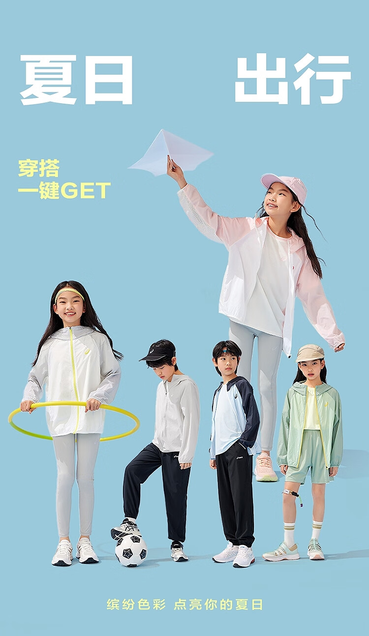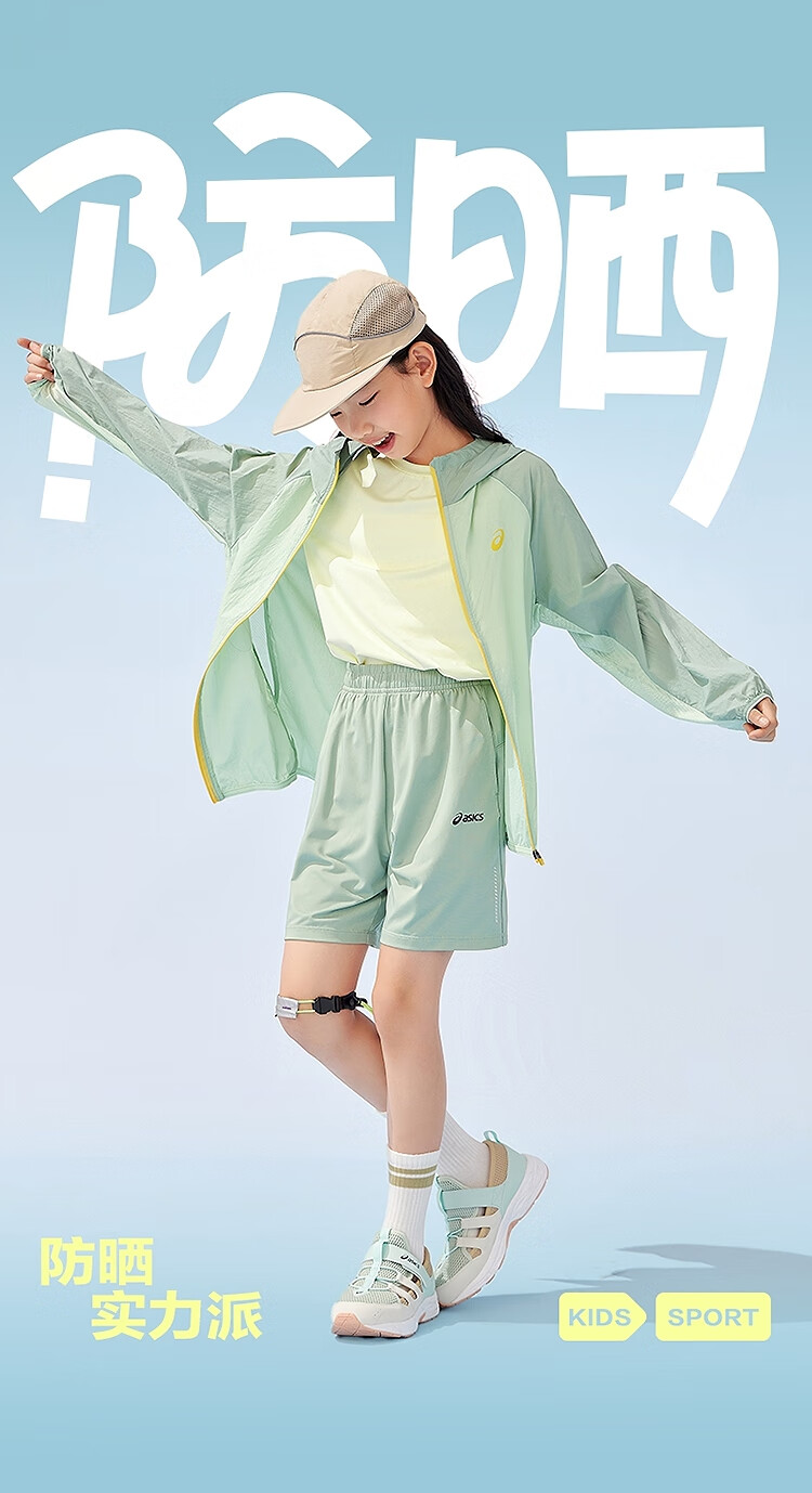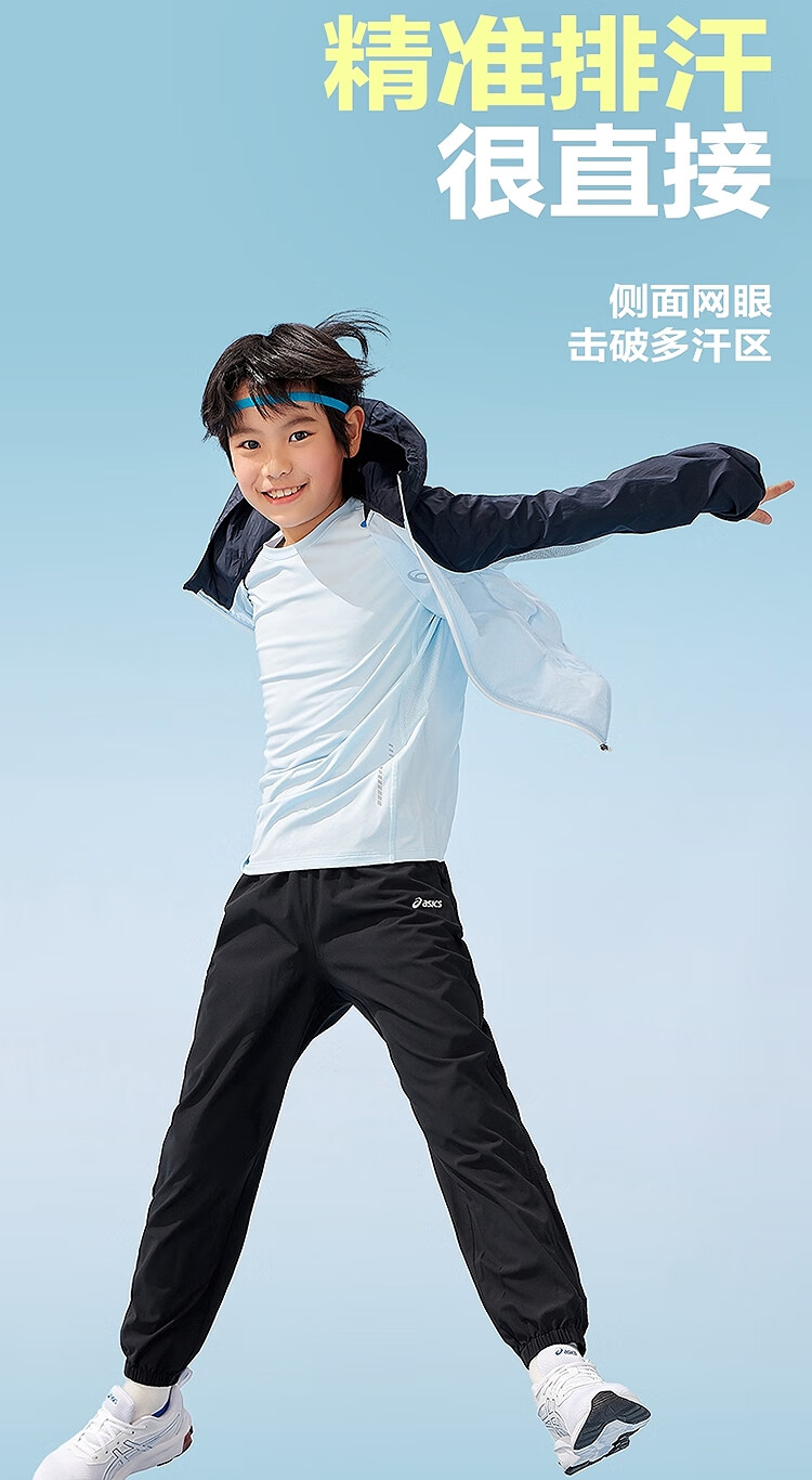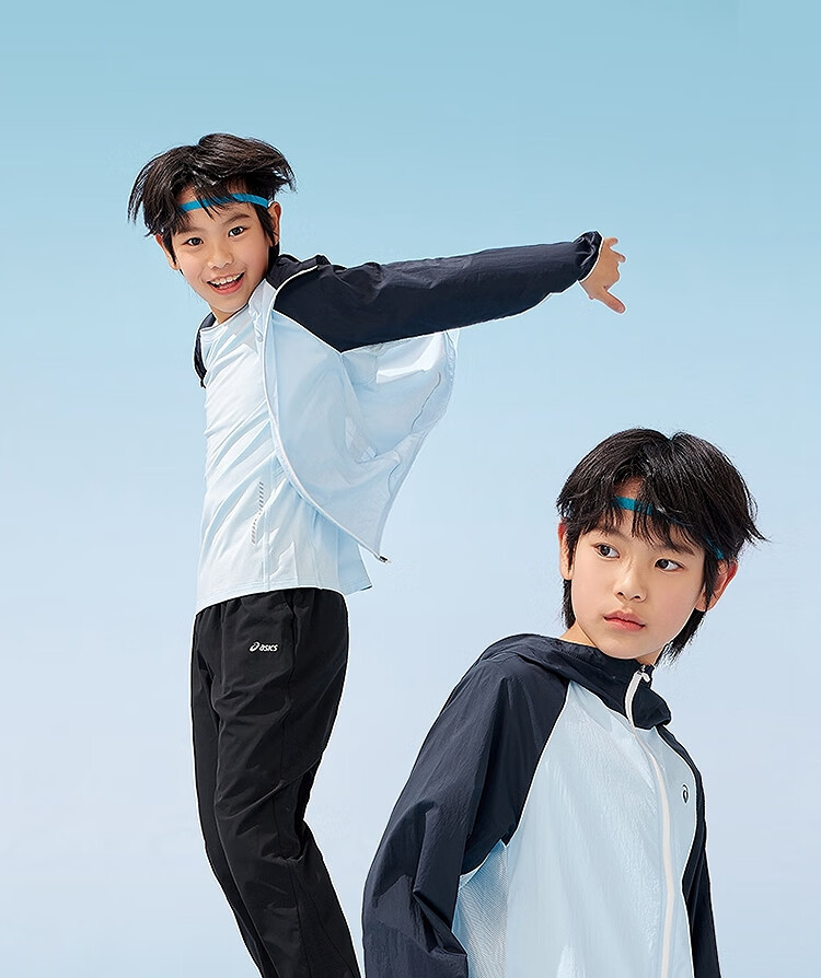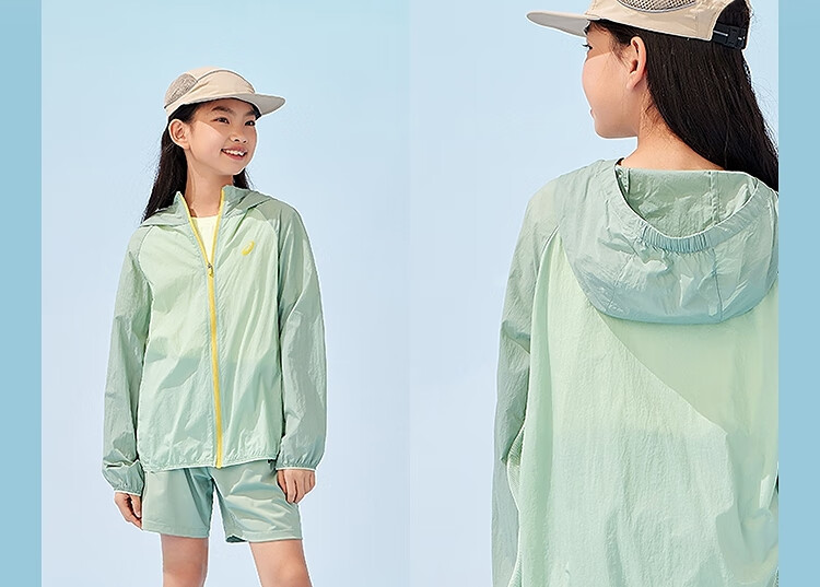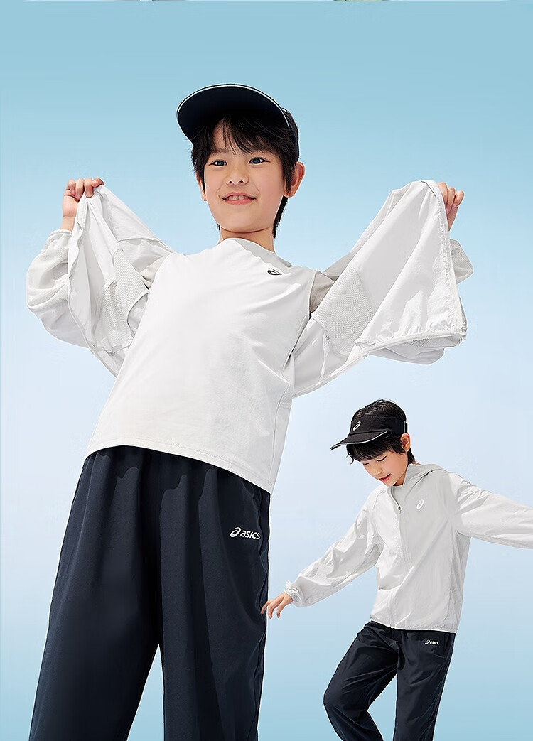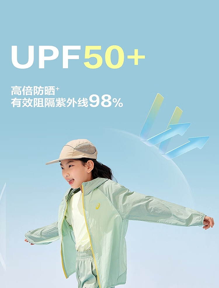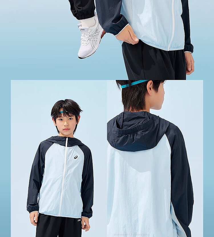 ASICS Children's Wear 25th Summer New Men's and Women's UPF50+ Ice Wing Sun Protection Wear Woven Breathable Jacket 5002 Light Blue 160