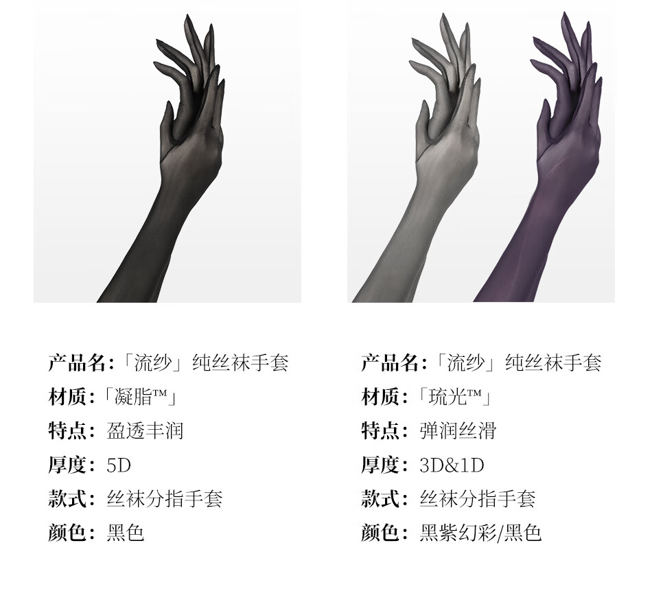 Aya born silky silk lingerie flowing yarn condensed fat 5D ultra-thin stockings gloves sexy shiny black silk cos gloves for women Black black one size - condensed fat