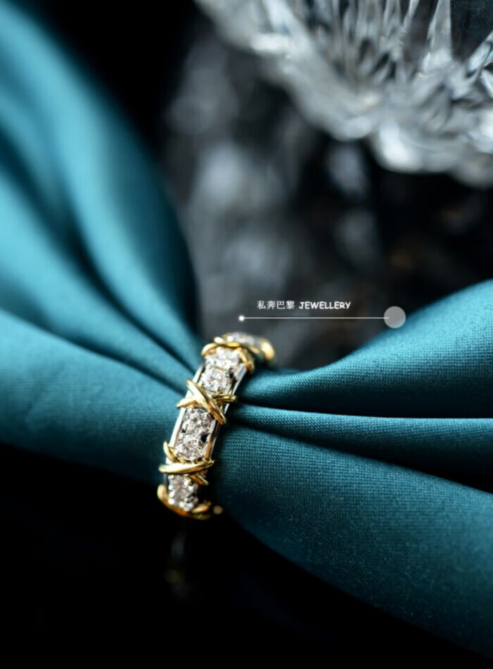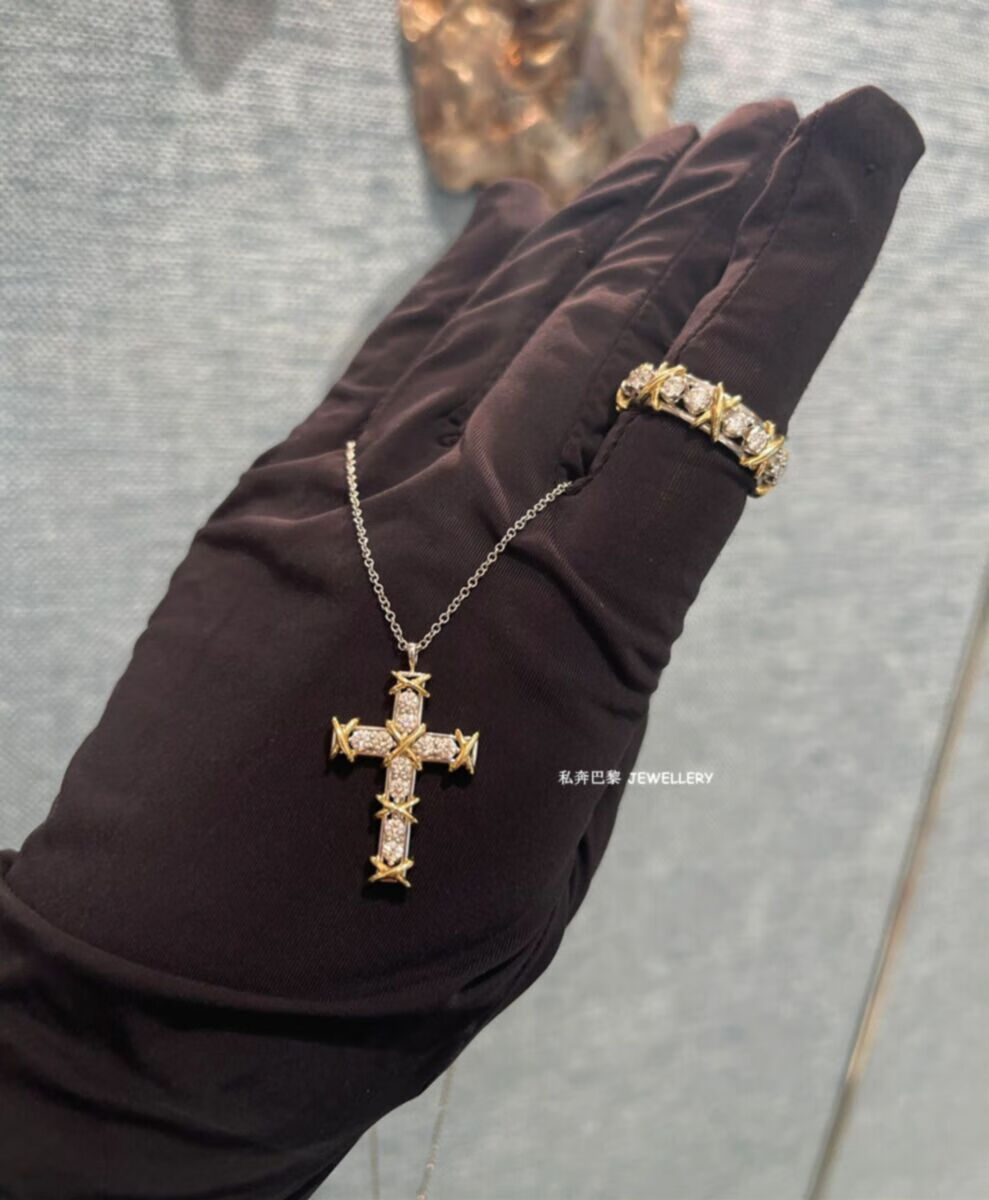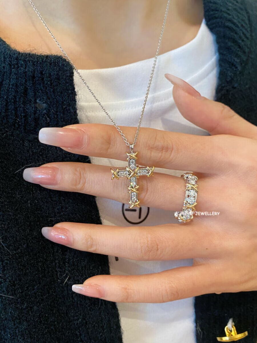 Micro-gift 18K gold two-color cross ring gold cross sterling silver