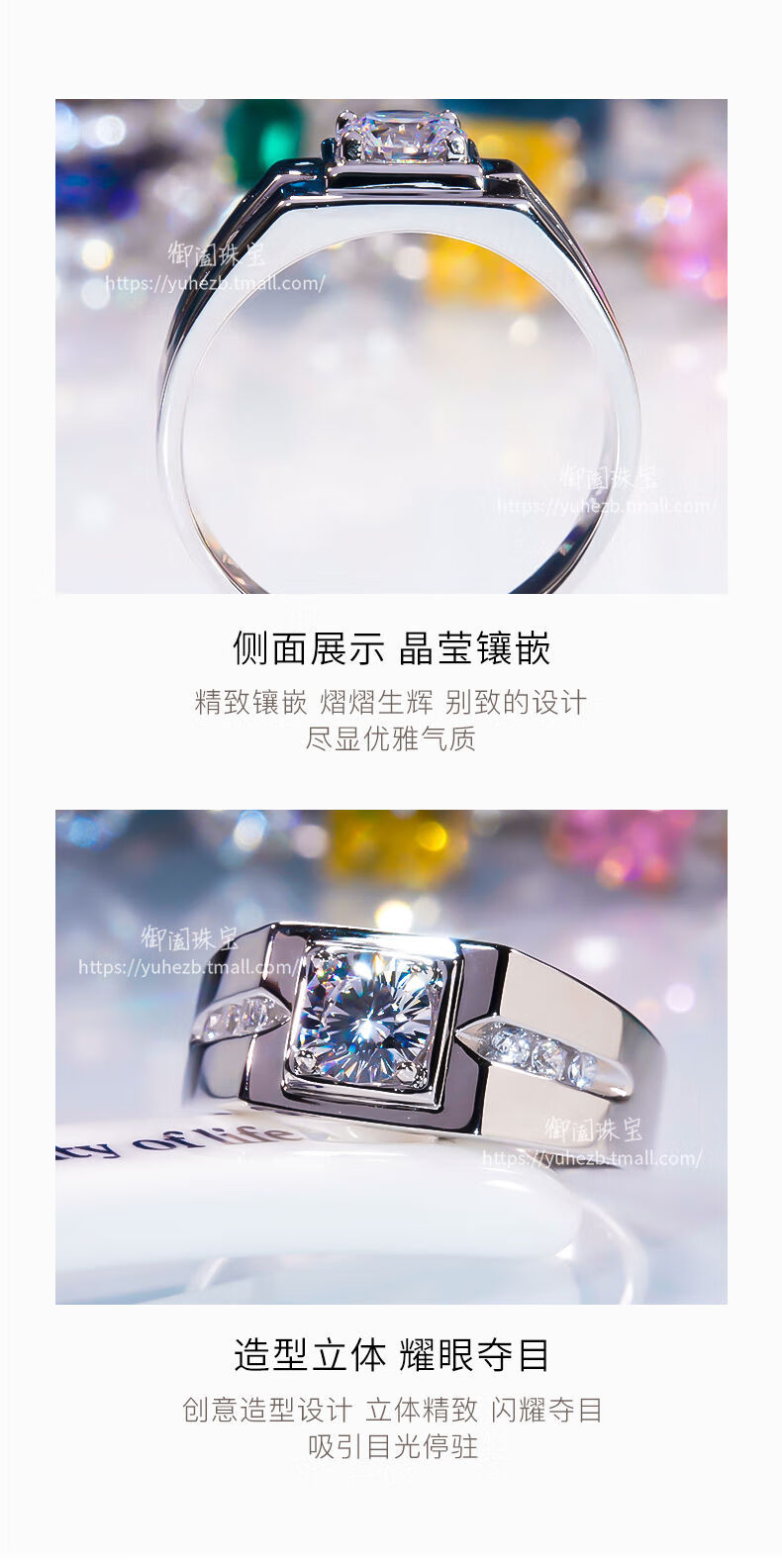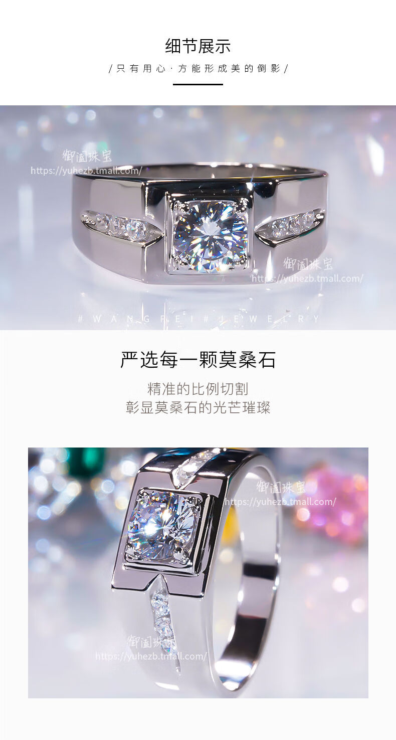 Slightly gifted 18K gold moissanite men's ring, simple and fashionable 50 cents sterling silver men's diamond ring couple ring wedding engagement ring 1 carat men's size 16