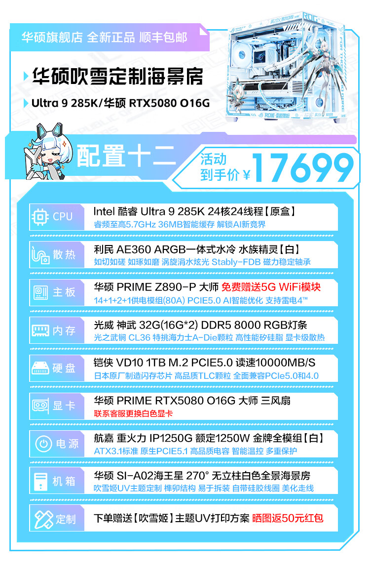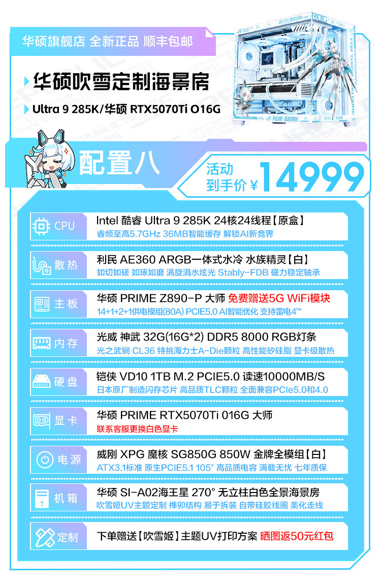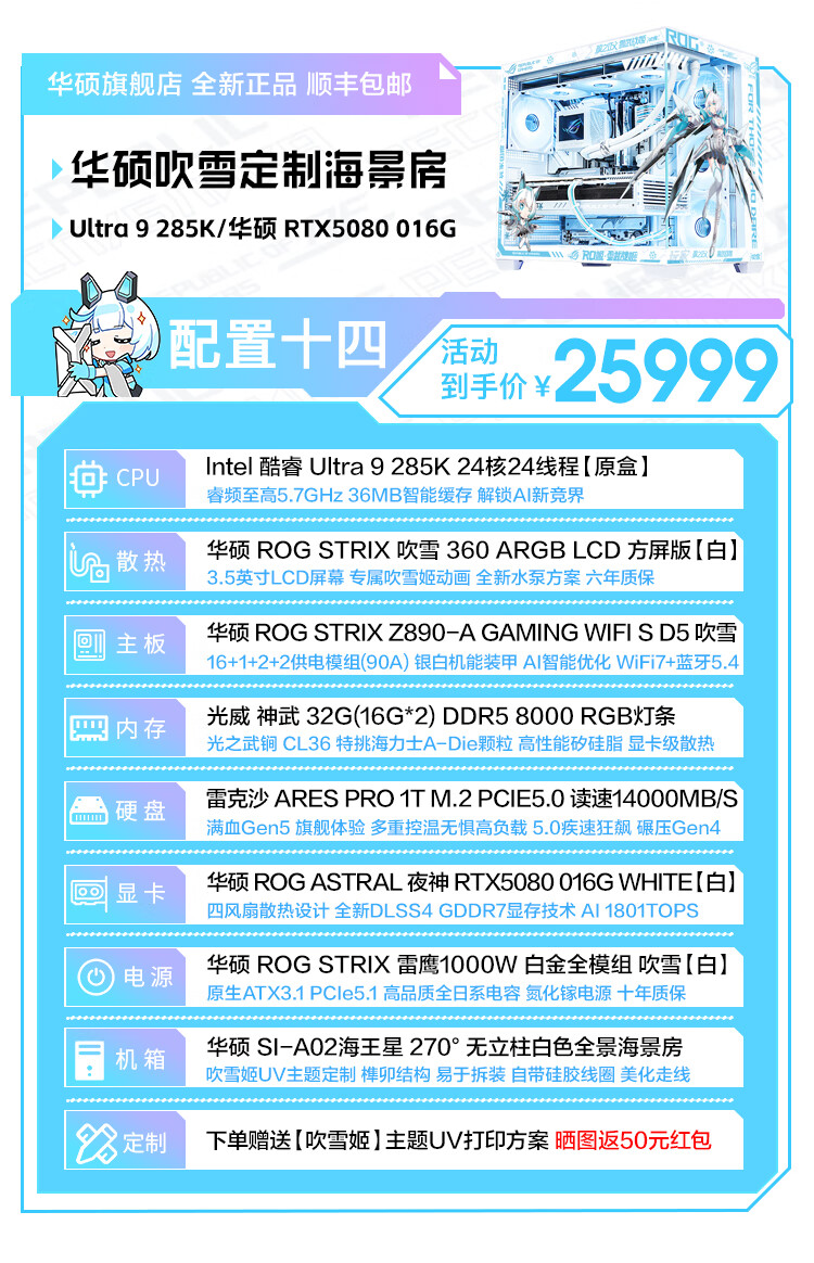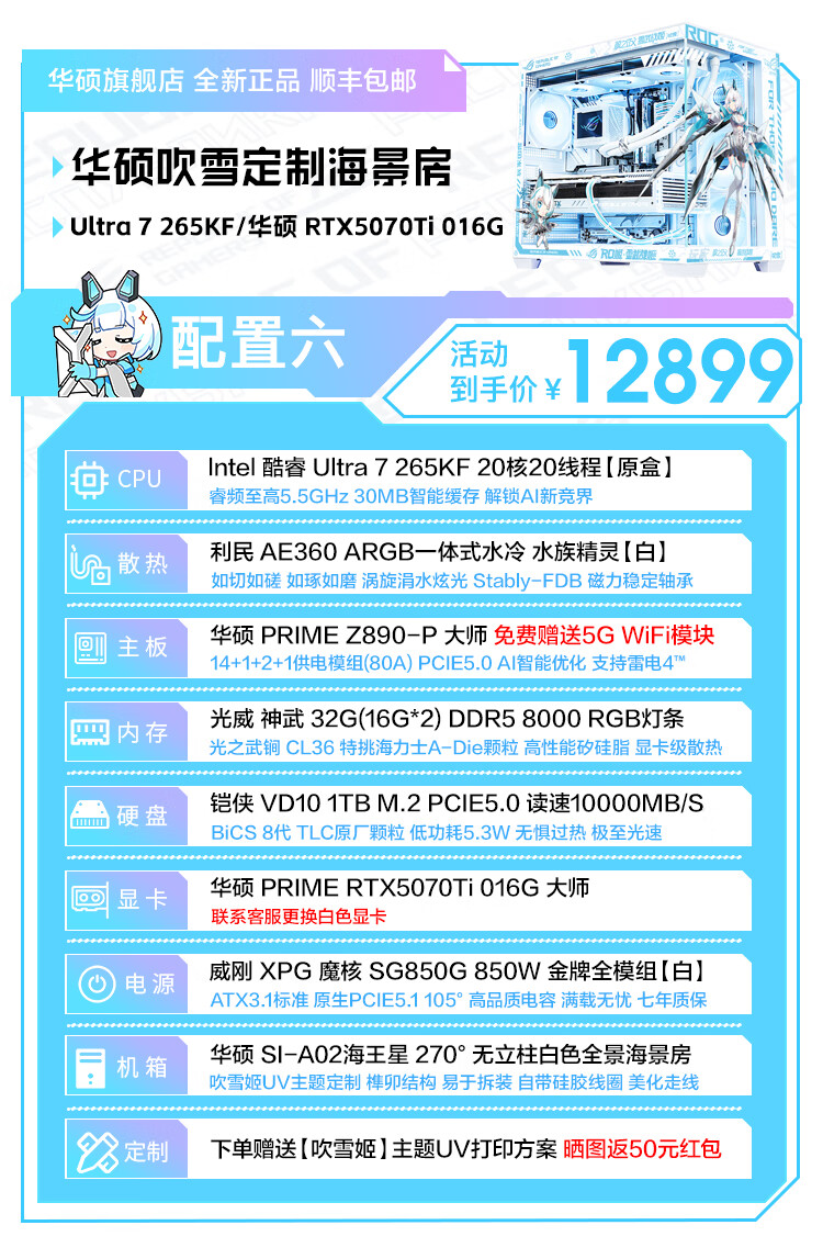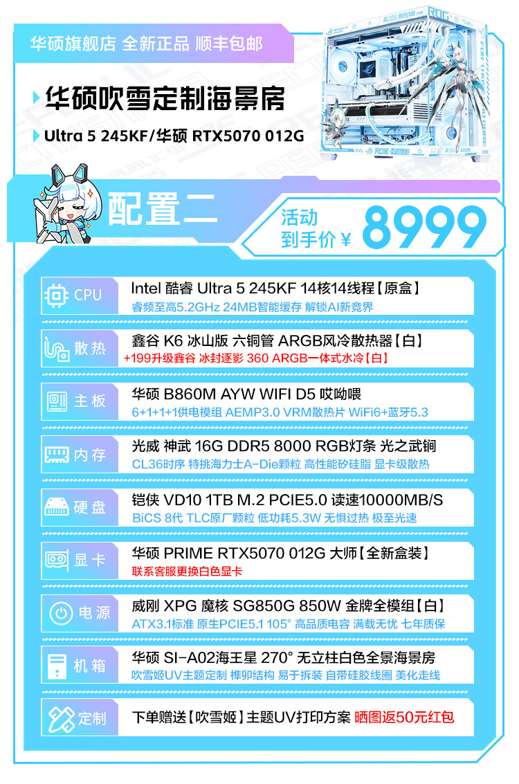 ASUS family bucket RTX5080/5070Ti/5070 graphics card i9 14900KF/285K assembled computer DIY desktop complete game console Fubukihime mod chassis sea view room i5 14600KF+ASUS RTX5070 configuration one