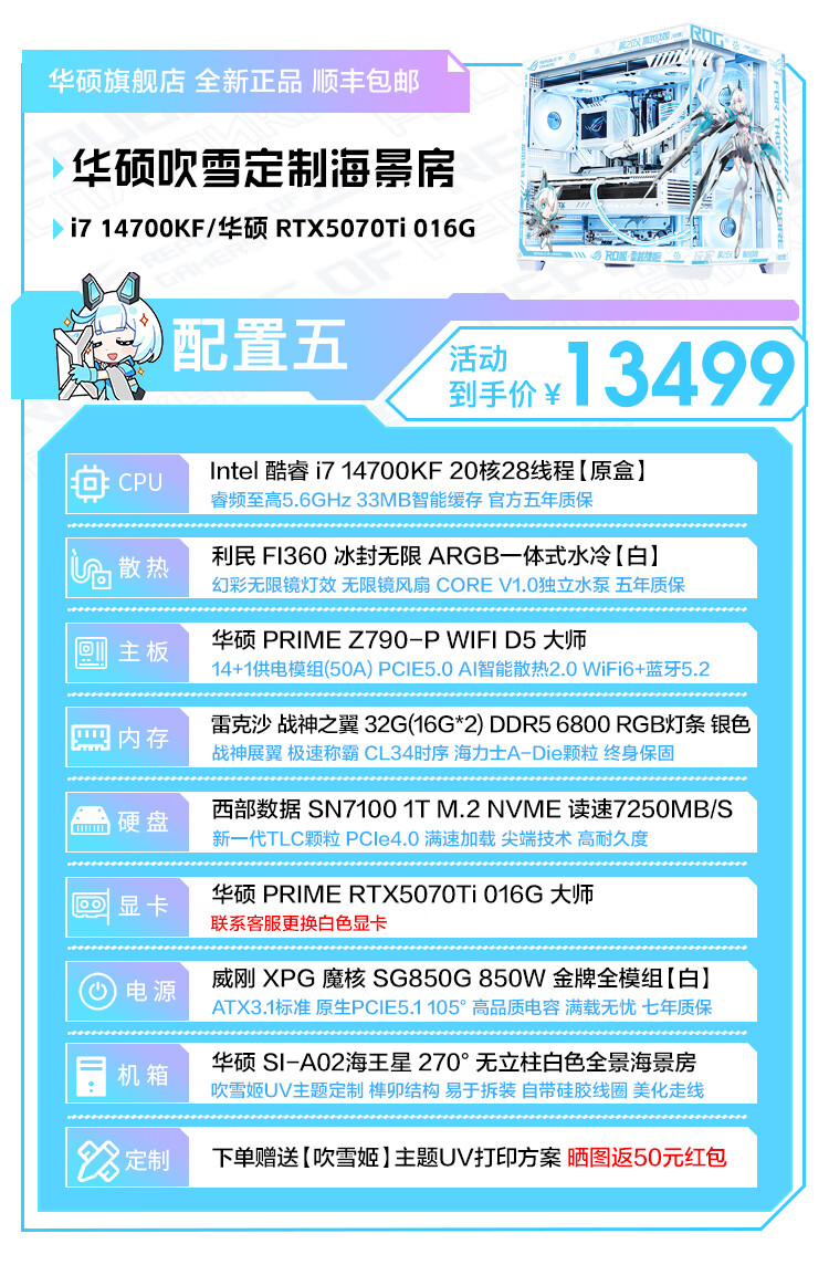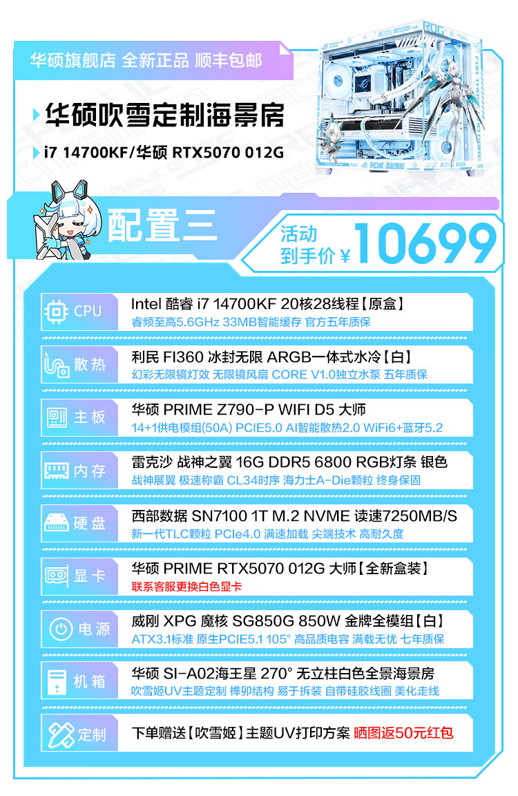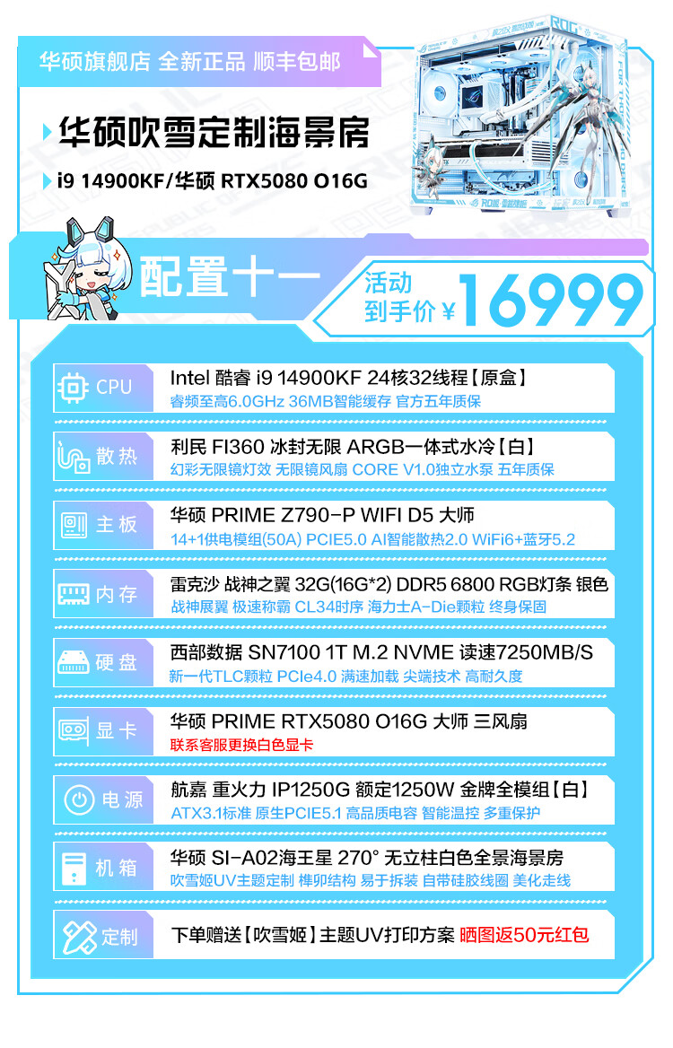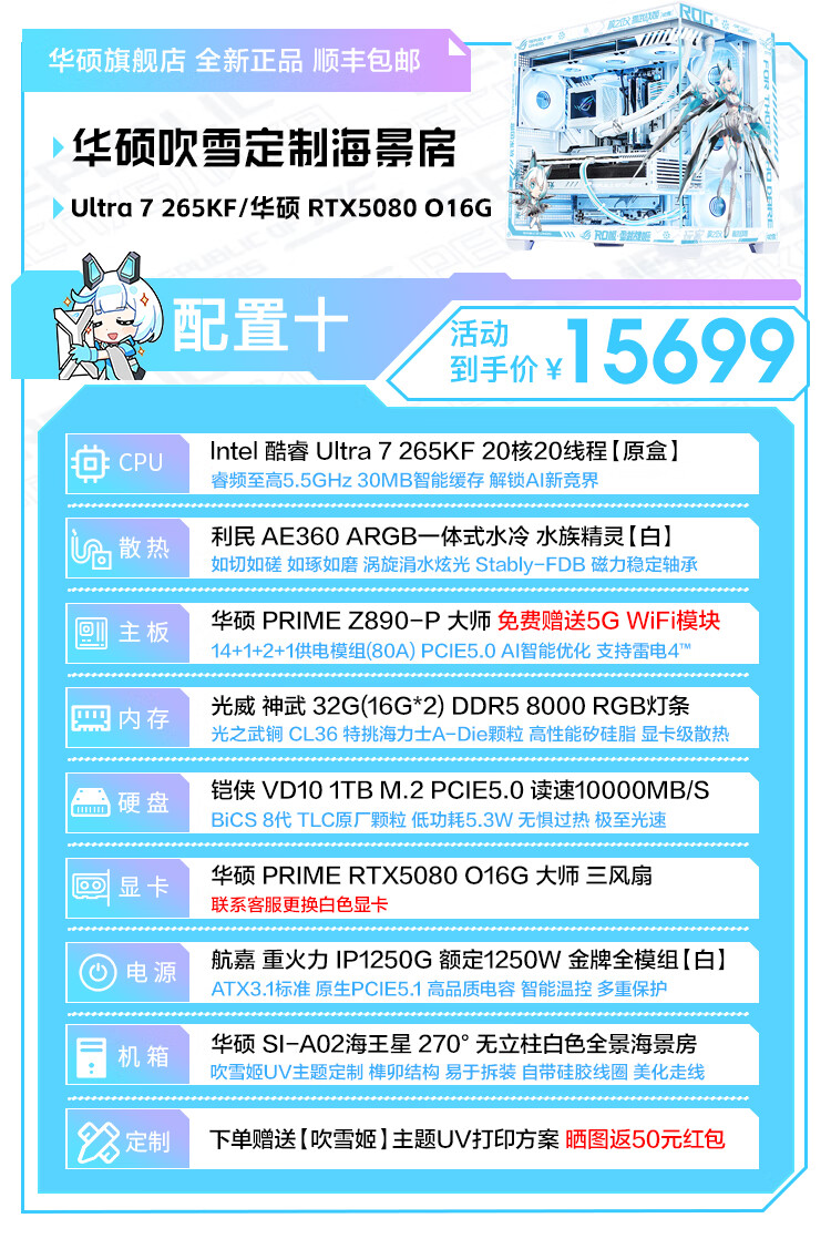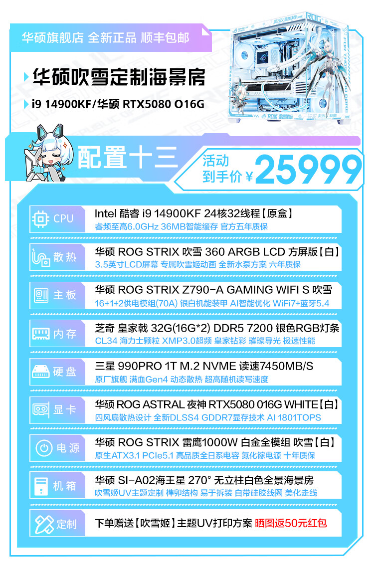 ASUS family bucket RTX5080/5070Ti/5070 graphics card i9 14900KF/285K assembled computer DIY desktop complete game console Fubukihime mod chassis sea view room i5 14600KF+ASUS RTX5070 configuration one