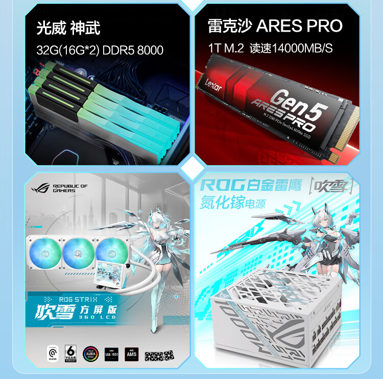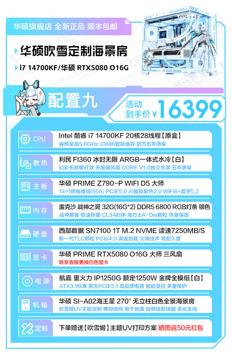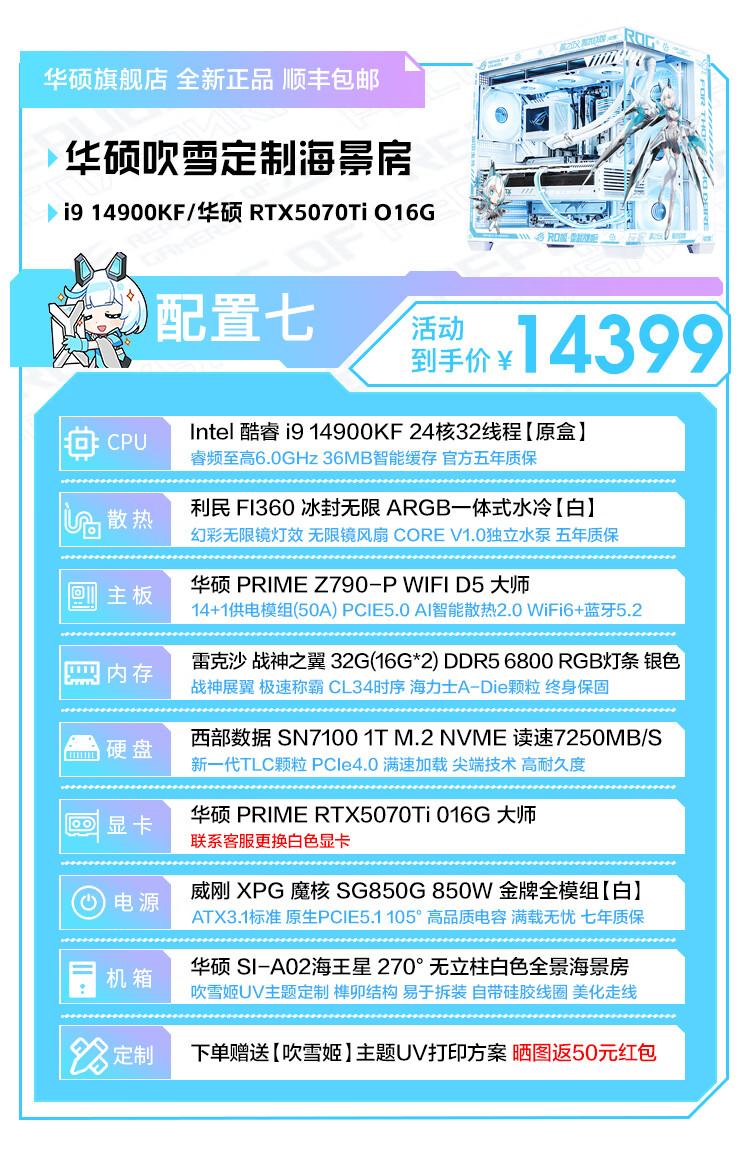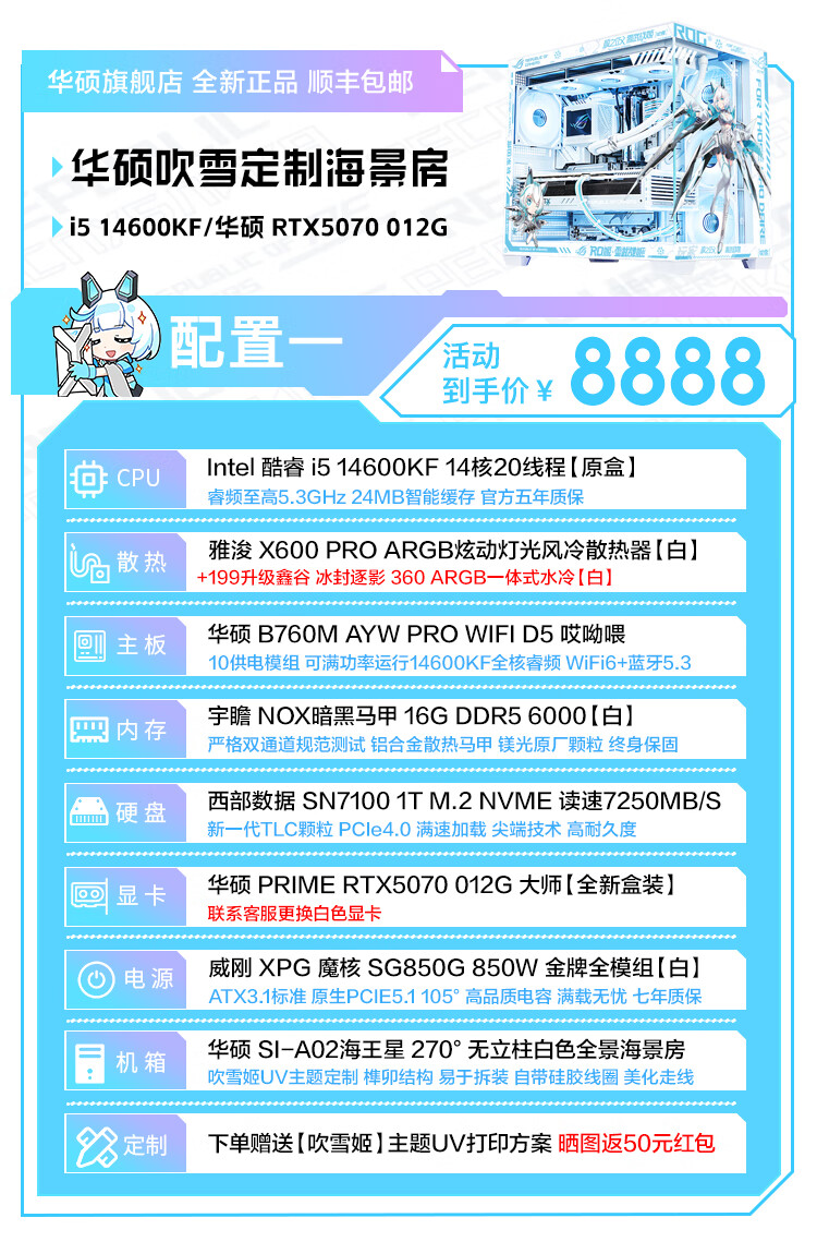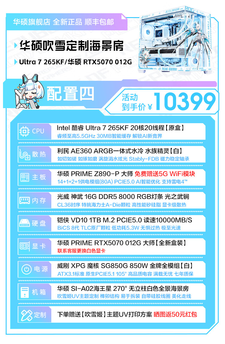 ASUS family bucket RTX5080/5070Ti/5070 graphics card i9 14900KF/285K assembled computer DIY desktop complete game console Fubukihime mod chassis sea view room i5 14600KF+ASUS RTX5070 configuration one