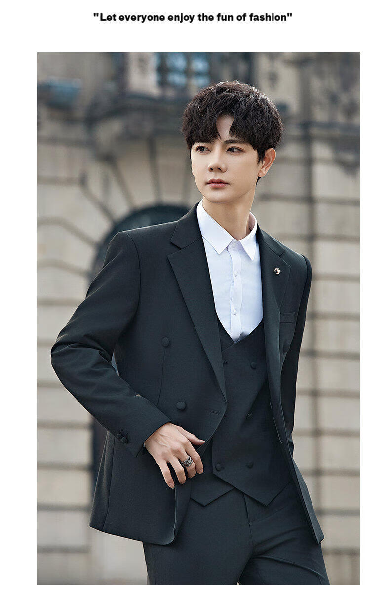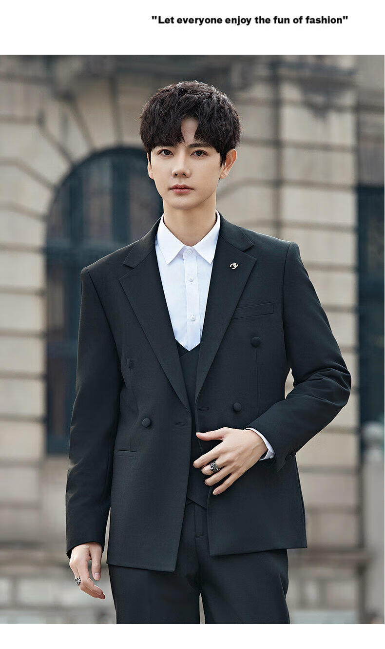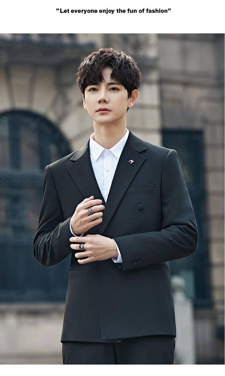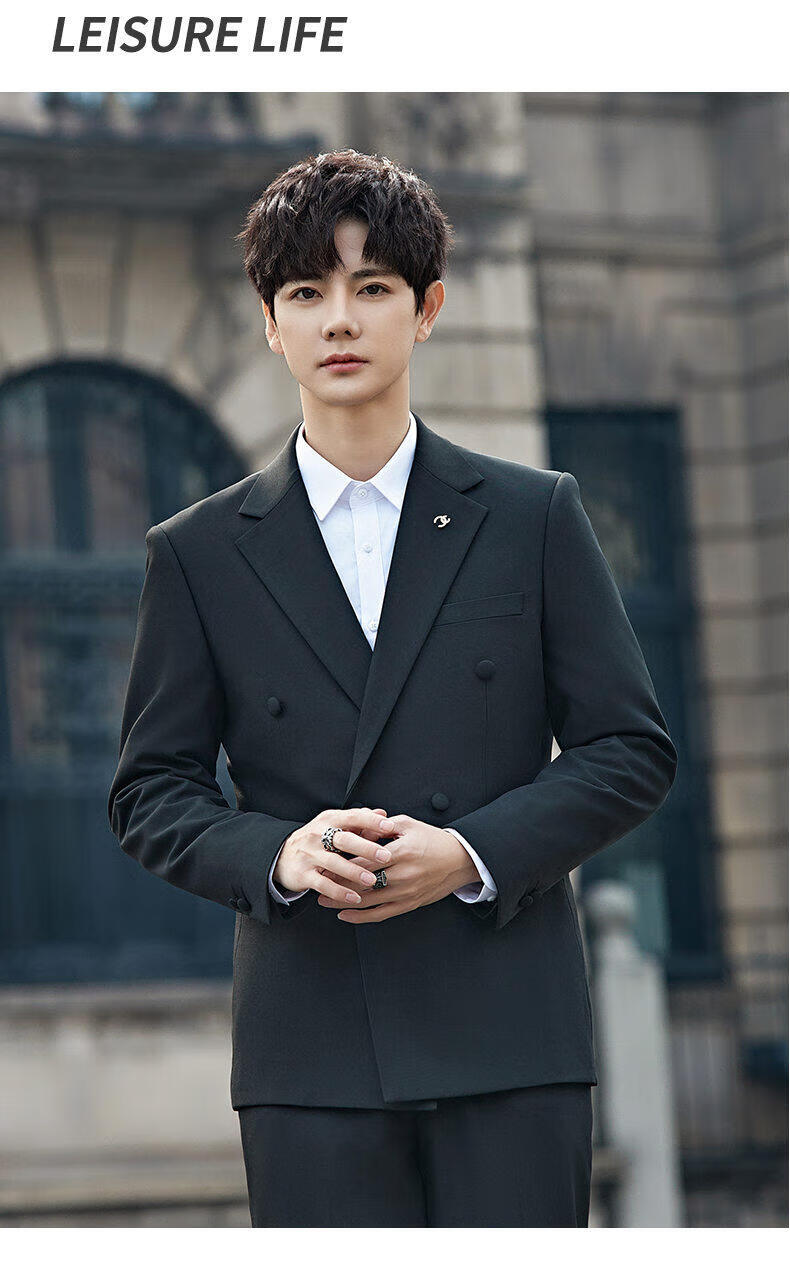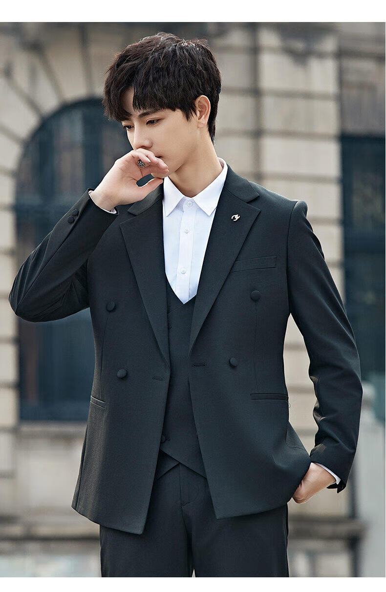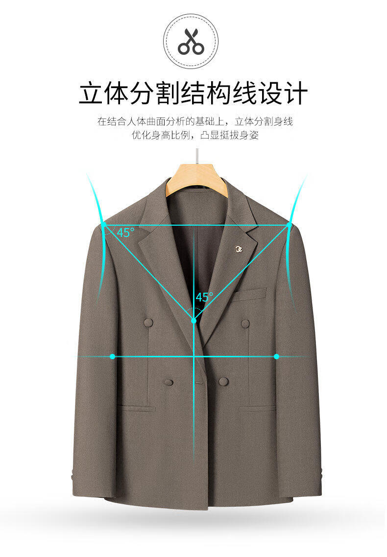 ROMON Groom's Suit Men's Suit Wedding Dress British Double-breasted Suit Korean Style Slim Business Casual Formal Wear Fashion Brown Suit+Trousers XL