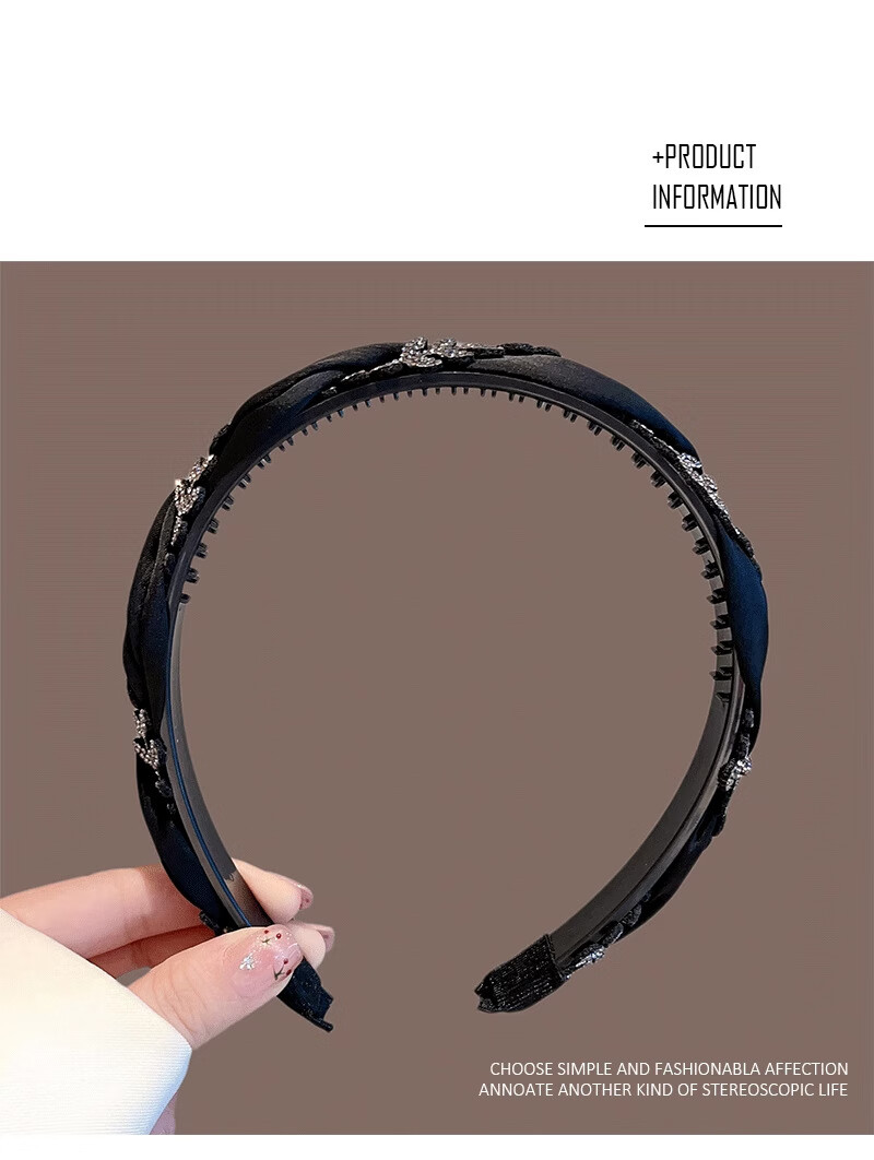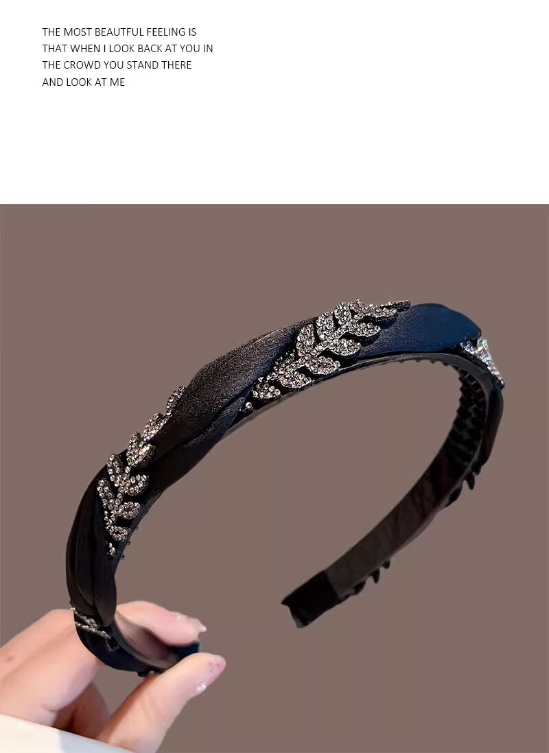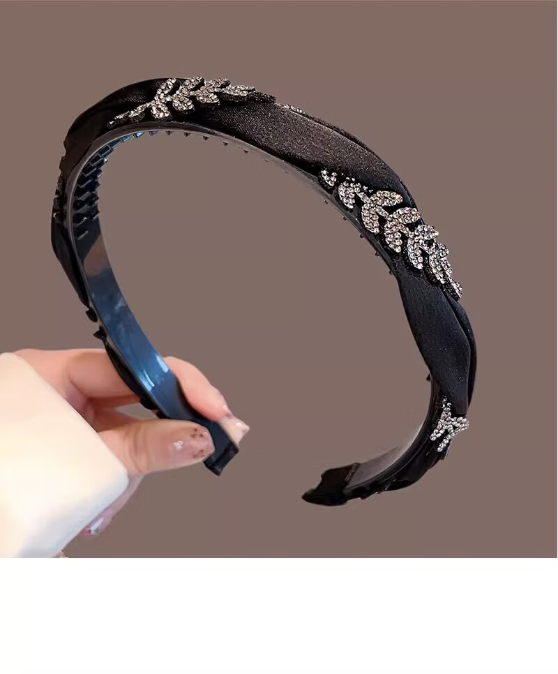 MOYAN 2025 New Fabric Sparkling Drill Headband Wheat Headband Women's Fashion Light Luxurious Hairpin Feeling Versatile Outing Headwear 1# Black Rhinestone Wheat Headband A07-202