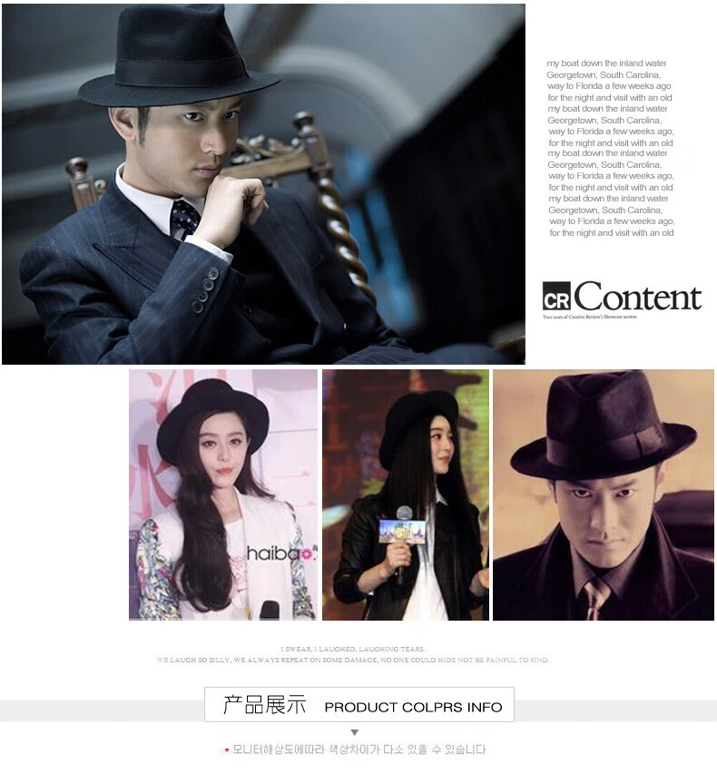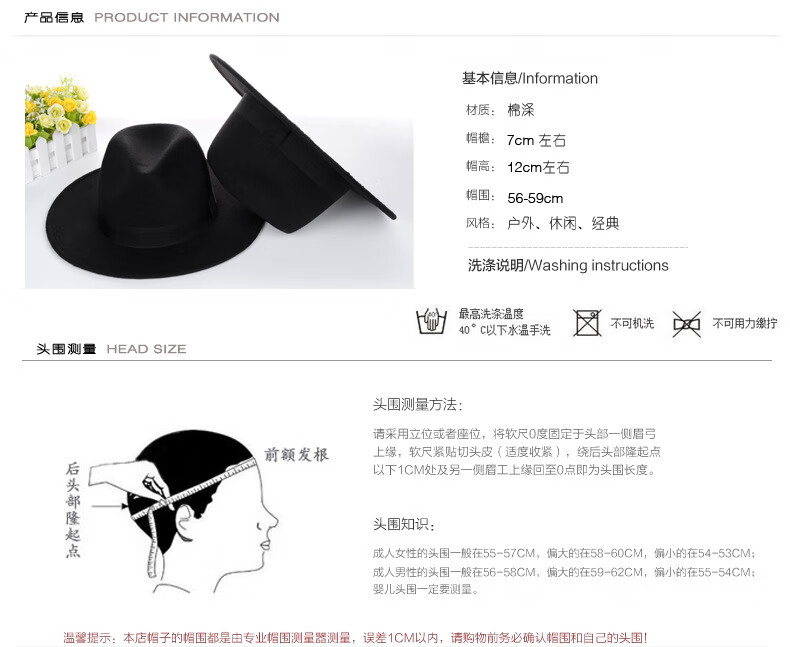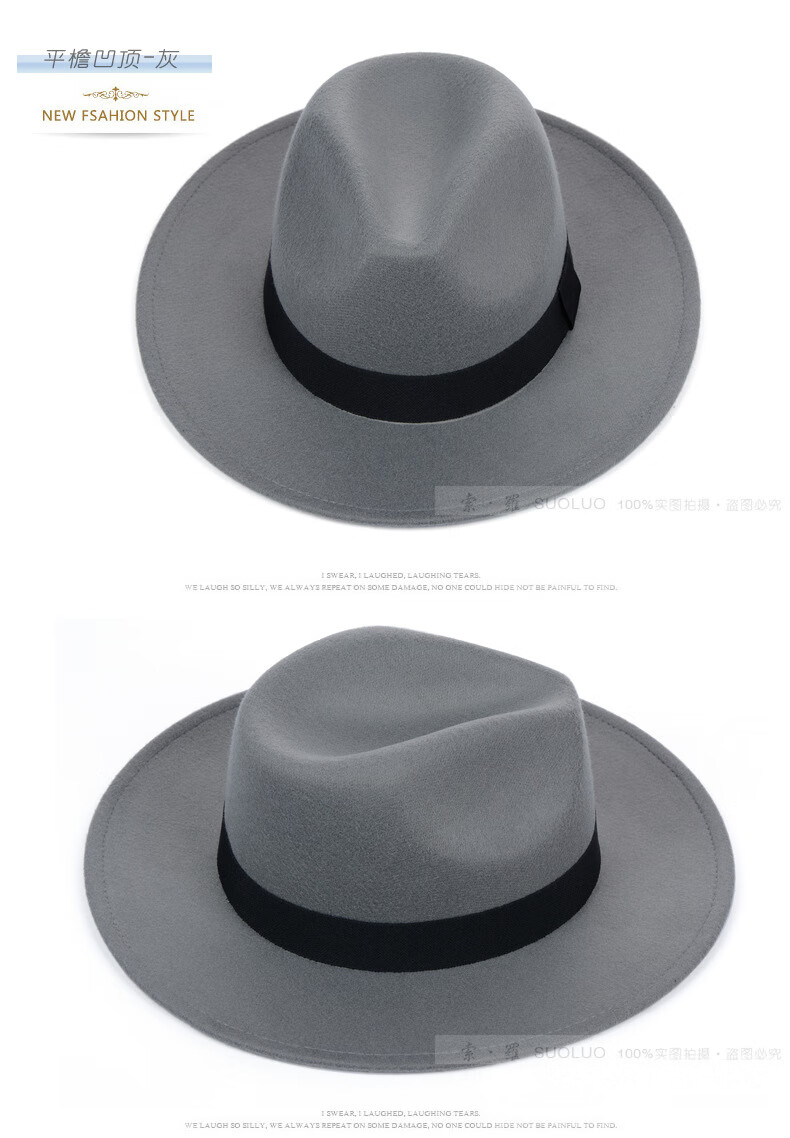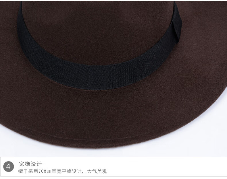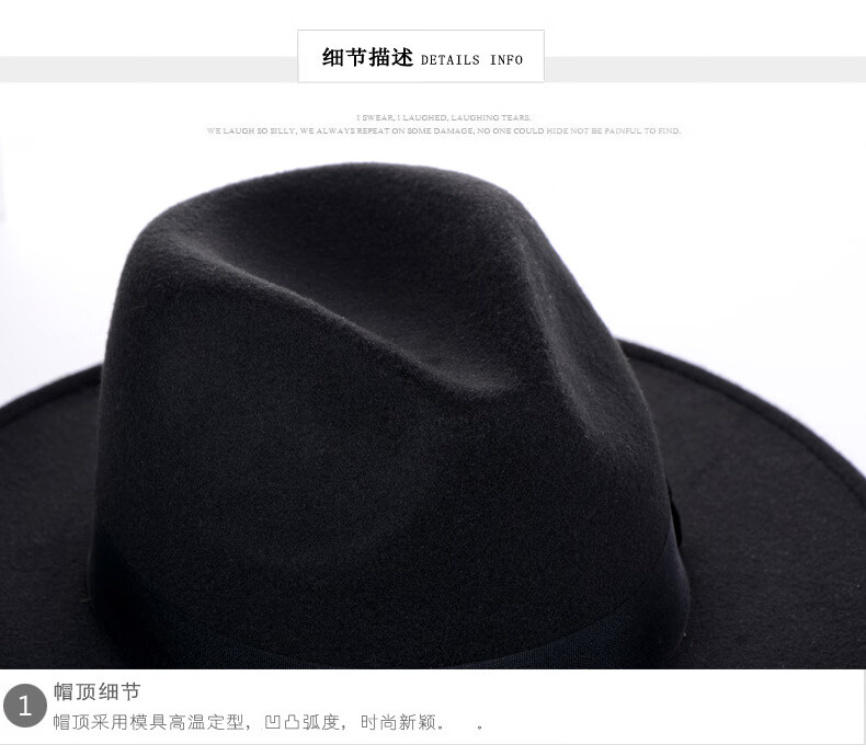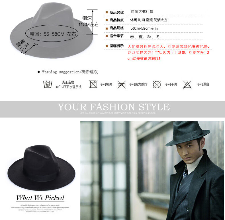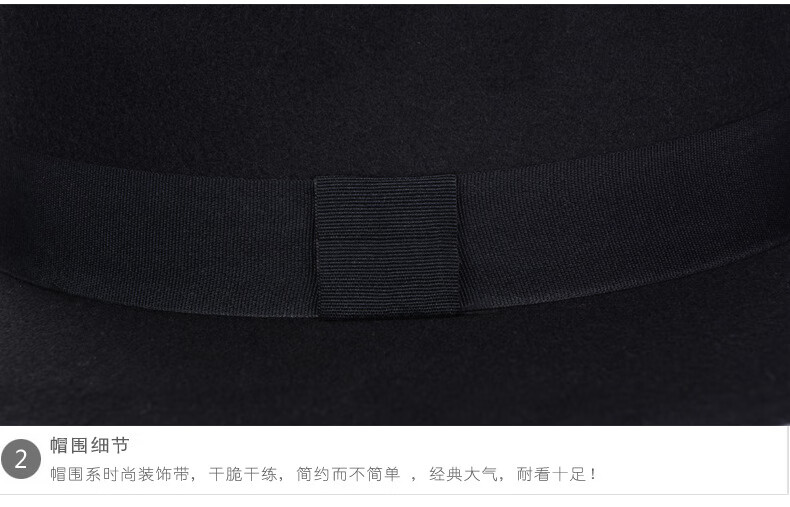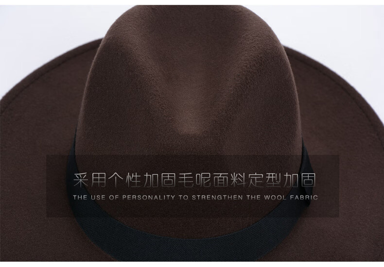 Peike Shanghai Beach Big Brim Top Hat Men's Black Woolen Hat Women's Stage Large Felt Hat Groom's Retro Gentleman Hat Spring and Summer Shanghai Beach Black Non-Adjustable