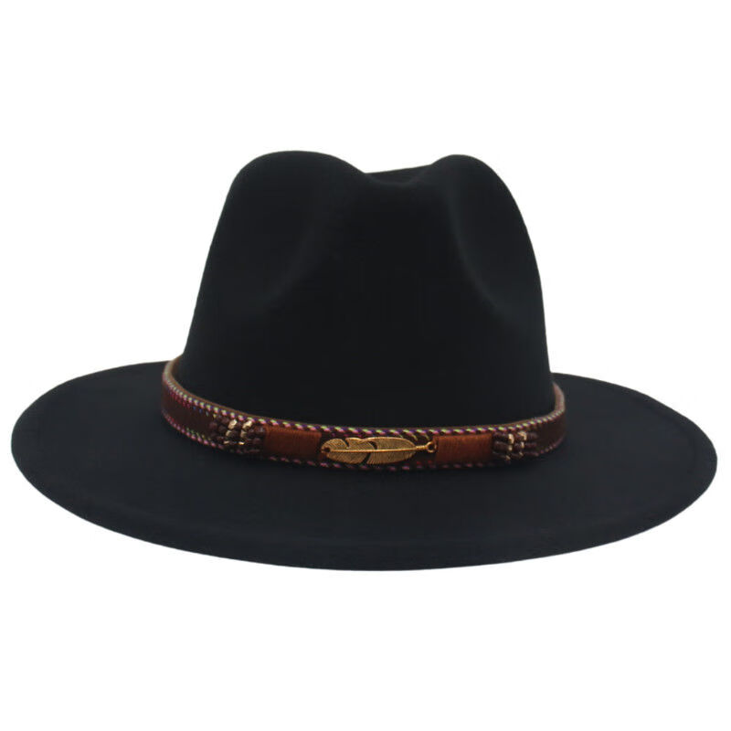 Pei Ke European and American men's and women's British hats ethnic style Tibetan wide-brimmed Tibetan style hat fedora hat black L (5962cm)