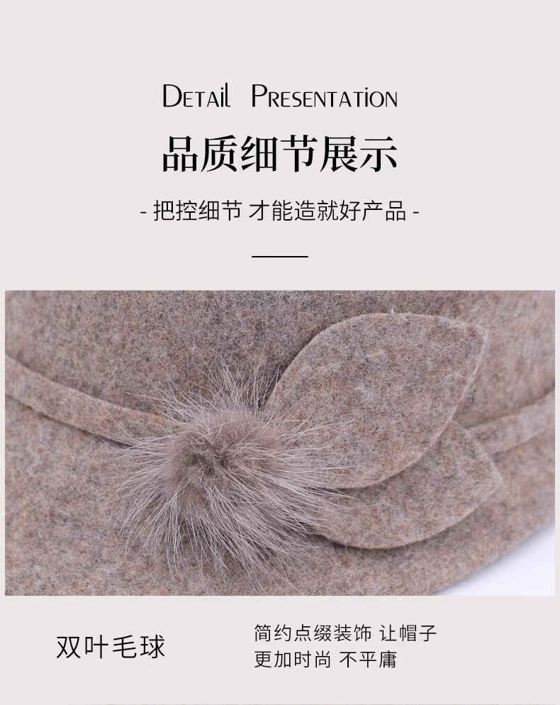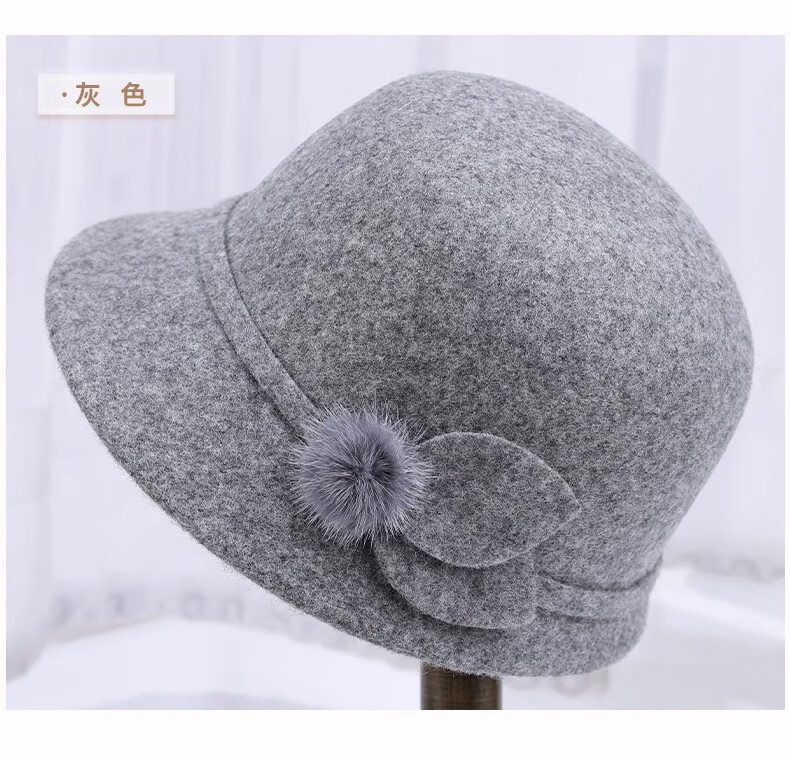 Yaoxin autumn and winter middle-aged and elderly hats women's woolen hats for the elderly and mothers winter warm hats for grandmothers and old ladies hats gray one size