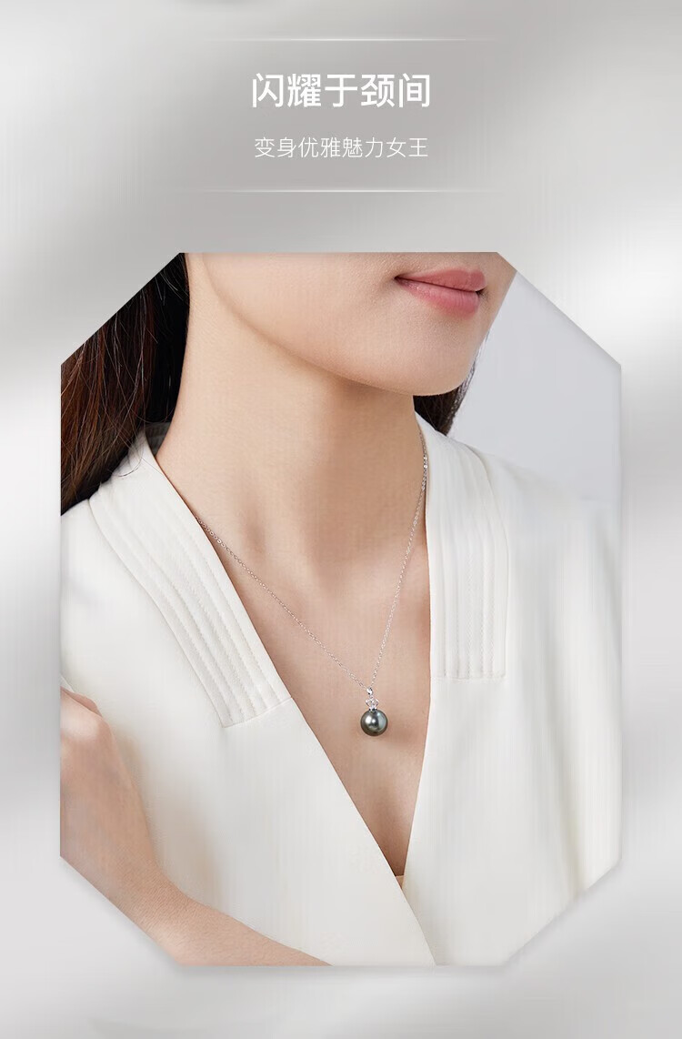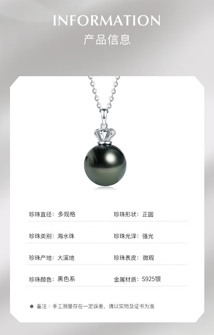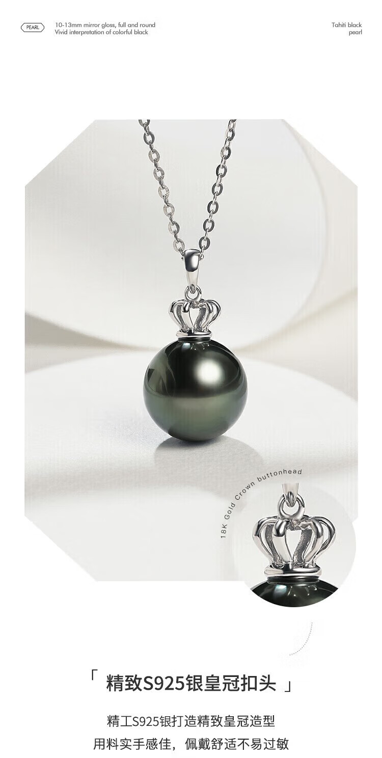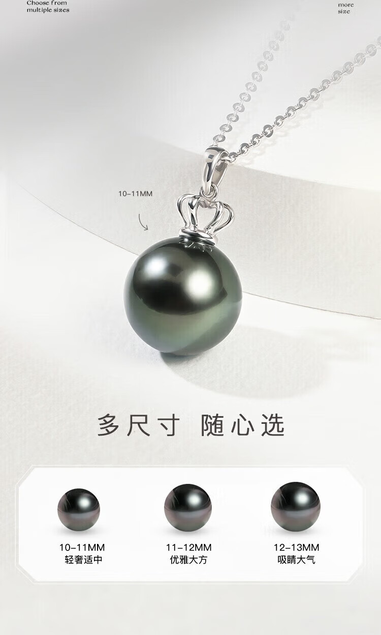 Queen of Pearls Crown Perfect Round Highlight Tahitian Black Pearl Pendant Saltwater Necklace Birthday Gift 10-11mm