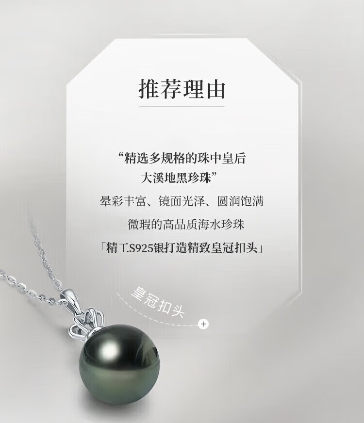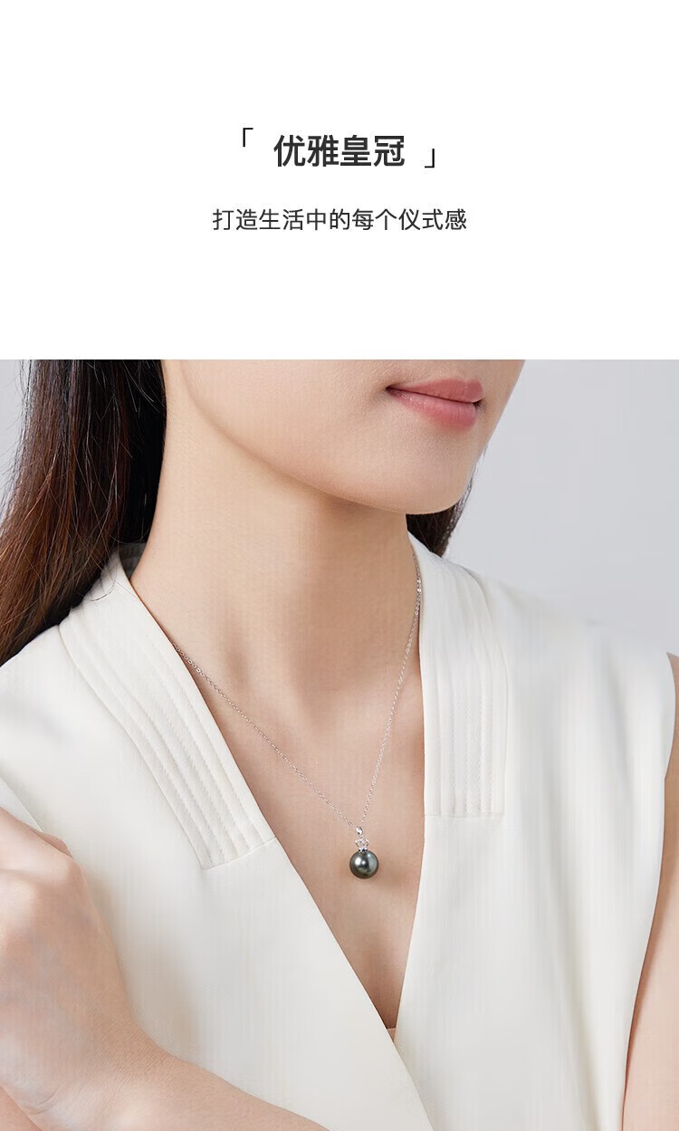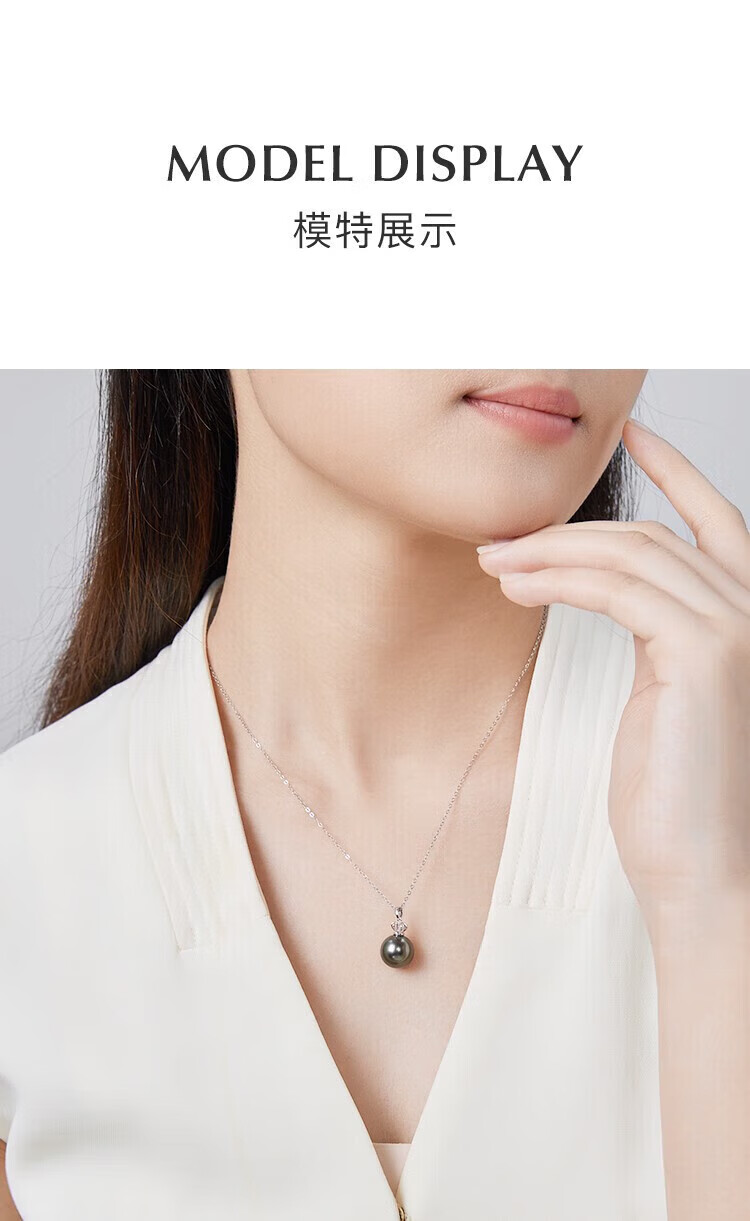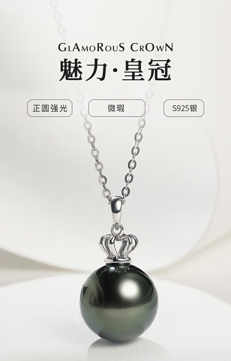 Queen of Pearls Crown Perfect Round Highlight Tahitian Black Pearl Pendant Saltwater Necklace Birthday Gift 10-11mm
