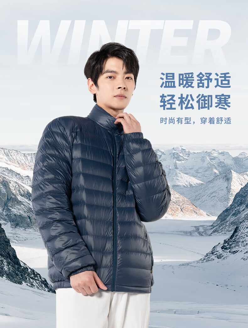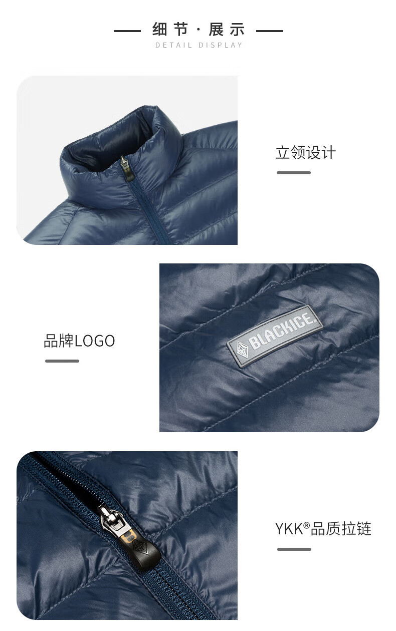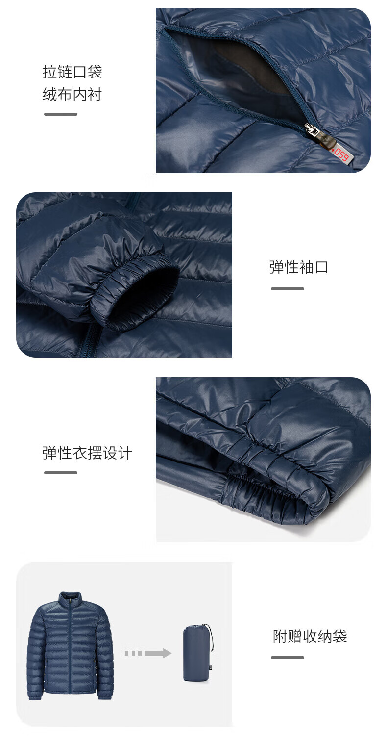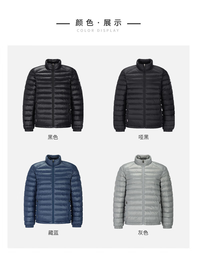 Black Ice Warm, Lightweight and Portable Down Liner Men's Stand Collar Casual 650 Puff Duck Down Jacket FAF8901 Black L