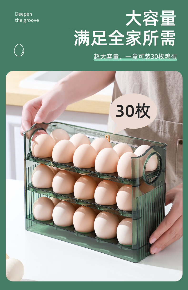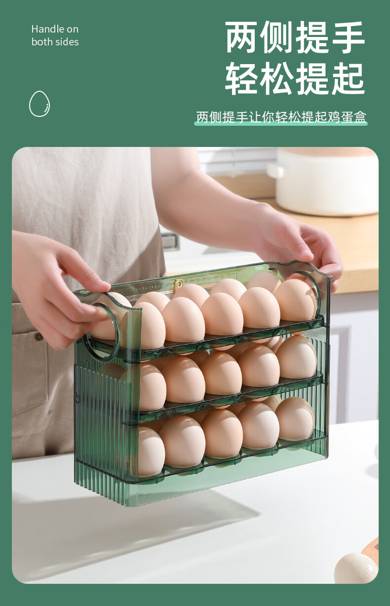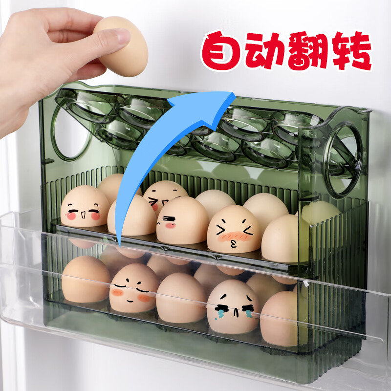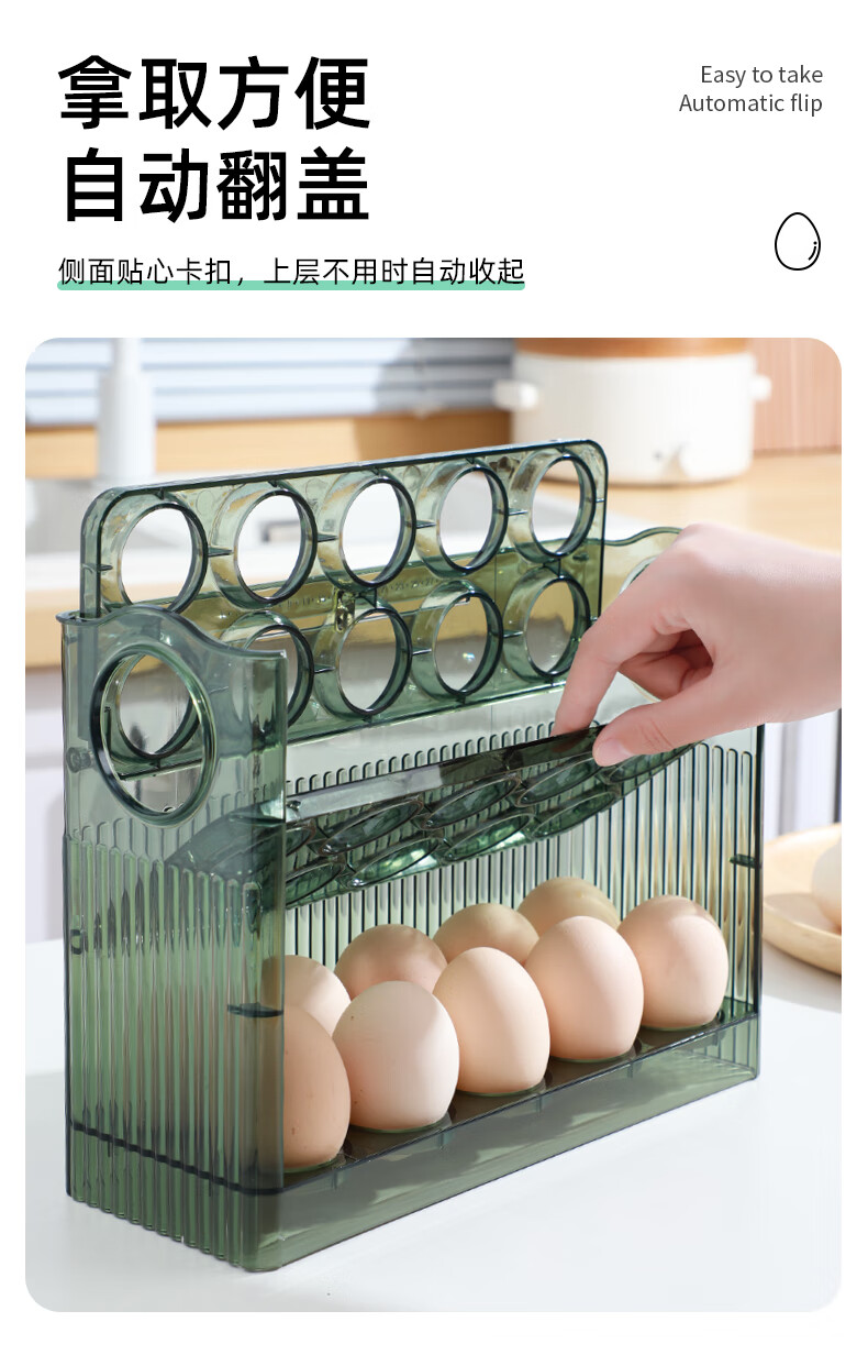 Rihe Shengtang flip-up egg storage box for refrigerator side door egg box drawer-type egg rack holder egg grid storage and organization ice transparent color 1 pack can hold 30 eggs