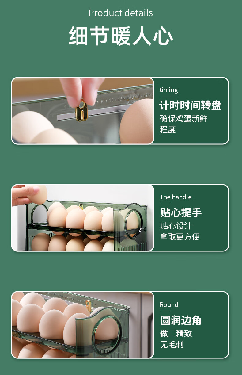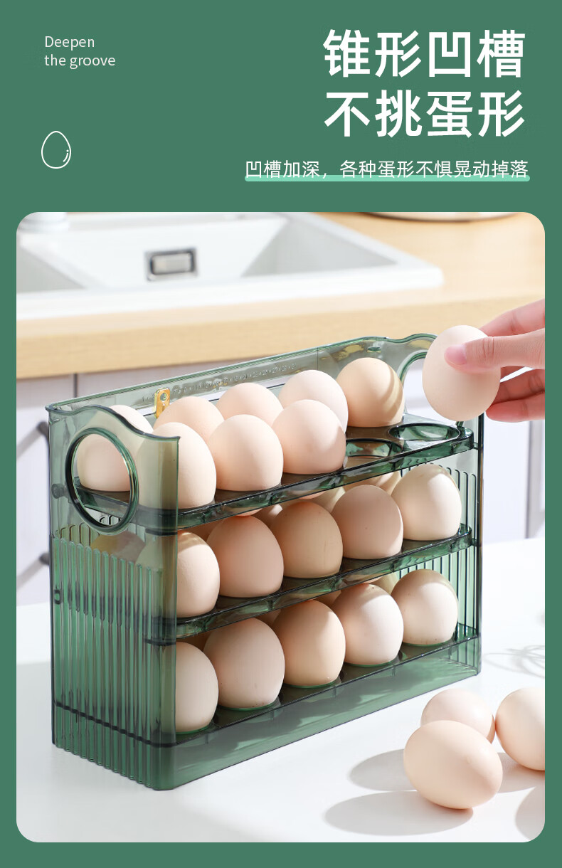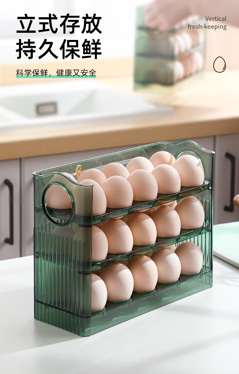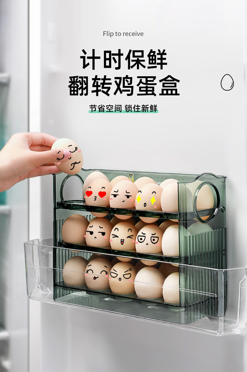 Rihe Shengtang flip-up egg storage box for refrigerator side door egg box drawer-type egg rack holder egg grid storage and organization ice transparent color 1 pack can hold 30 eggs