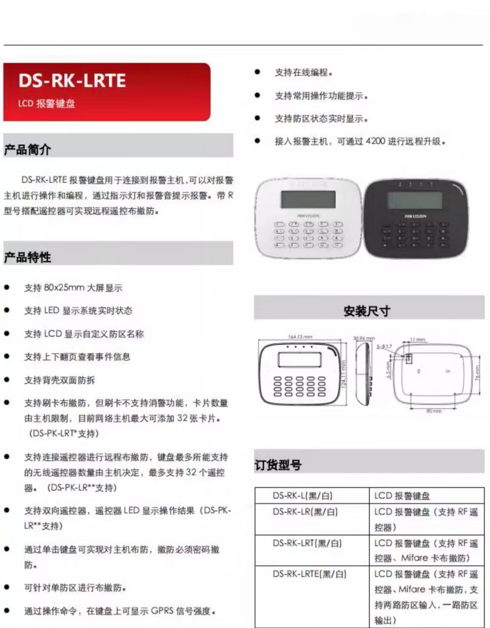 DS-RK-LRT alarm keyboard LCD LCD arm and disarm keyboard wireless remote control alarm DS-RK-LRT (with 1 remote control)
