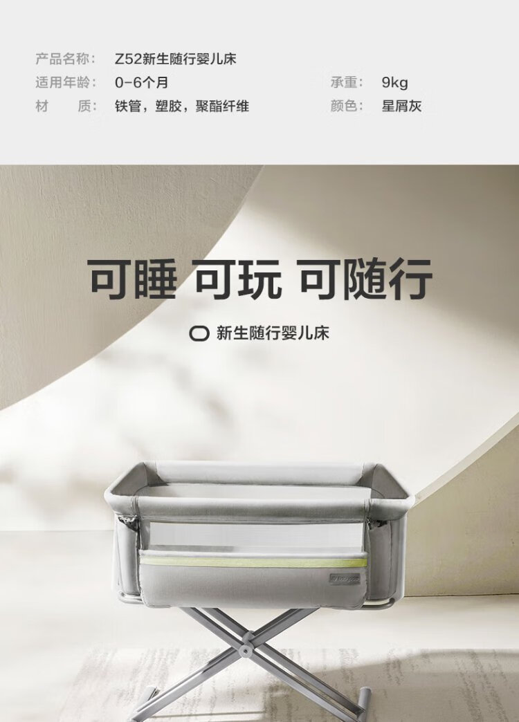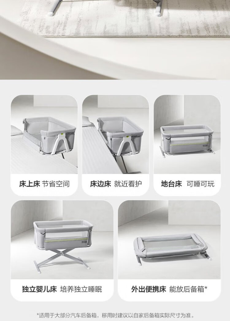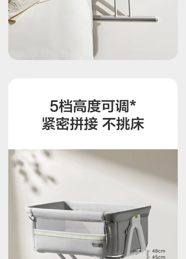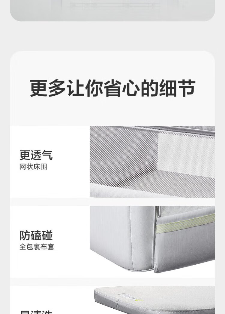 Babycare crib removable portable diaper changing table nursing table multifunctional splicing height adjustable baby newborn newborn accompanying crib-star gray (with mattress)