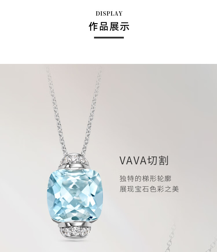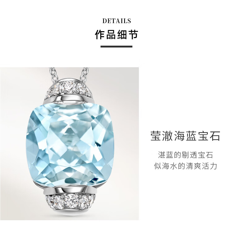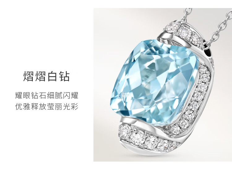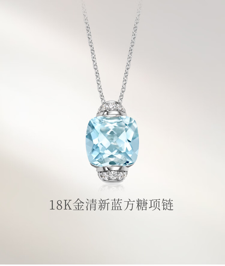 Chow Tai Fook ENZO 18K gold fresh blue sugar cube aquamarine diamond necklace EZV9023 birthday gift 40cm