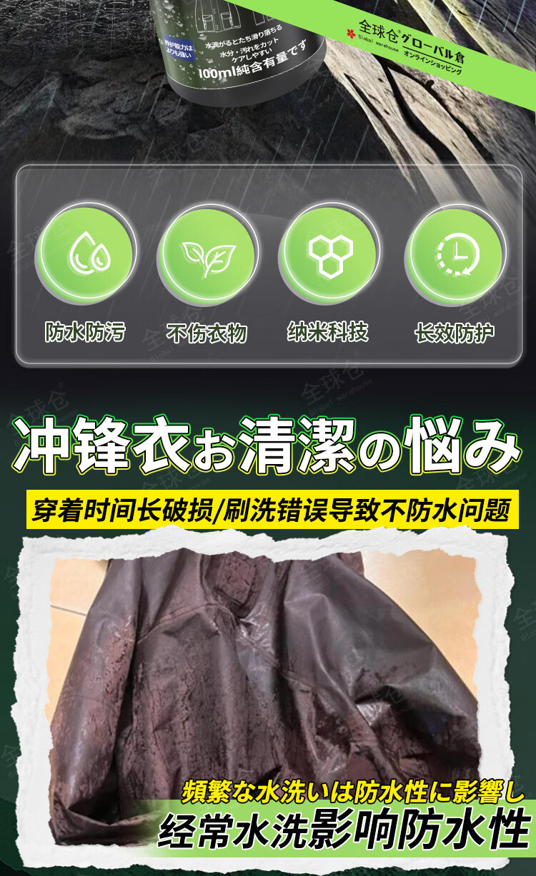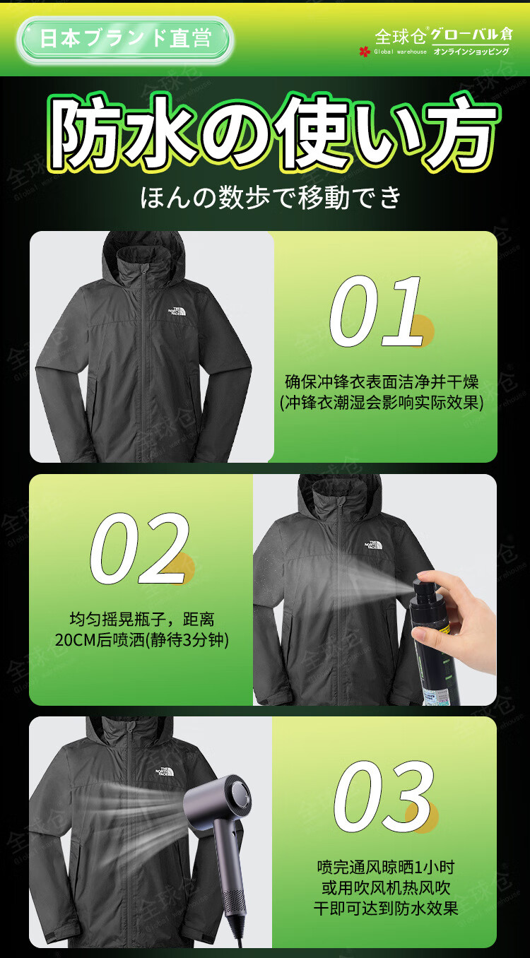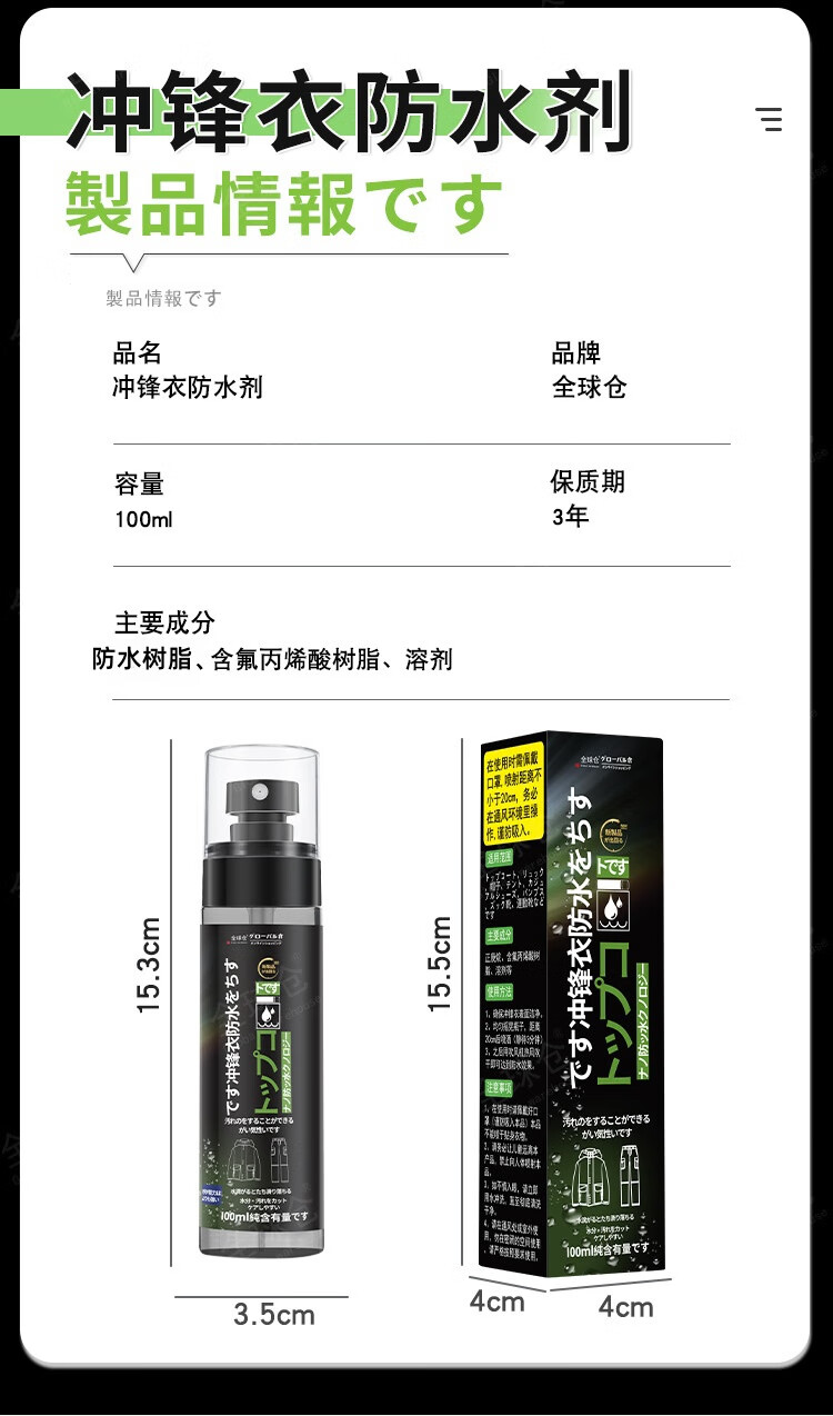 Chijuhui waterproof repair agent jacket waterproof spray dwr coating repair agent liquid Archaeopteryx Camel Black Otter North 100ml 1 bottle