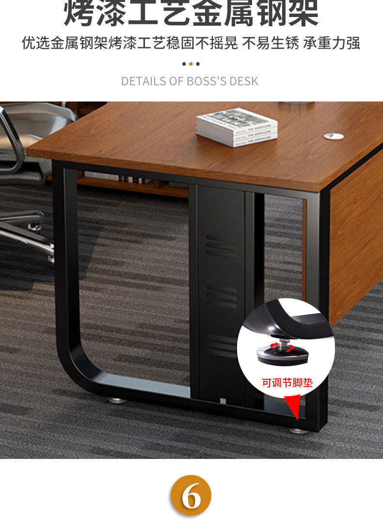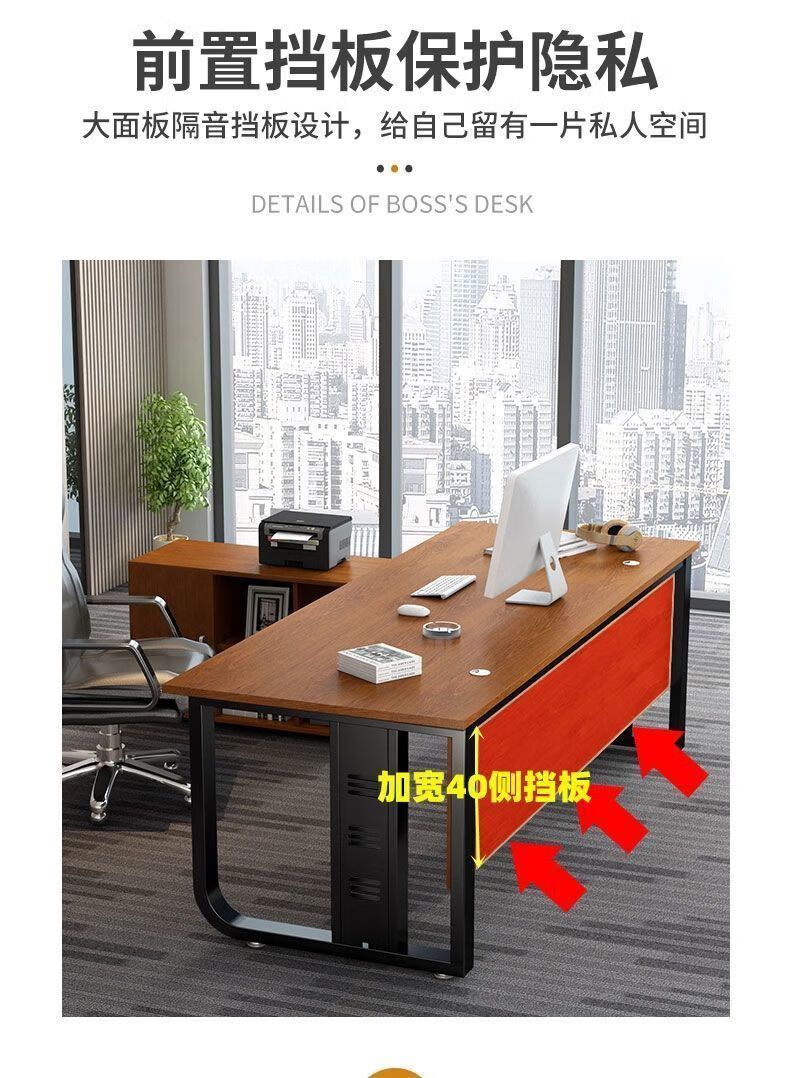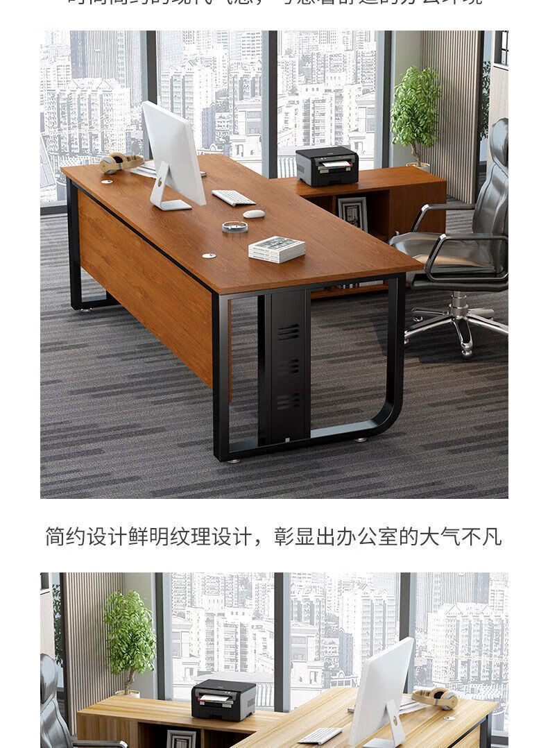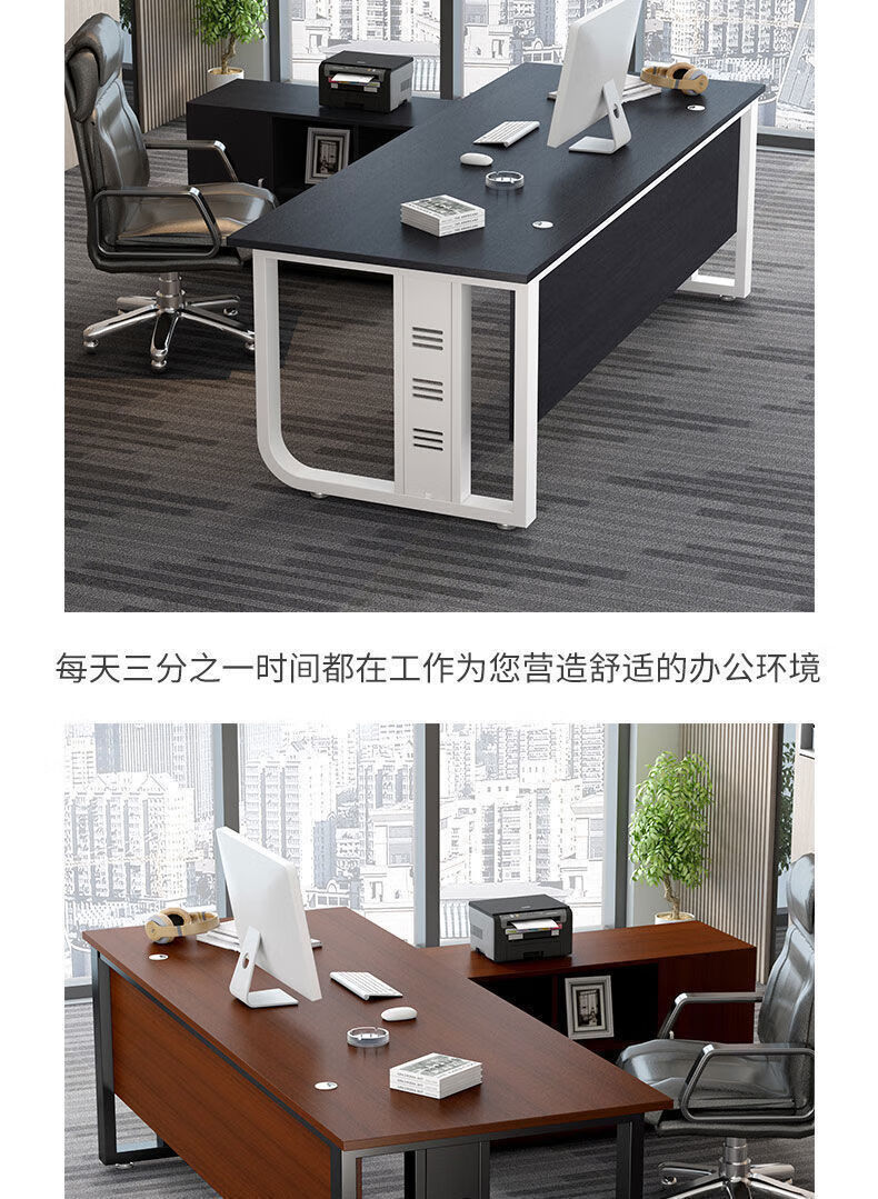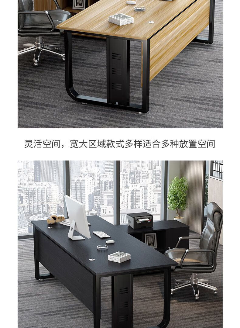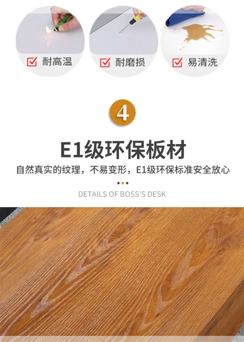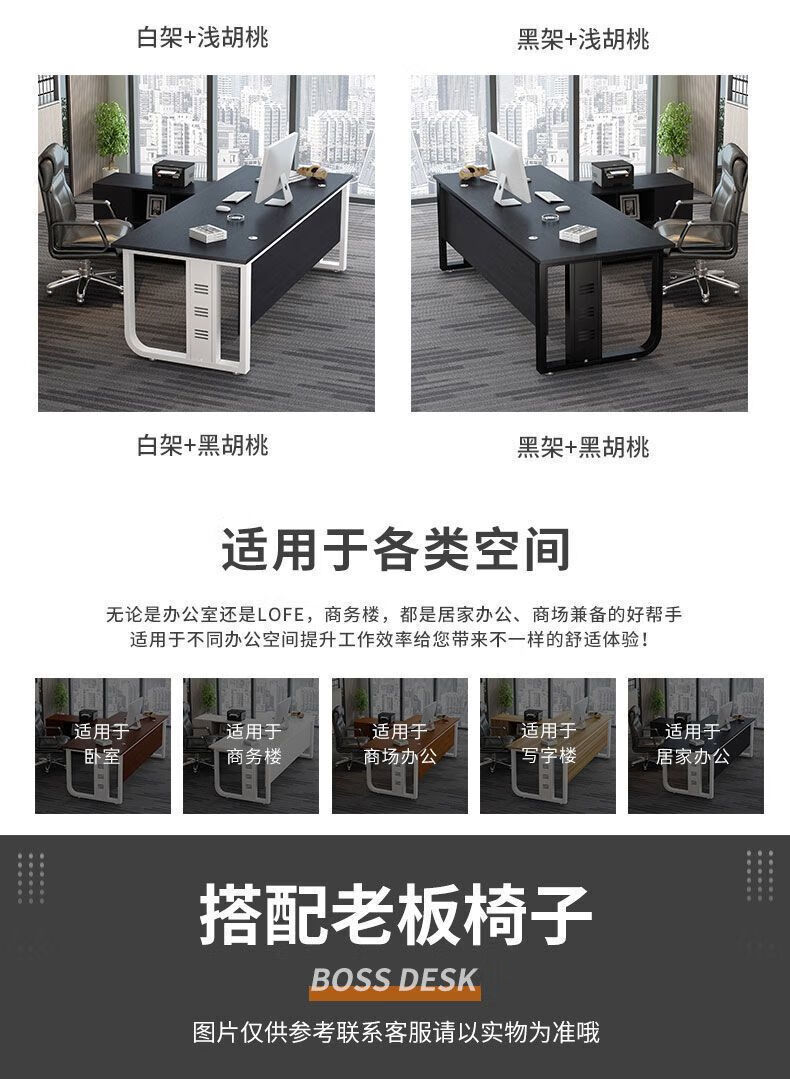 OIMG boss desk office desk simple modern manager executive desk single supervisor president office furniture table and chair combination golden oak desktop + elegant black frame 140*60 single table thickened version
