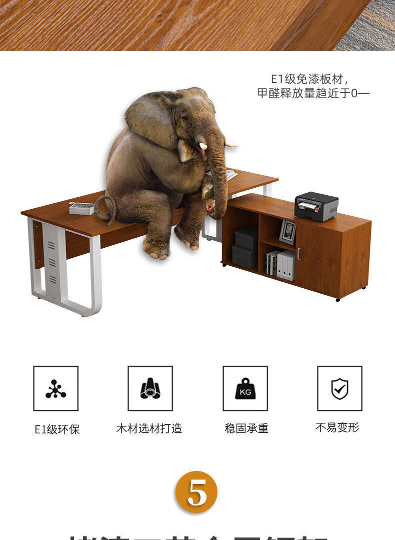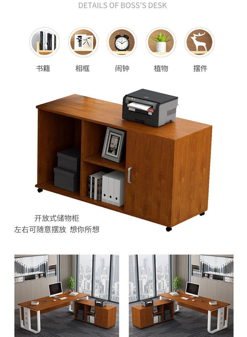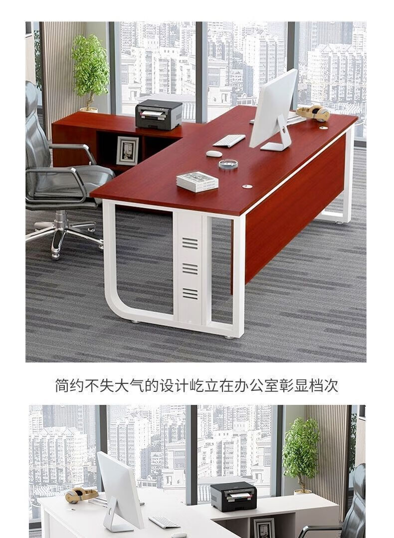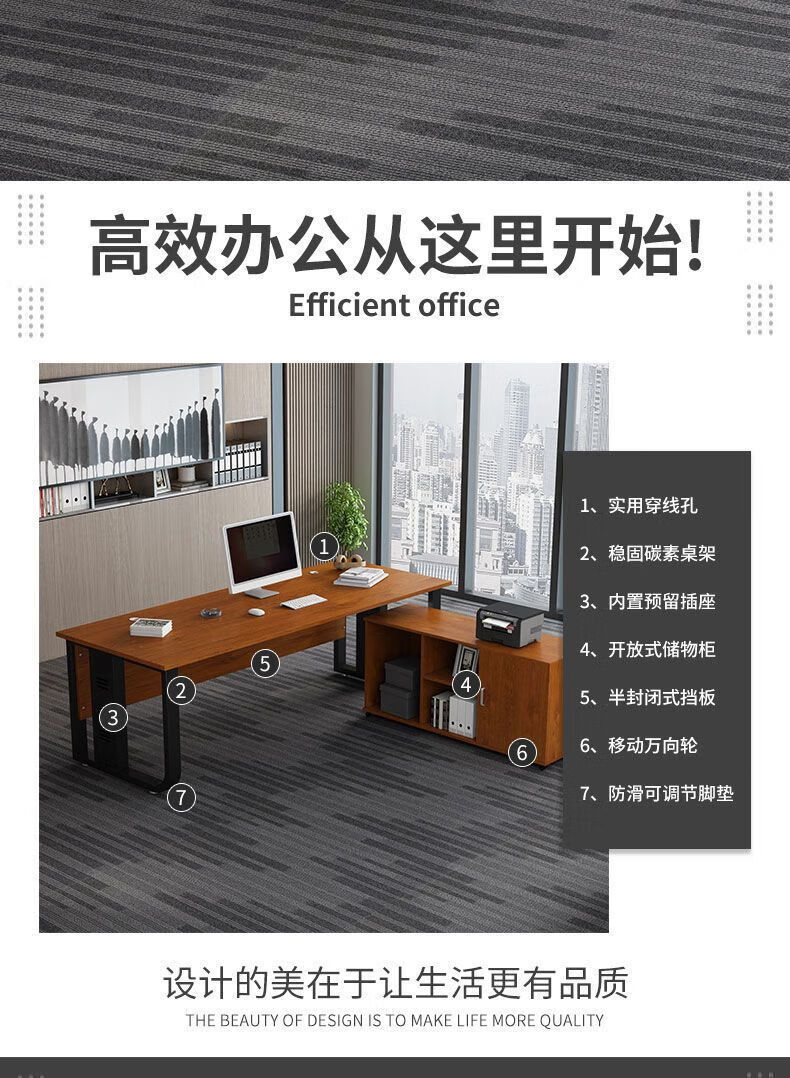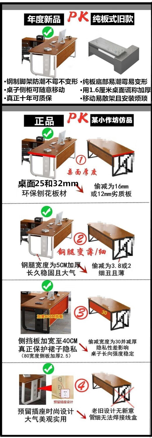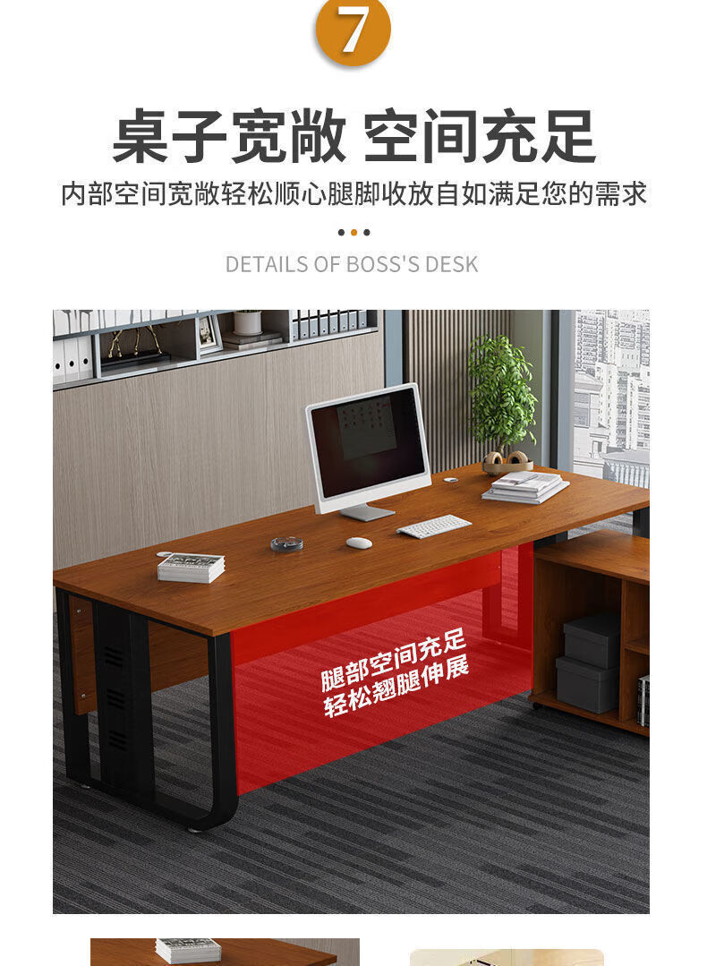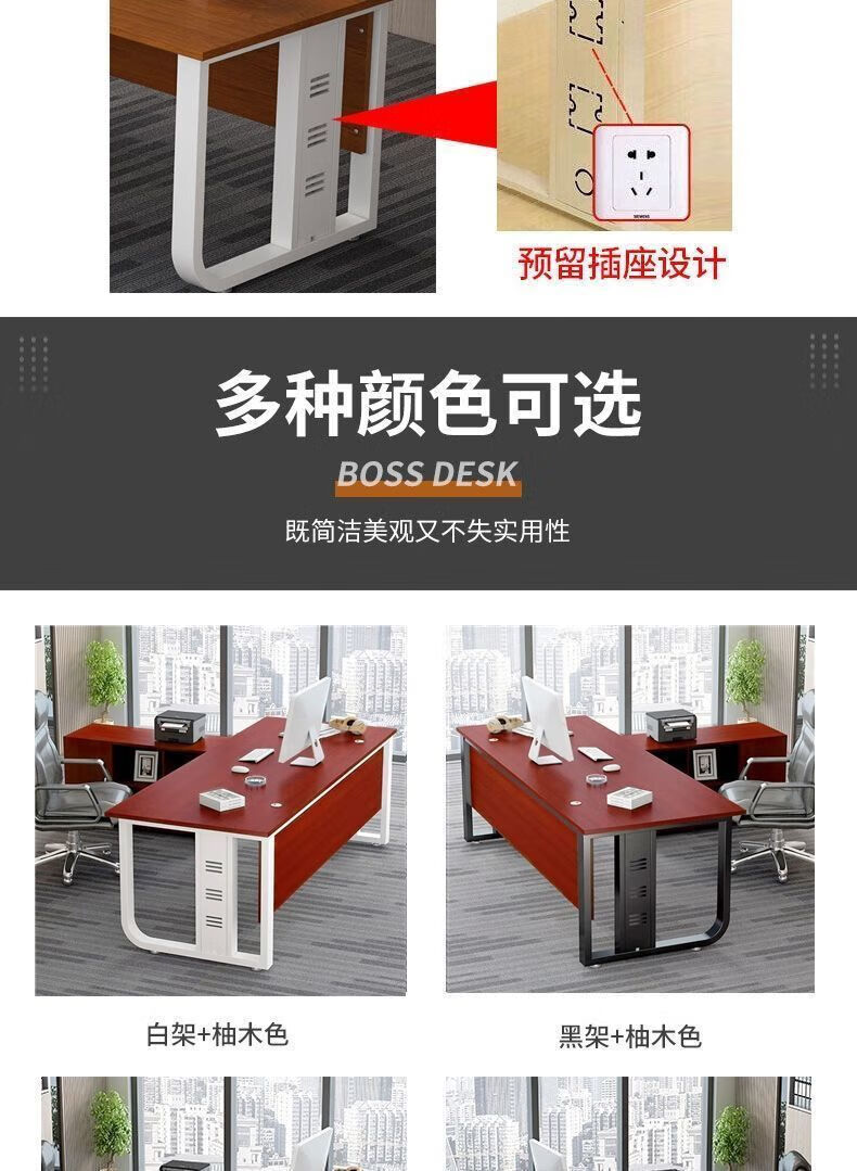 OIMG boss desk office desk simple modern manager executive desk single supervisor president office furniture table and chair combination golden oak desktop + elegant black frame 140*60 single table thickened version