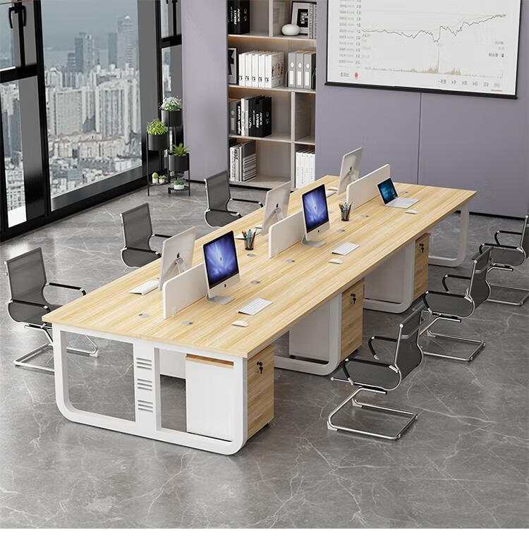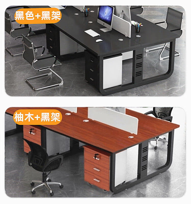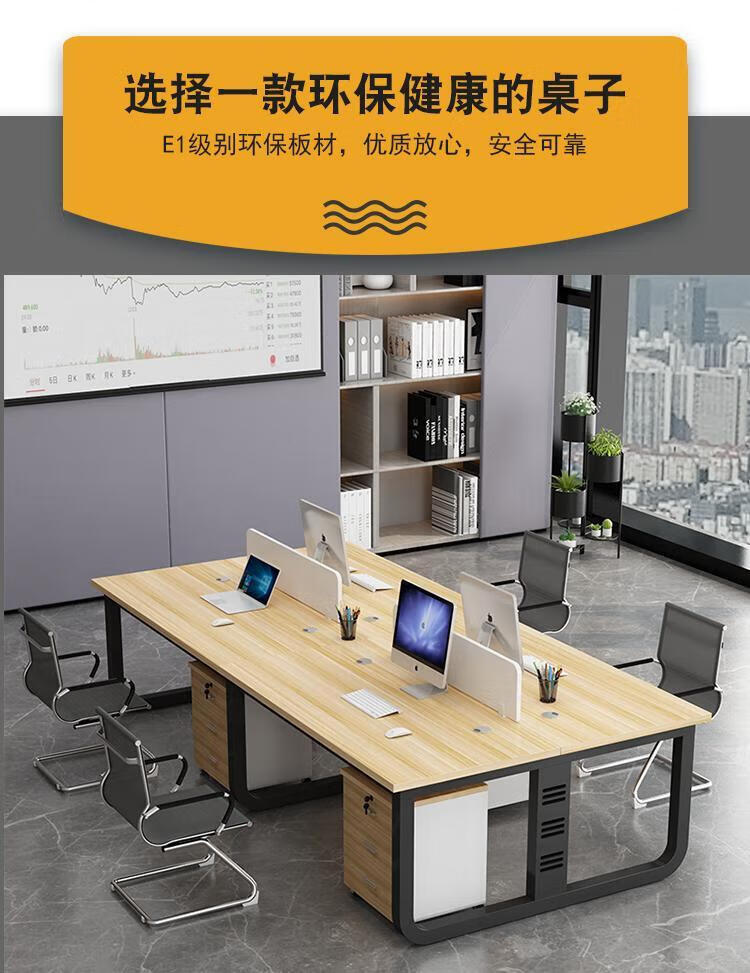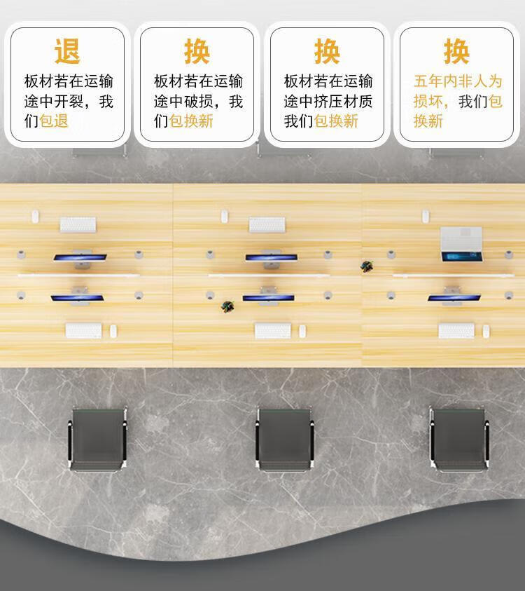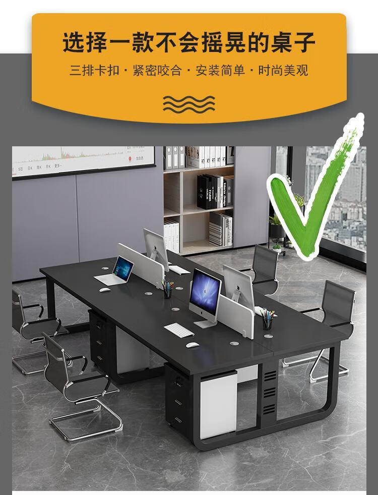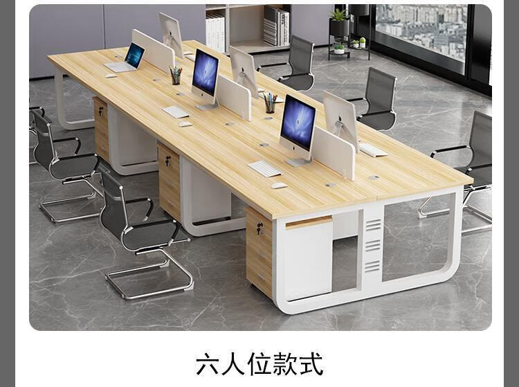 OIMG staff desk office computer table double 4 people 6 tables four-person work station staff table screen table and chair combination light beard + black frame 5*2.5 thickened and solid U-shaped double seat